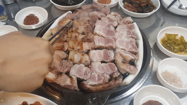 보통 반찬이 먼저 나와, 반찬 집어먹다 고기 먹는 순서가 되곤 하는데,