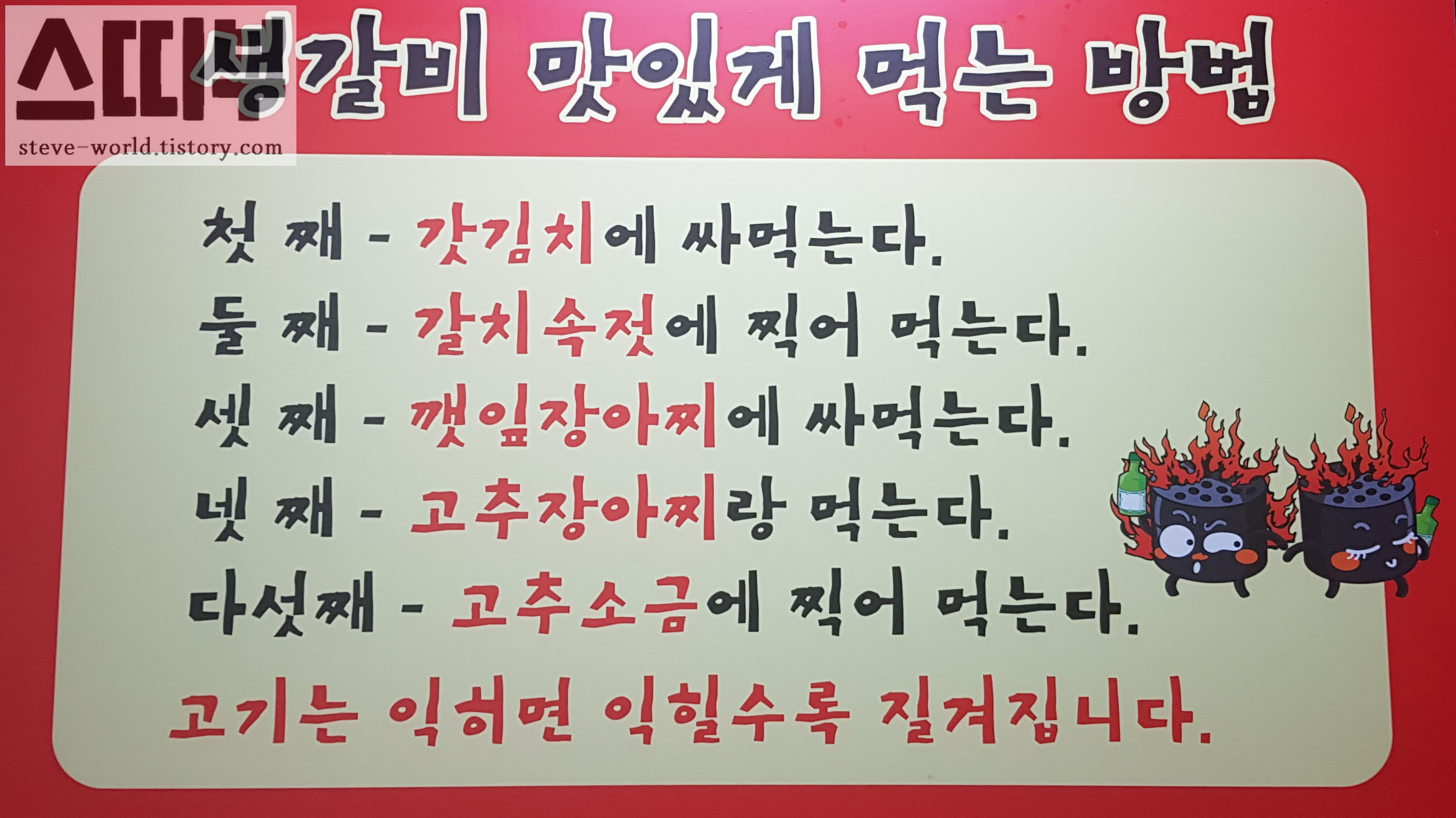사장님 추천의 다섯 가지 방법을 모두 시도해 본 후, 제 취향대로 조합해서 먹었습니다.