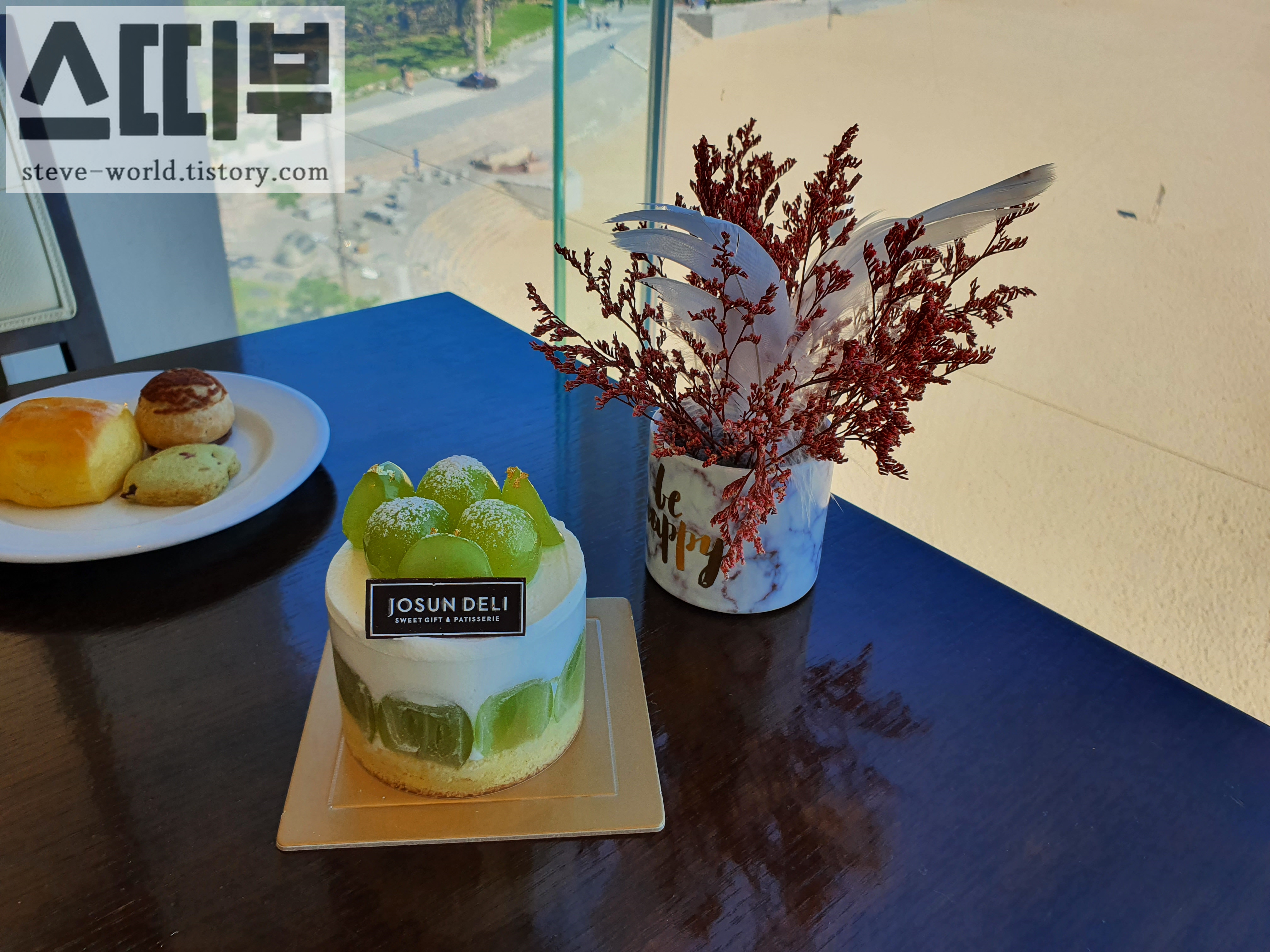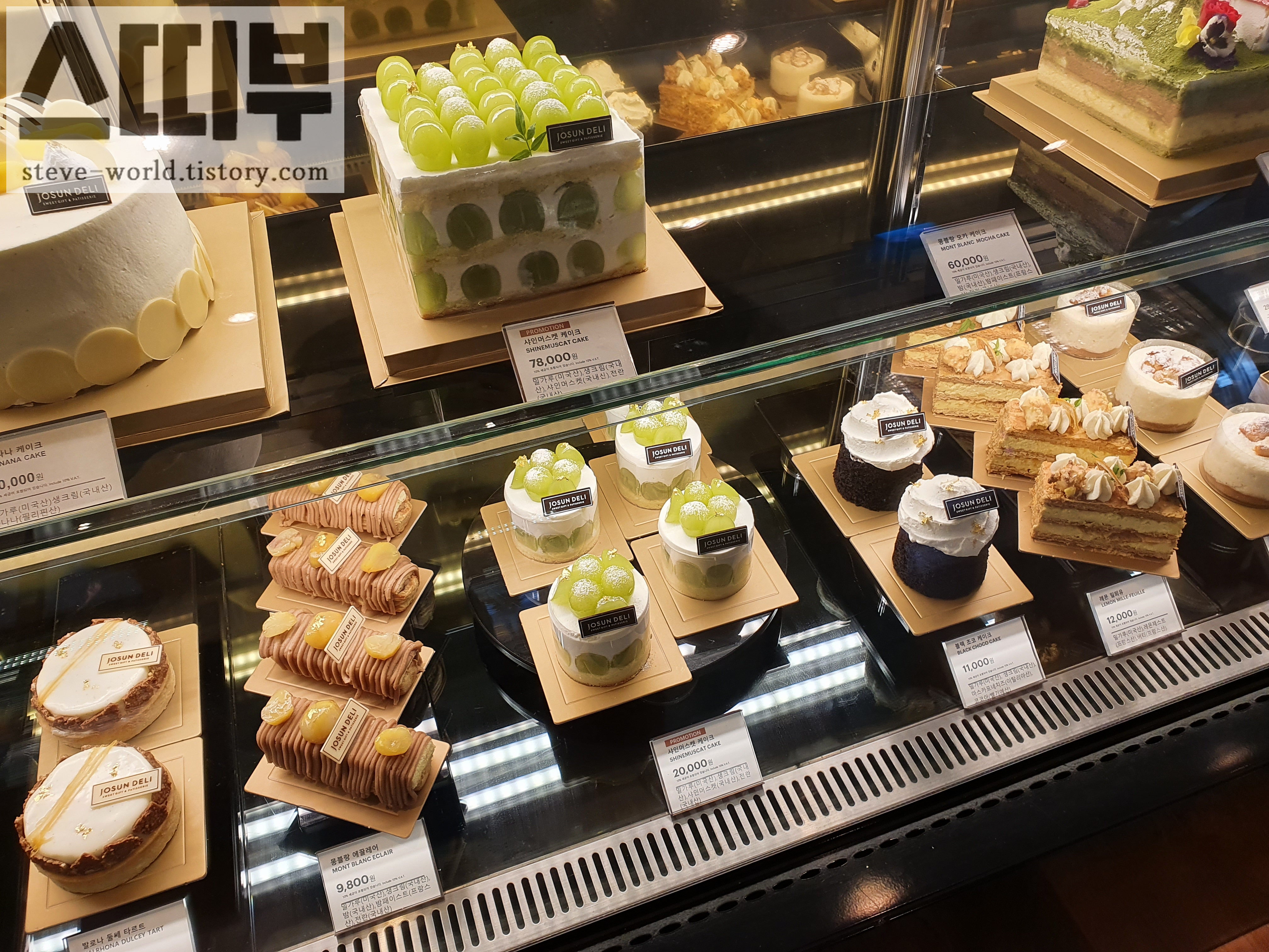 따뜻한 오전, 동백섬 구석구석 산책을 다녀온 뒤 호텔로 돌아왔습니다. 호텔 로비로 들어서는데 조선호텔 베이커리, 조선델리의 디저트들이 눈길을 사로잡았습니다. 그 중 가장 눈에 콕 들어왔던 건 샤인 머스켓 케이크였습니다.