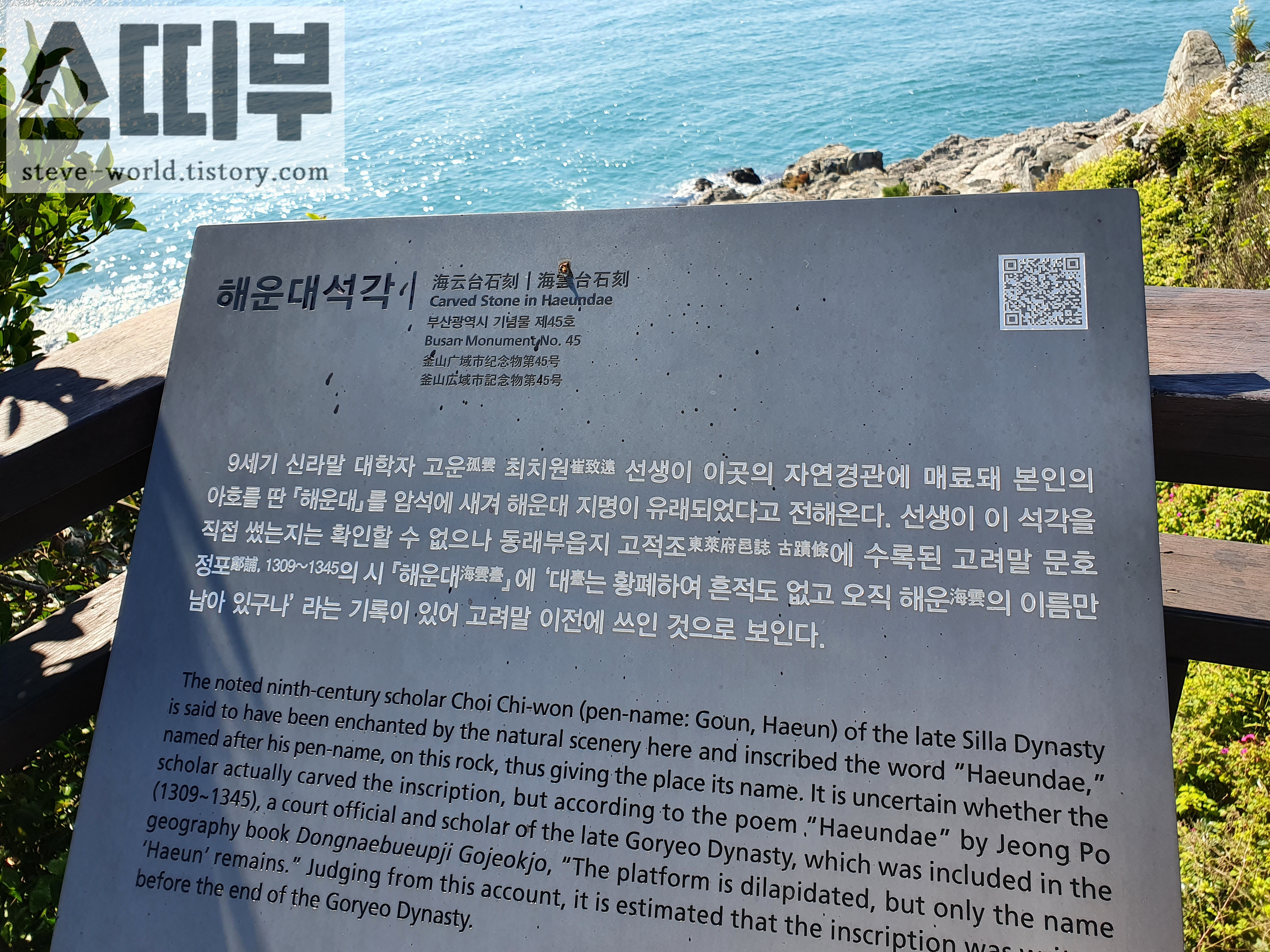 해운대 석각 인포메이션 앞에서 촬영한 해운대 석각입니다.