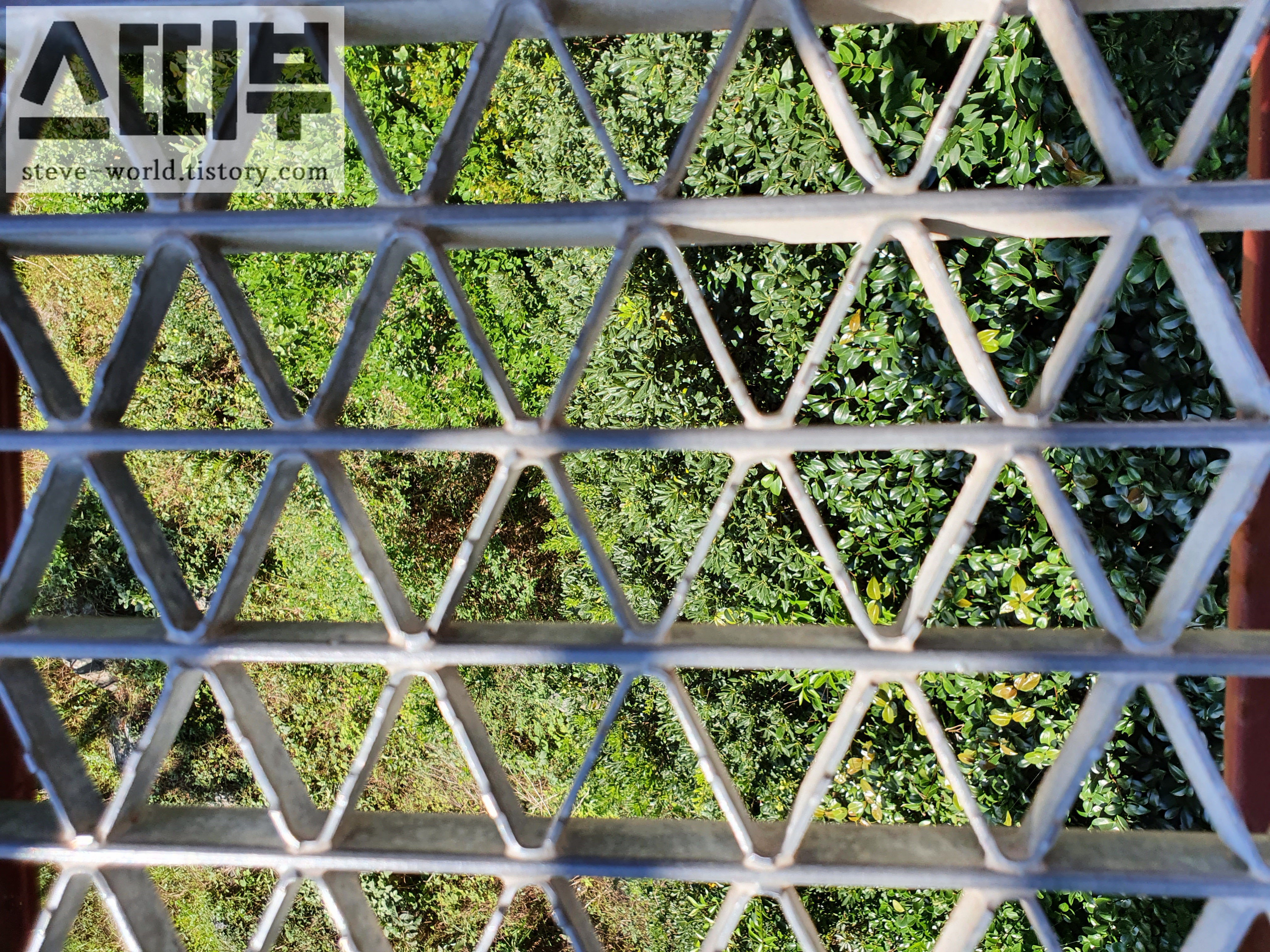 출렁다리 바닥이 철망과 유리로 이루어져 있어 약간의 긴장감을 줍니다.