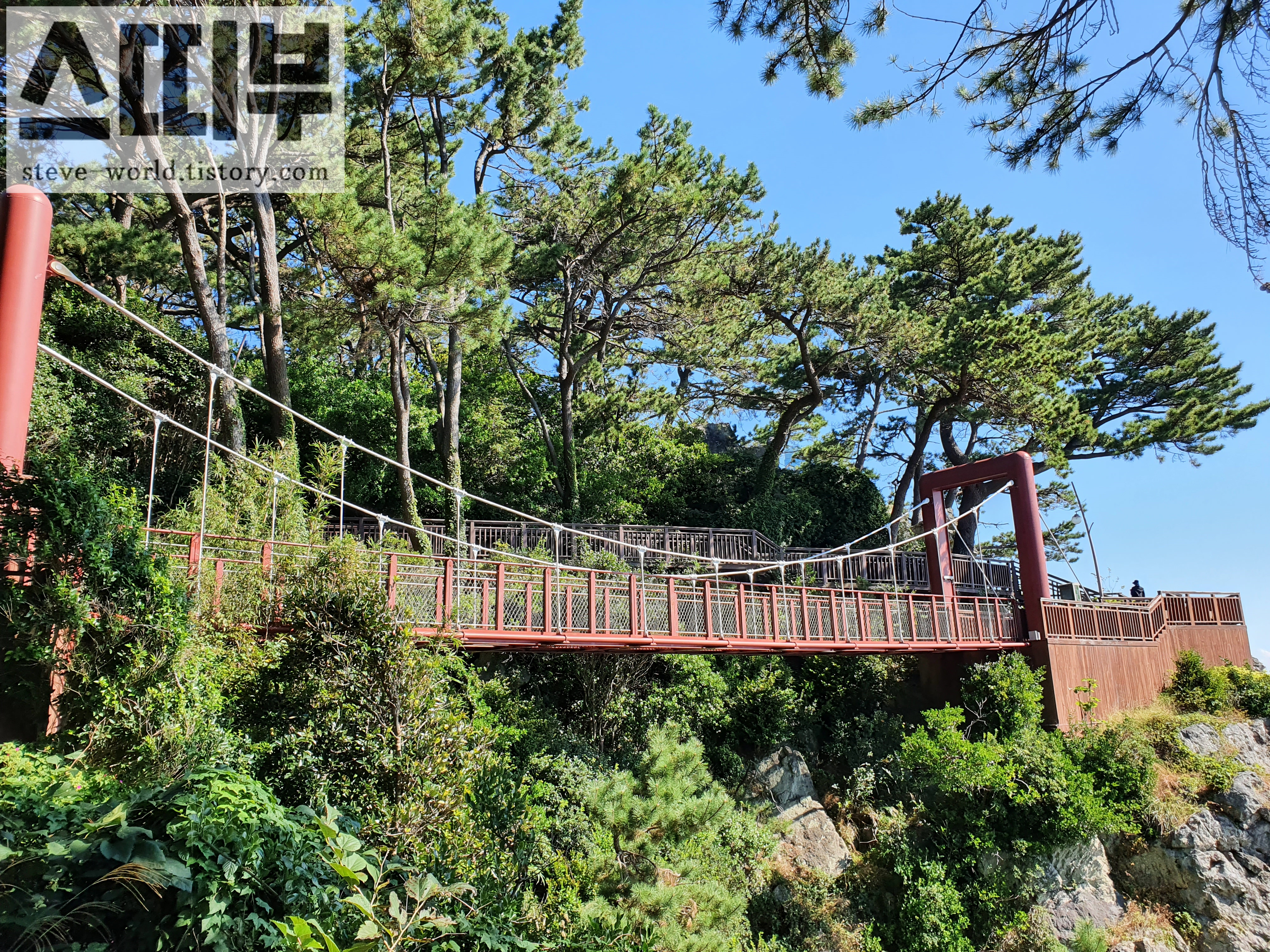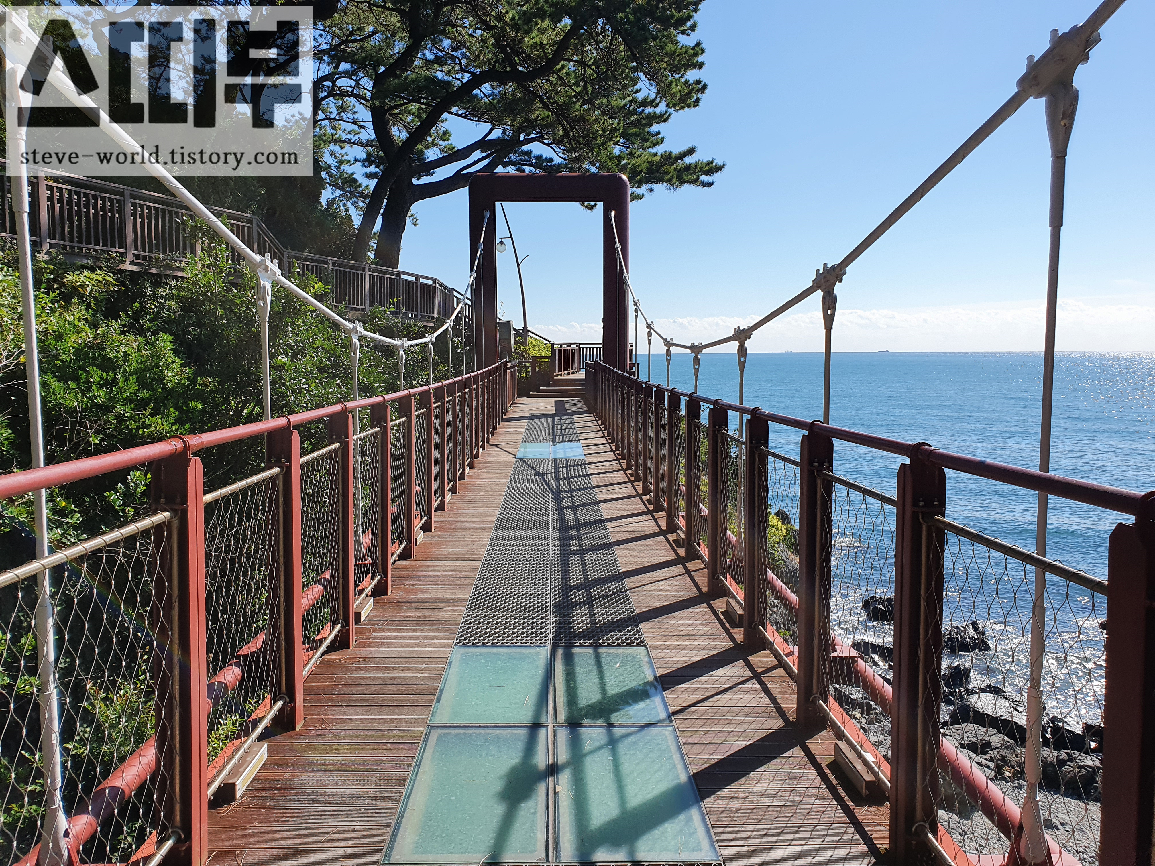 멀리서 볼 때, 견고하게 직각으로 되어있어서 걷기 전에는 출렁다리인 줄 몰랐는데, 다리에 발을 딛고 출렁다리인 것을 깨달았습니다. 동백섬 산책로의 소소한 즐거움이었습니다.