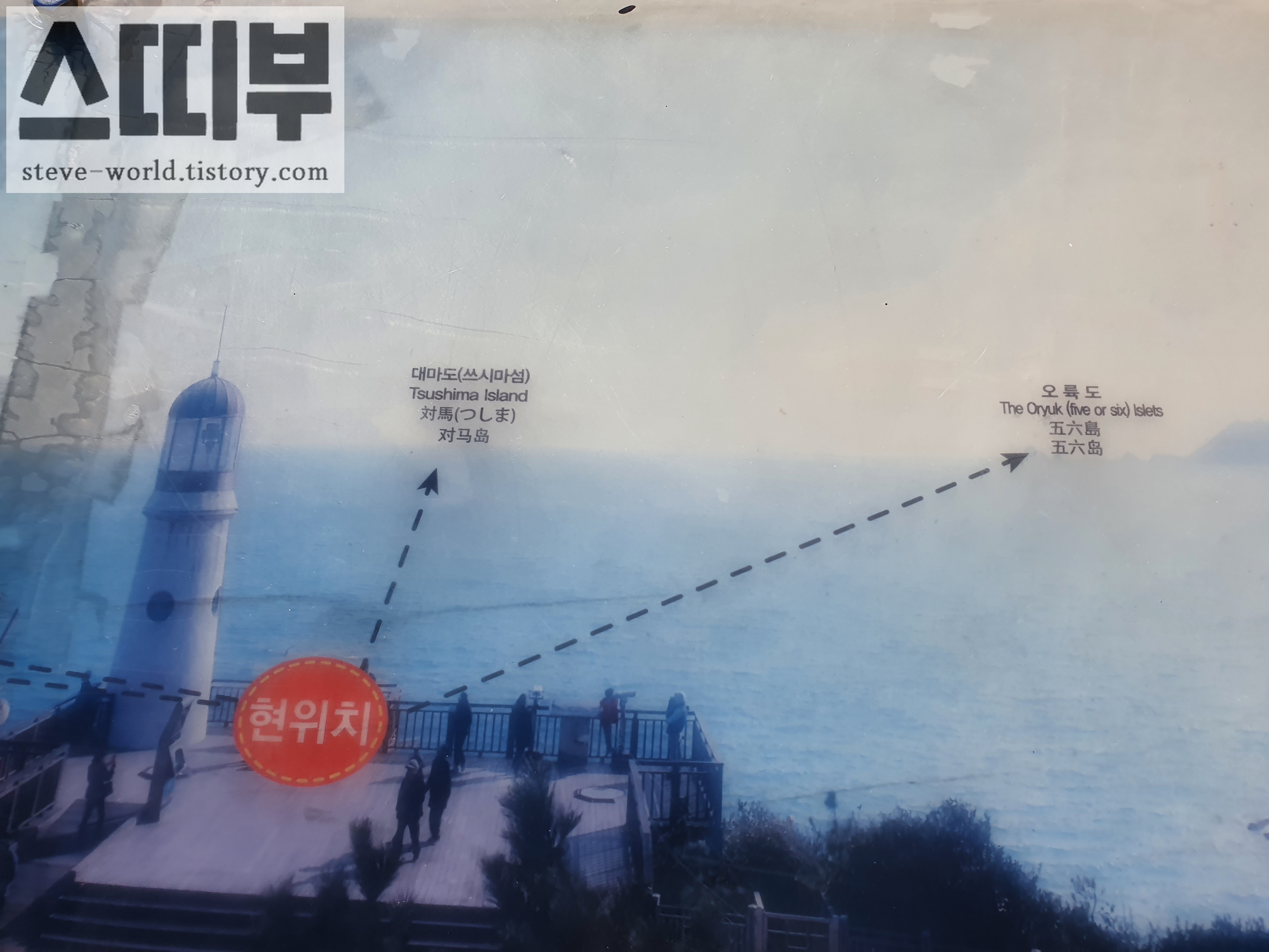등대 전망대에는, 인포메이션이 하나 있는데, 바다 넘어 어떤 섬이 보이는지를 표현하고 있습니다. 저희가 여행한 날은 날씨가 맑아서 대마도와 오륙도가 또렷하게 보였습니다.