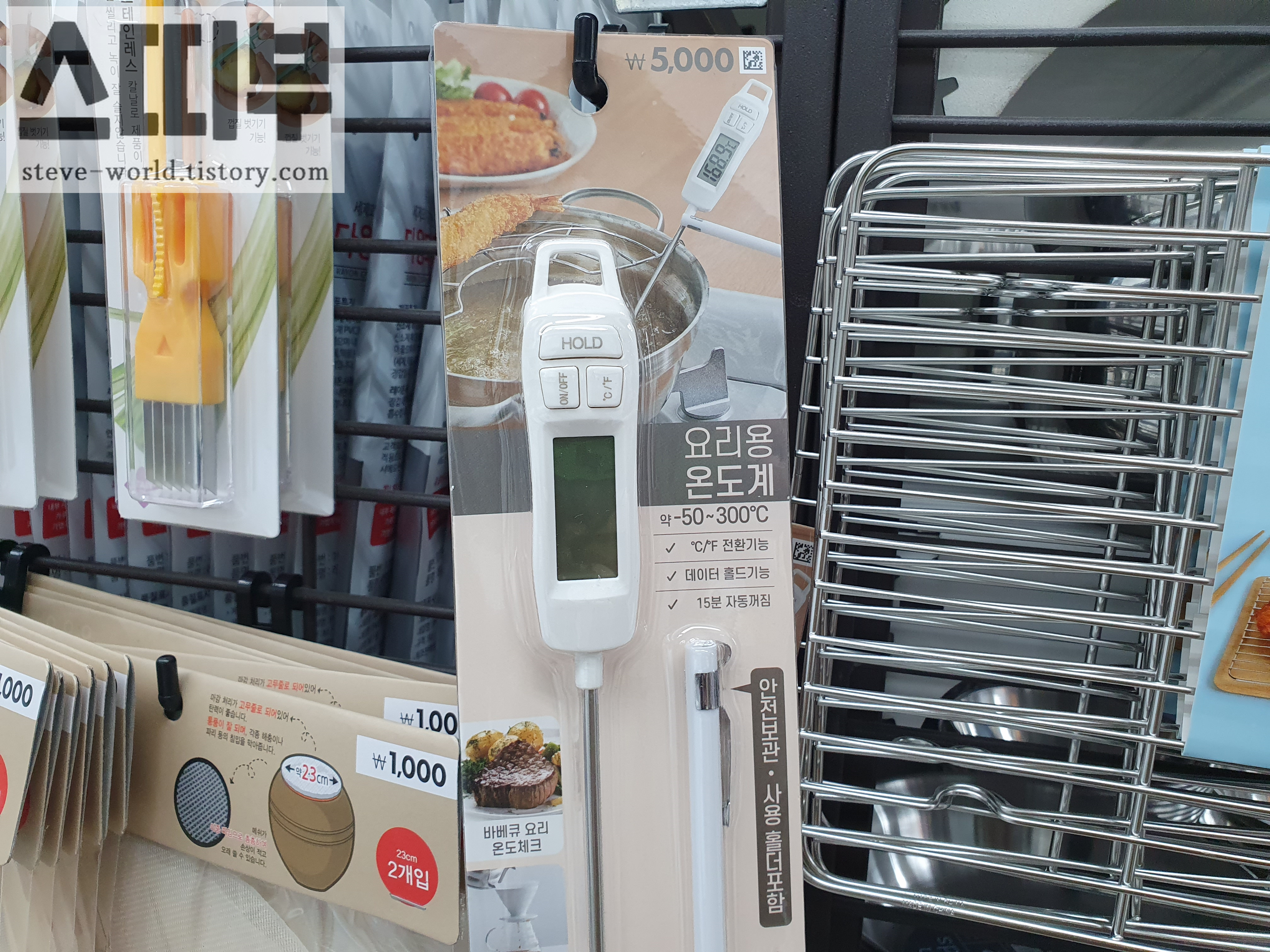 요리용 온도계도 있습니다. 베이킹을 할 때, 반죽의 온도도 중요합니다. 저는 유튜브의 자세한 설명을 보고 감으로 맞춰서 대략적으로 반죽하고 있었는데, 요리용 온도계가 있으면 훨씬 편할 것 같아서 바로 하나 구입했습니다. 요리용 온도계는 5,000원입니다.