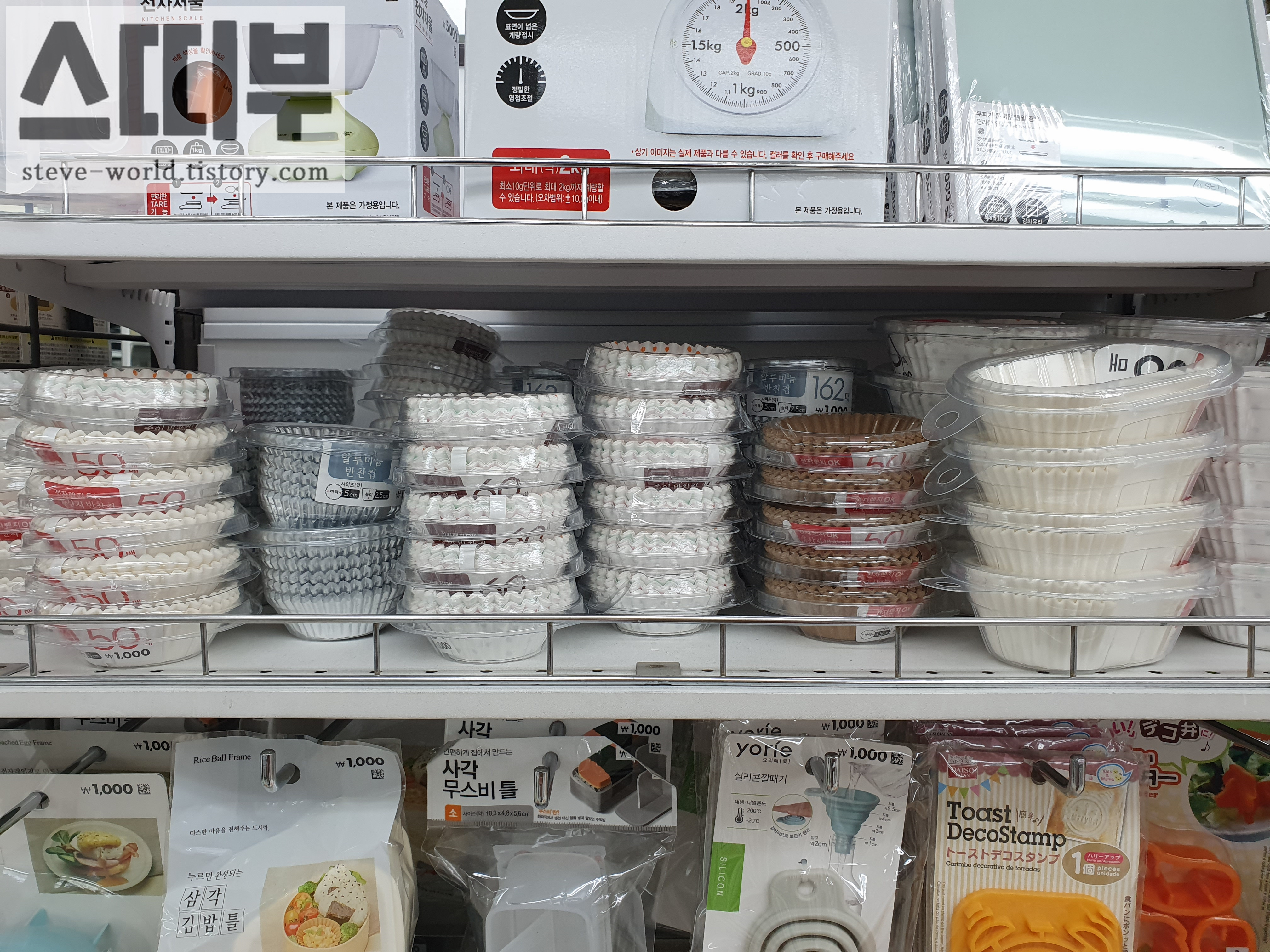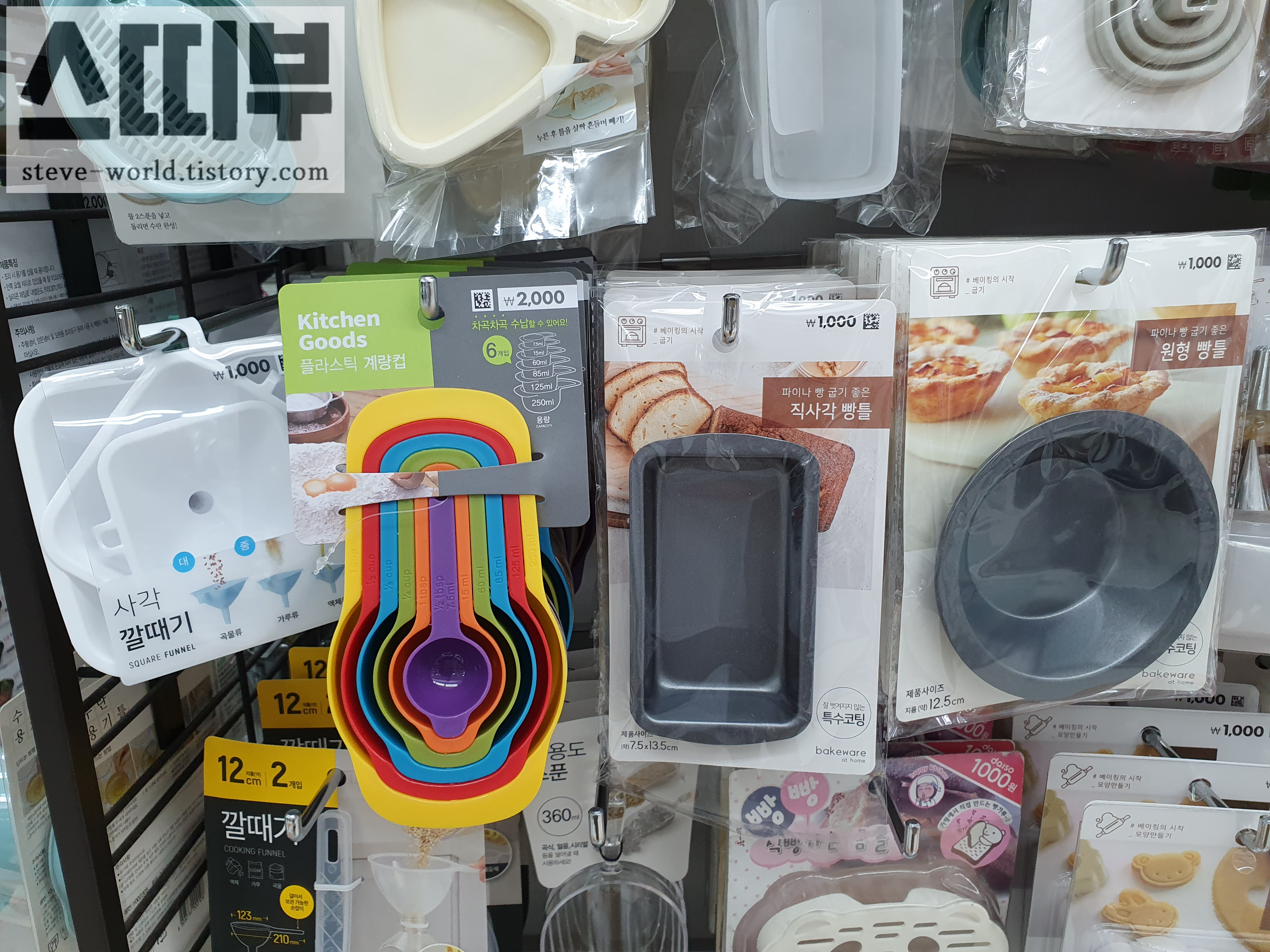 다양한 주방용품 중 제 이목을 끈건 베이킹 용품이었습니다. 다이소에서 이렇게 쉽게 베이킹 도구를 접할 수 있을 줄 몰랐습니다. 집 가까이에서 베이킹 용품을 구매할 수 있었다니, 정말 편리하게 느껴졌습니다.