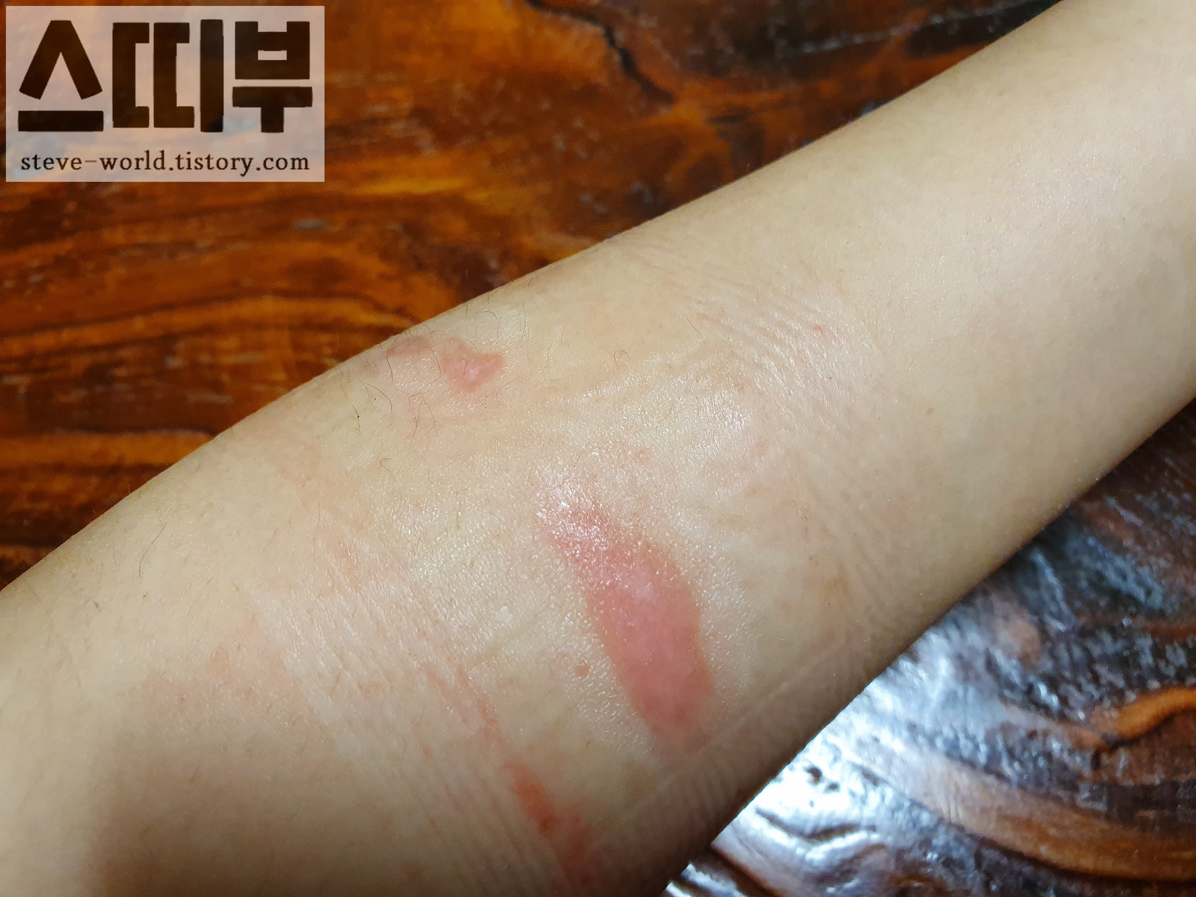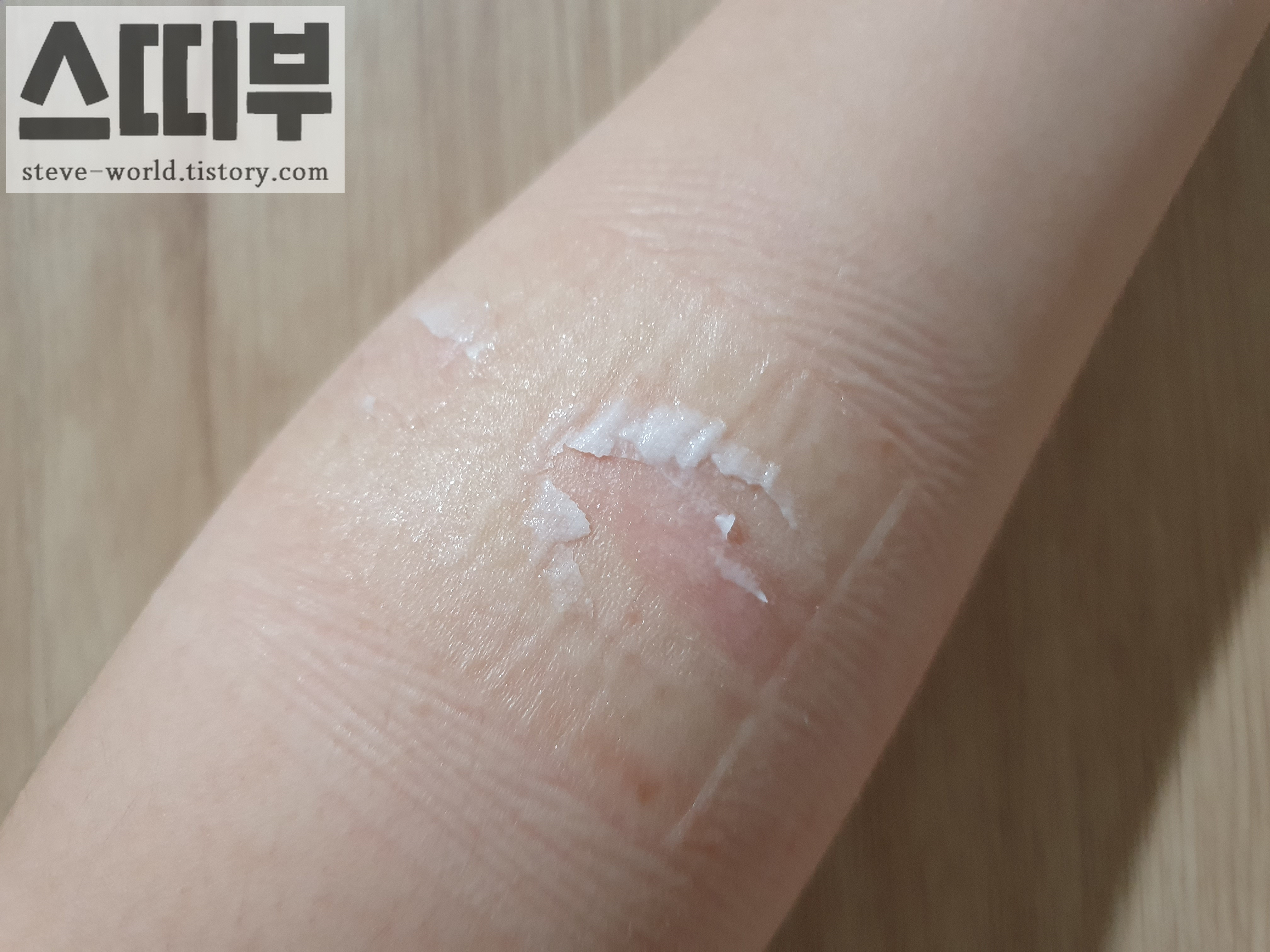 설파디아진은 연고를 모두 제거한 모습입니다. 아직 촉촉하게 연고가 조금 남아있어, 거의 다 나은 것 처럼 보이는데 피부가 건조해 지면, 바로 붉으스름하게 올라옵니다. 아무래도 화상 흉터 관리는 물에 닿지 않게 관리하면서 촉촉하게 유지해서 피부의 재생을 돕는 환경을 만들어 주는 것이 핵심인 것 같습니다.