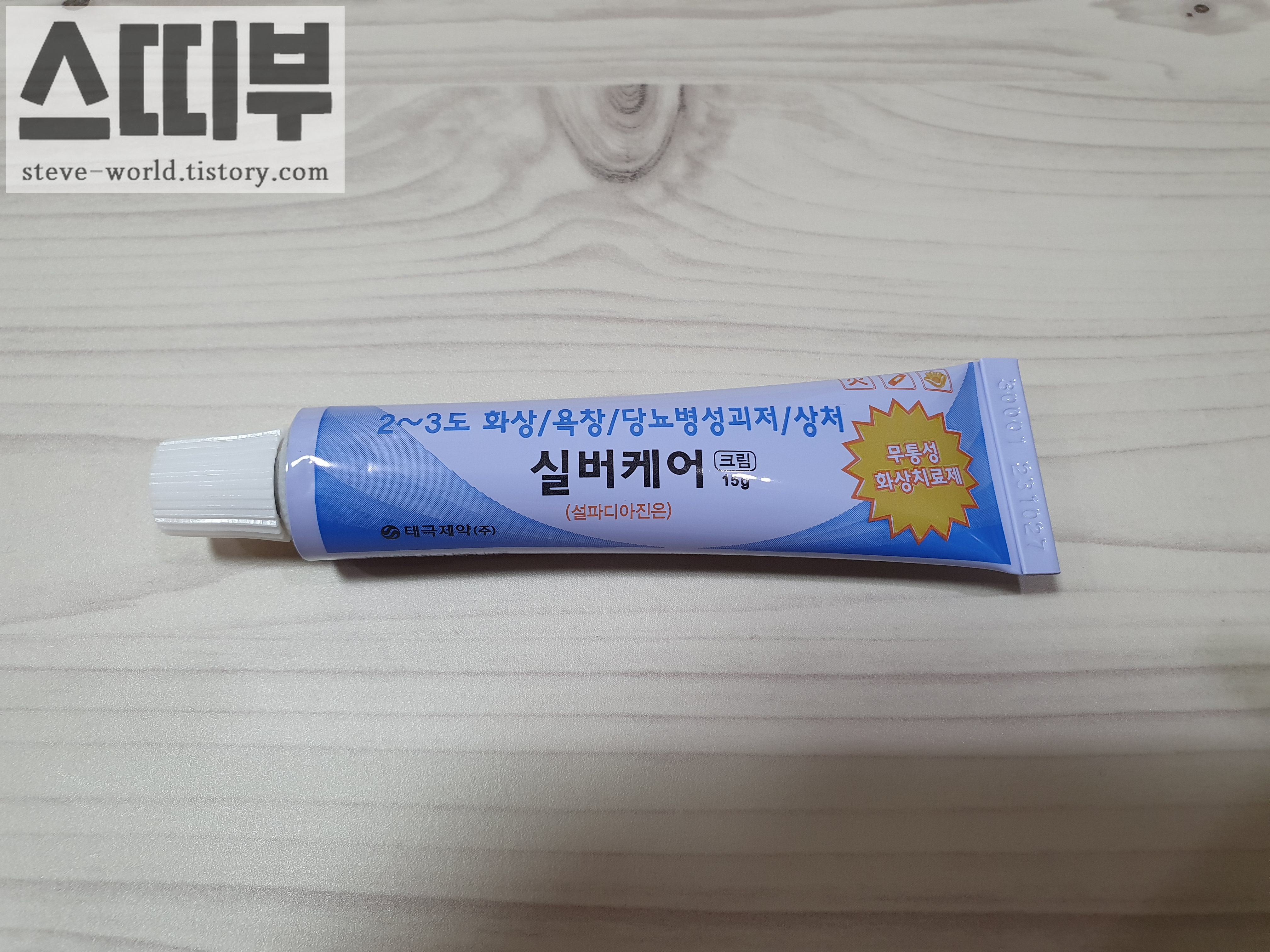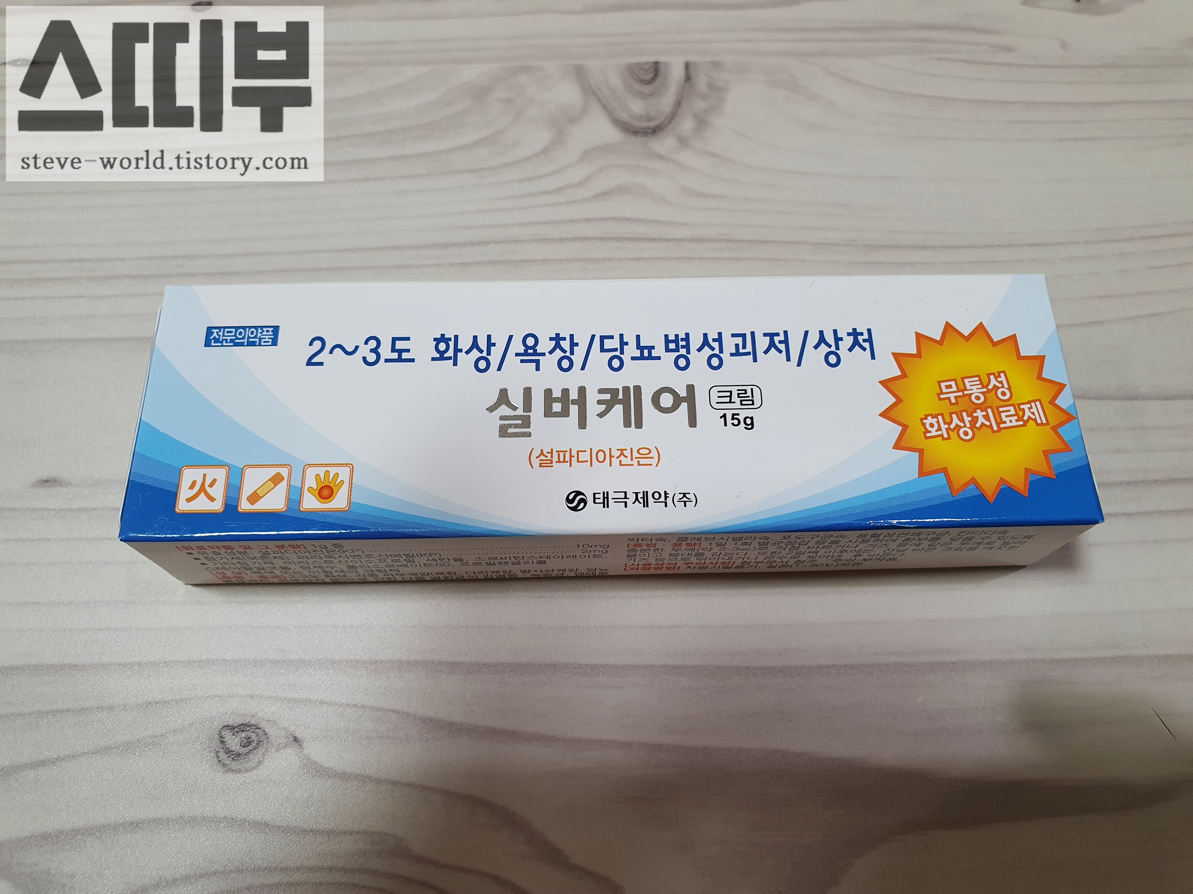 제가 처방받은 연고는 실버케어라는 설파디아진은 연고입니다. 네이버 지식백과에 의하면 설파디아진 은은 주로 화상이나 피부 궤양으로 인한 병원균 감염증 치료에 사용하는 항균제라고 합니다. 성분의 항균효과 때문에, 화상 부위 감염을 예방하는 작용을 한다고 합니다. 2~3도 화상이나 각종 피부 궤양에 사용하는데, 설파디아진 은이 포함되어 있는 연고는 제가 사용한 실버케어 외에도 실마진 연고 등이 있습니다. 화상용 메디폼인 메디폼 실버에도 설파디아진 은이 함유되어있다고 합니다.