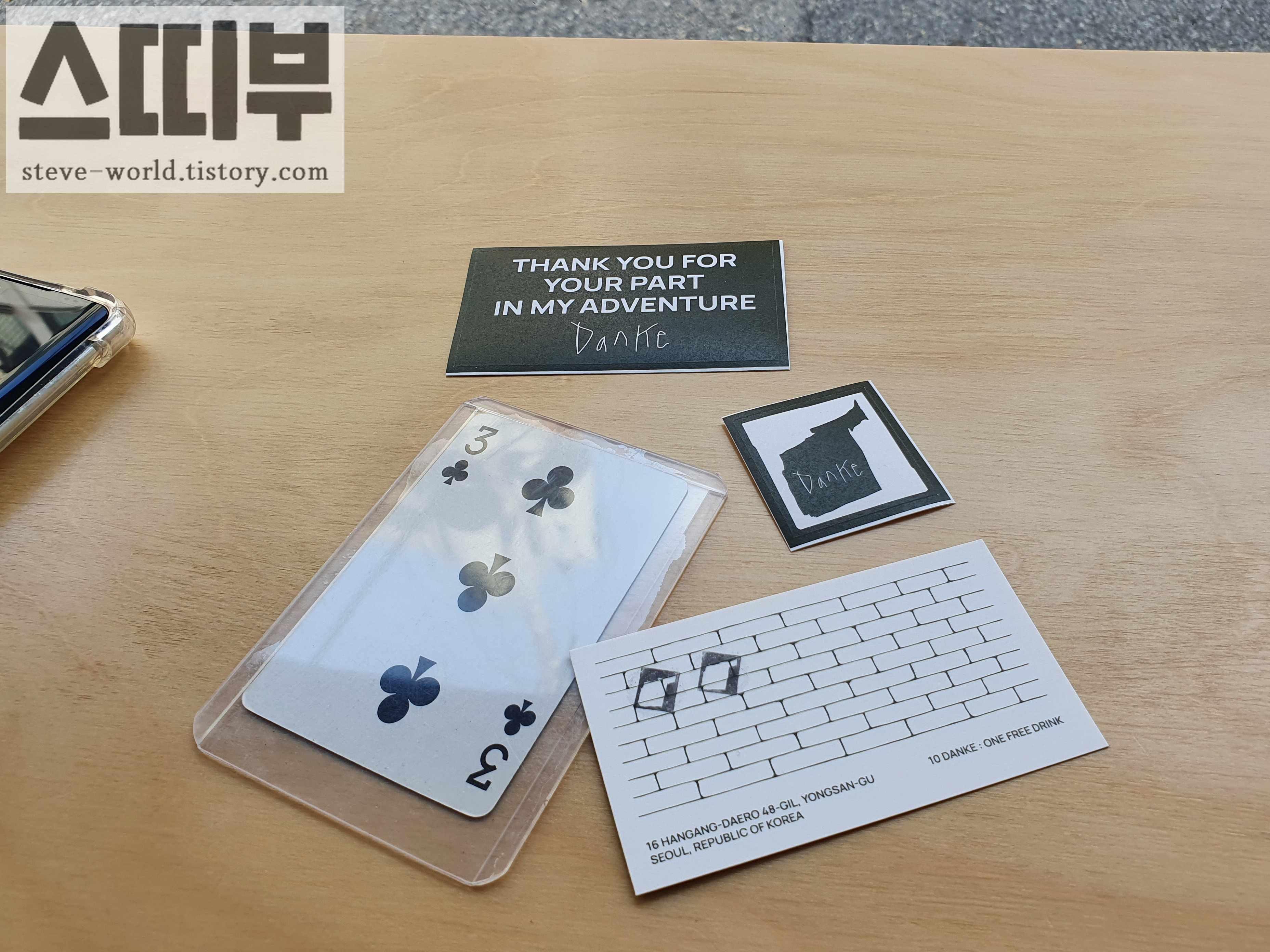 용리단길, 삼각지 맛집 쌤쌤쌤 대기를 걸어두고 근처를 둘러볼까 싶어서 쌤쌤쌤 근처 한 두 블럭을 둘러보았습니다. 주택가에 작은 카페가 눈에 띄었는데, 카페 앞에 대기 좌석 4개가 있고, 두 분이 우선 대기하고 계셨습니다. 쌤쌤쌤과 너무 멀리 떨어지면 안 될 것 같아서 저희도 대기 좌석에 앉았습니다. 12시가 되자 카페가 열렸고, 아메리카노와 라떼를 주문했습니다. 정말 우연히 들어간 카페였는데, 아메리카노 한 모금 마시고 소리 지를 뻔했습니다. 요 근래 마신 커피 중에 가장 맛있었습니다. 다음에 삼각지에서 식사를 한다면, 무조건 커피는 Danke에서 마시고 싶습니다.