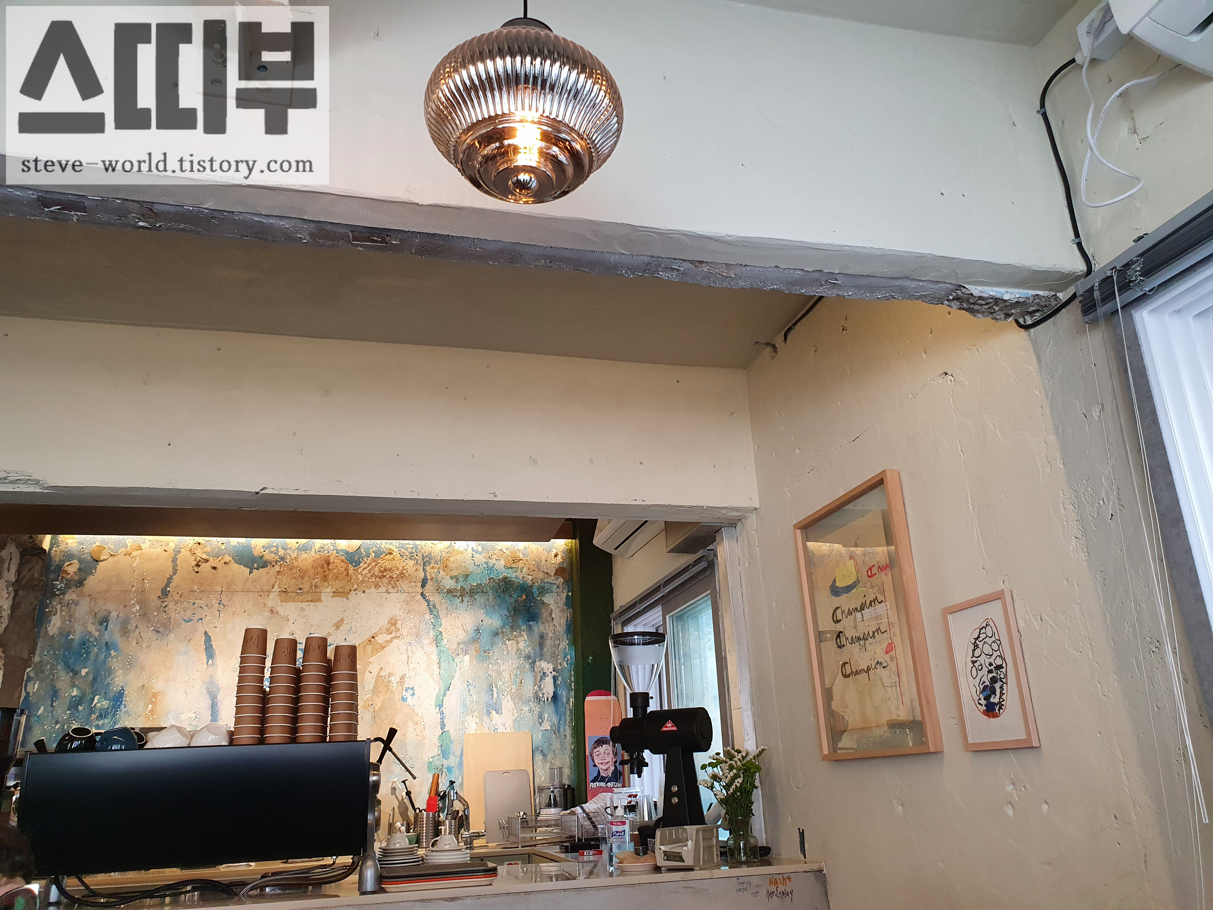 이 작은 카페가 오픈하자 마자, 사람들이 좌석을 모두 메웠습니다. 사람들이 안 보이는 틈을 찾아 사진을 남겨봅니다. 카페 내부도 감각적입니다.