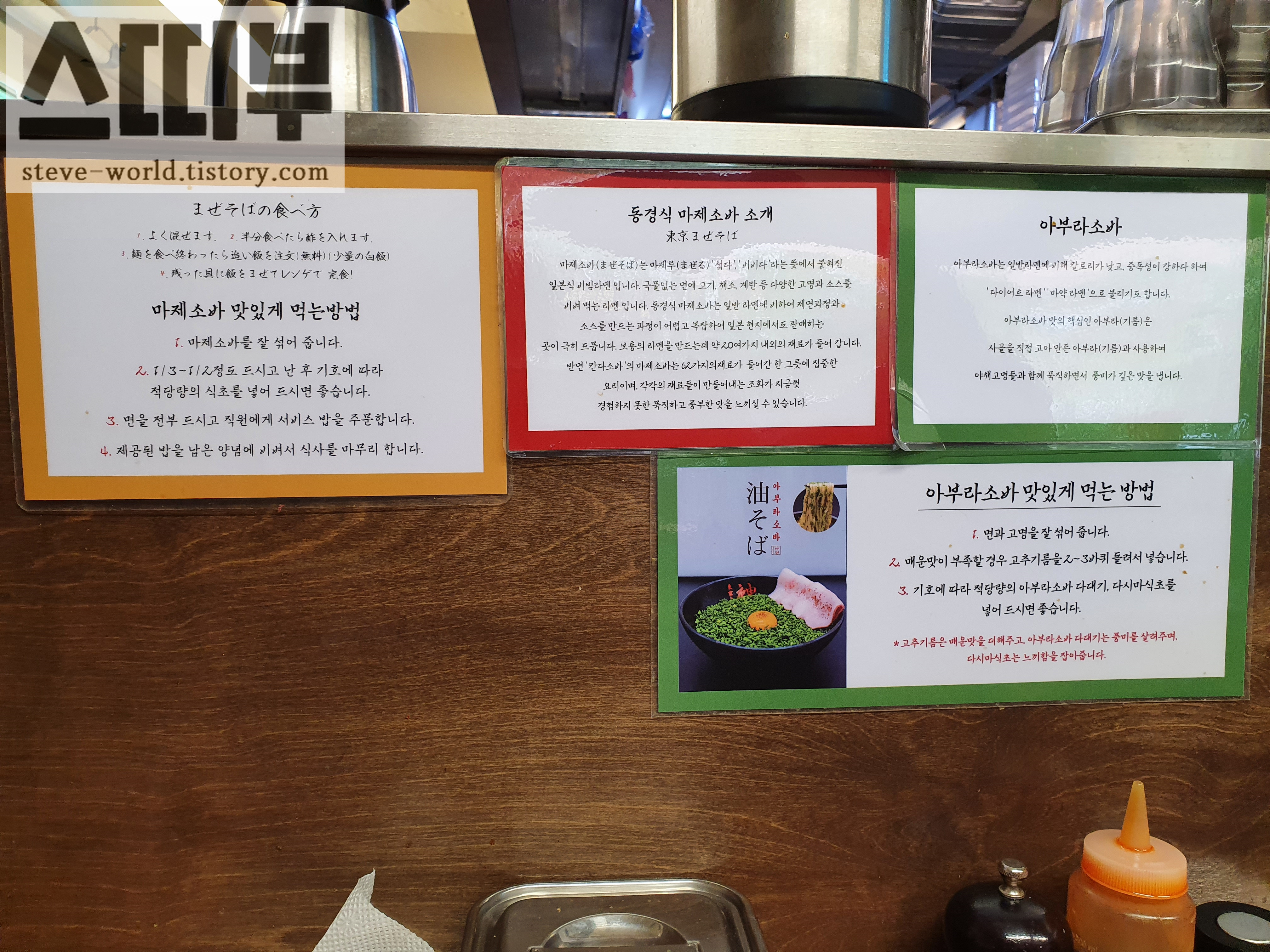 마제 소바와 아부라 소바 맛있게 먹는 방법이 잘 소개되어 있습니다.