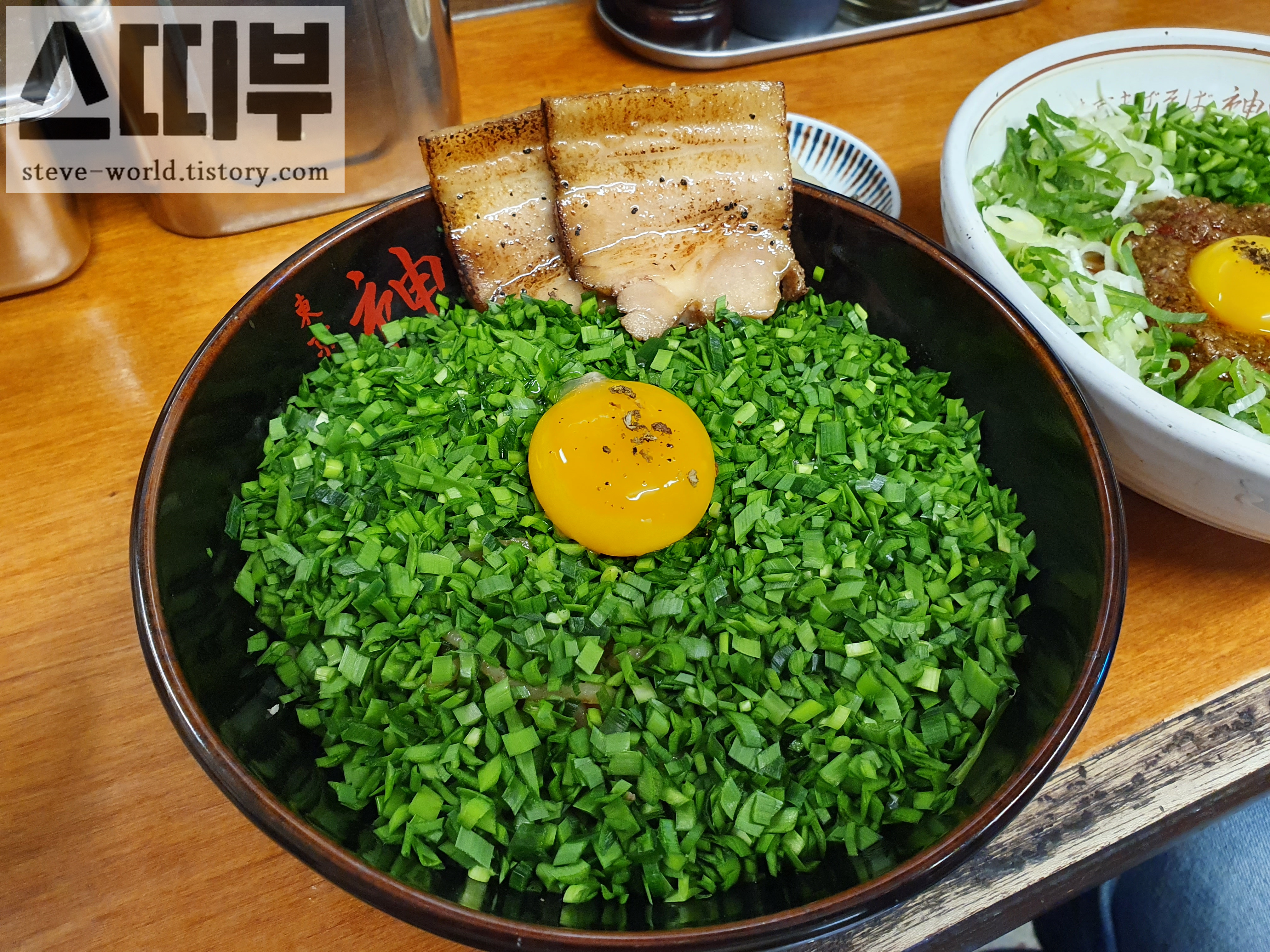 다량의 부추 위에 계란 노른자가 올라가 있습니다. 어떤 맛일지 궁금했습니다. 진한 녹색의 부추 덕분에 눈이 시원해졌습니다. 그리고 불맛 제대로 나는 차슈가 정말 정말 맛있었습니다.