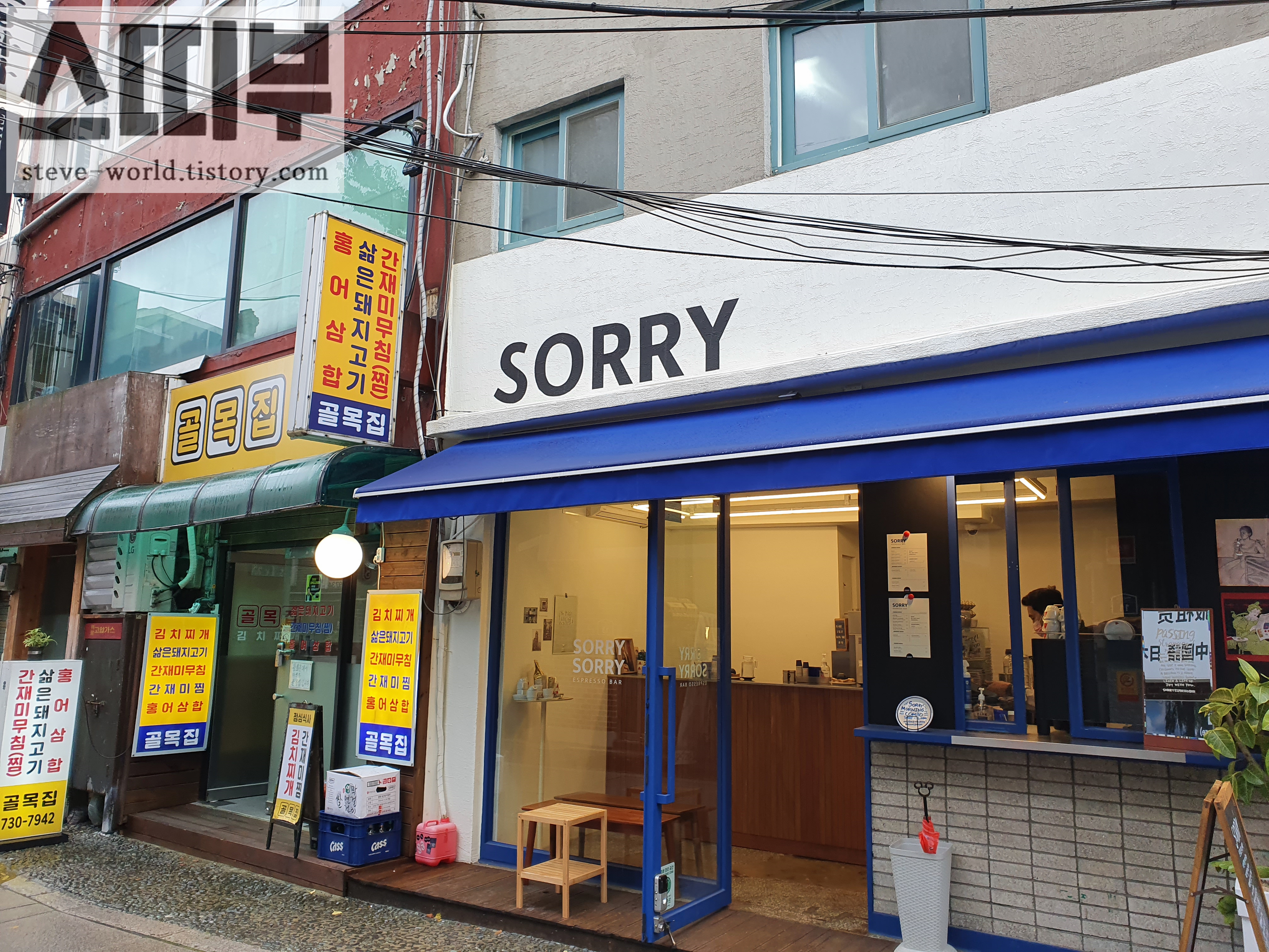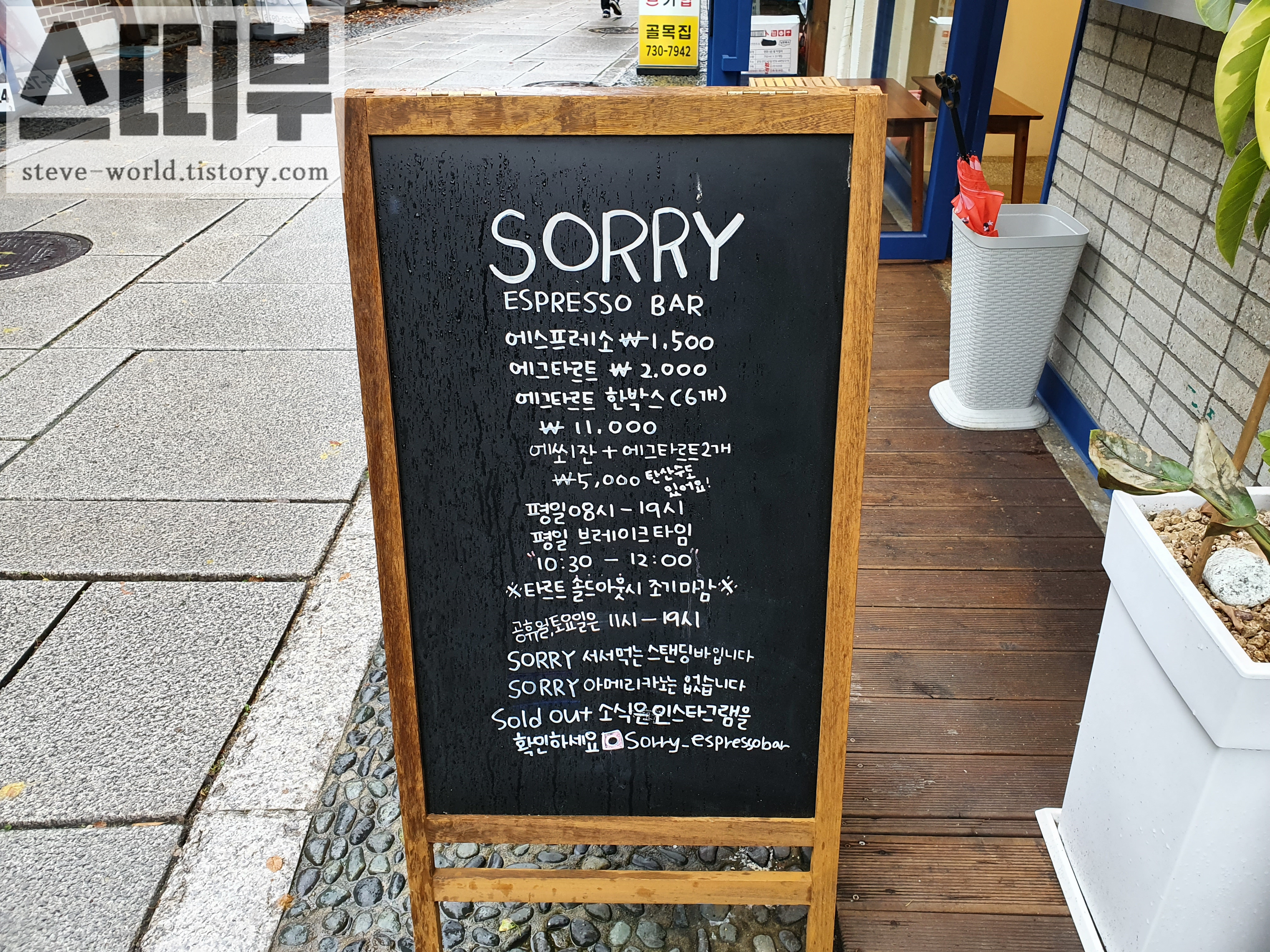 가게 상호명이 쏘리 sorry인 이유는, 좌석이 없고 아메리카노는 없기 때문이라고 합니다. 진짜 포르투갈식 에스프레소 바예요!