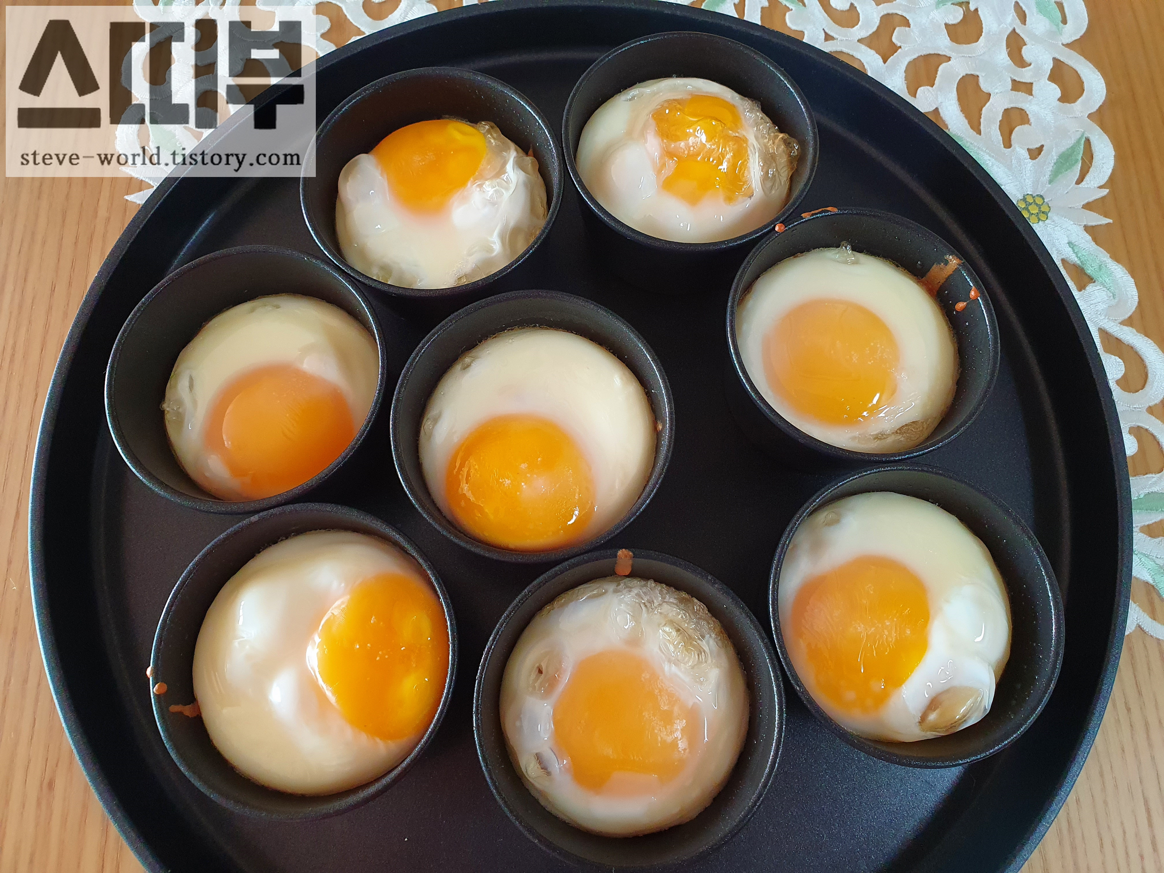레시피에서는 160도 오븐에 10분 구우라고 했는데, 저는 계란을 좀 더 익히고 싶어서 160도에서 15분간 구웠습니다.
