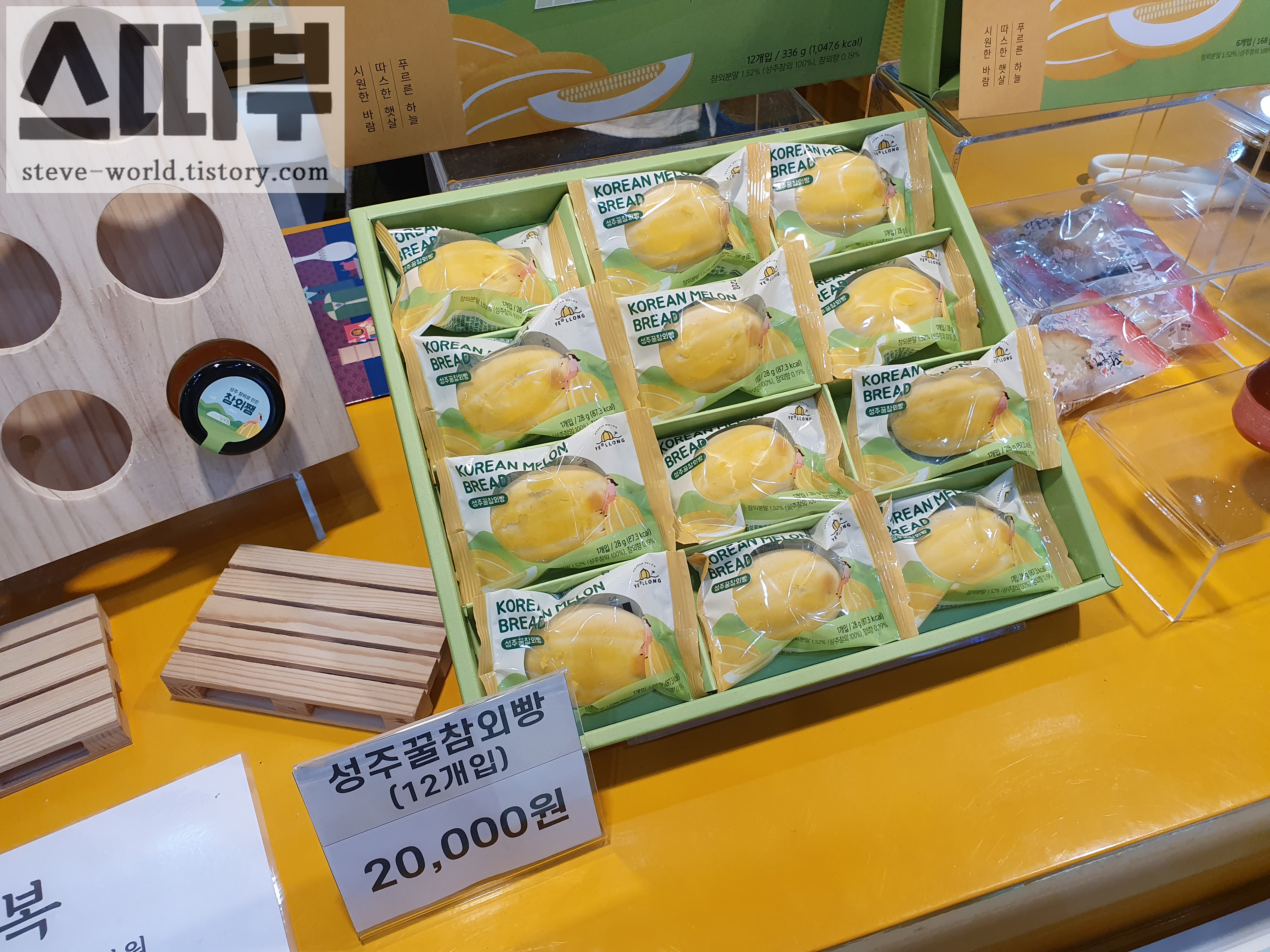 푸드위크에서 판매하는 성주 꿀참외빵은 12개에 20,000원이었습니다.