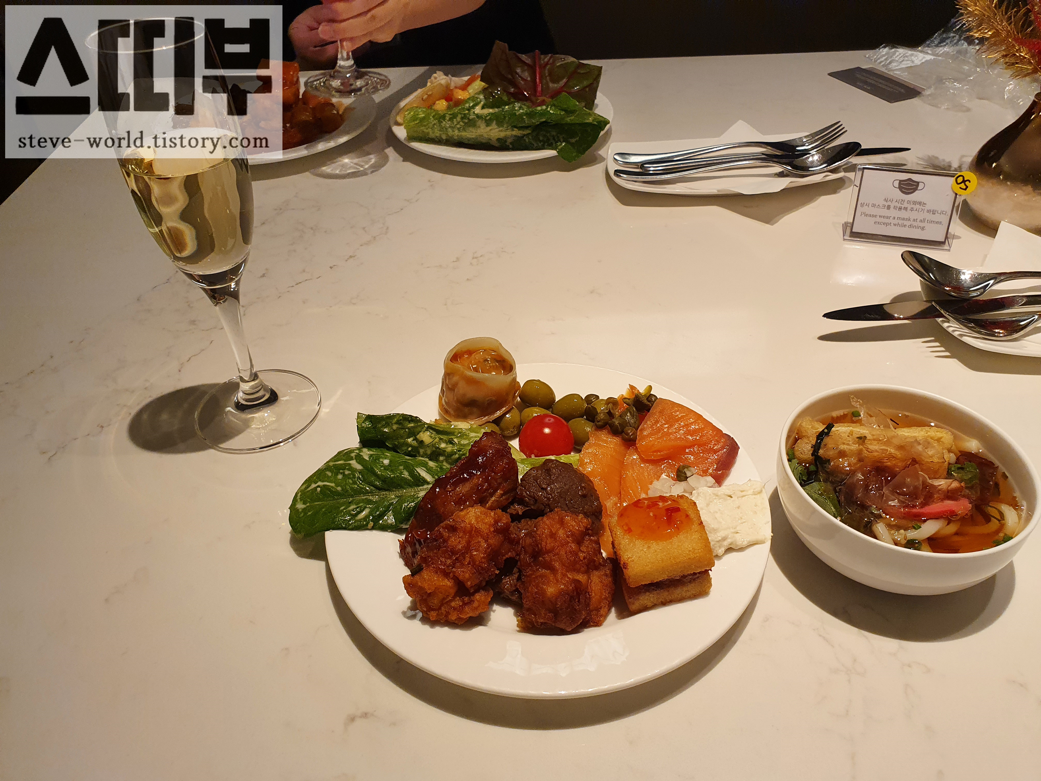 코로나 때문에, 라운지에는 비닐 장갑이 비치되어 있습니다. 비닐장갑을 꼭 착용하고 음식을 담아야 합니다. 음식 종류도 다양하고 맛있어서 잘 이용했습니다.
