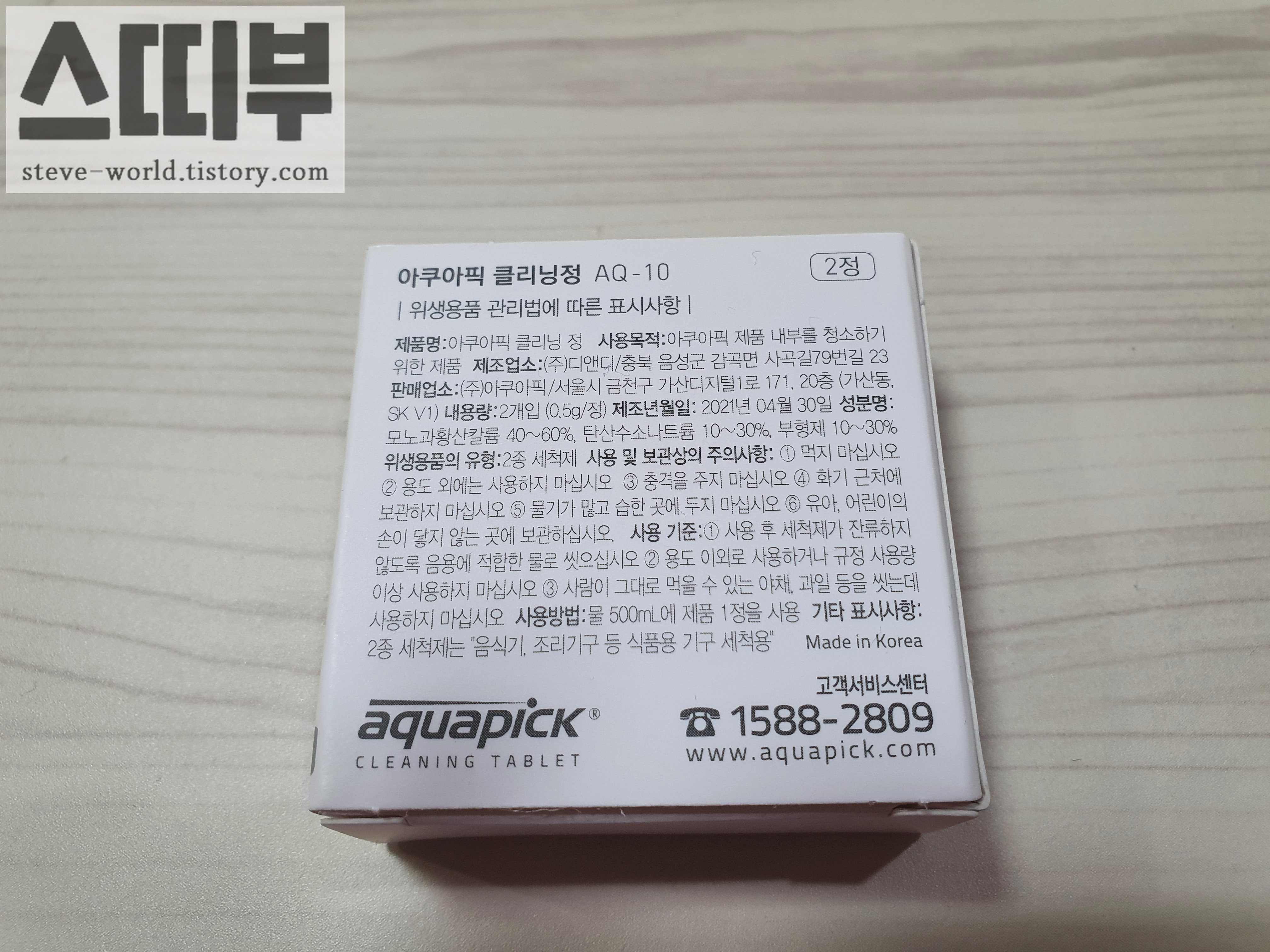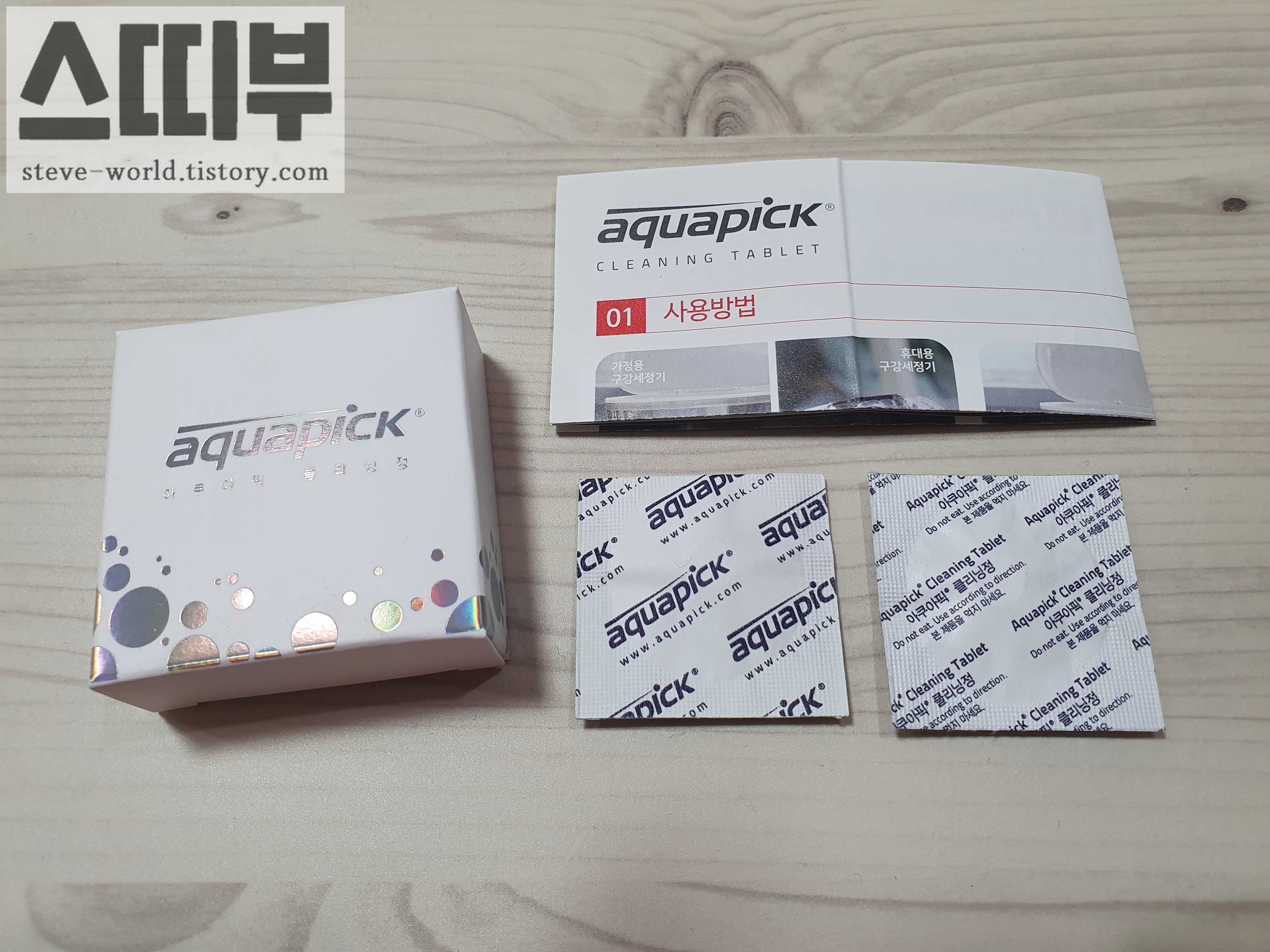 물 500ml에 제품 1정을 사용해, 아쿠아픽 제품 내부를 청소하는 제품입니다.