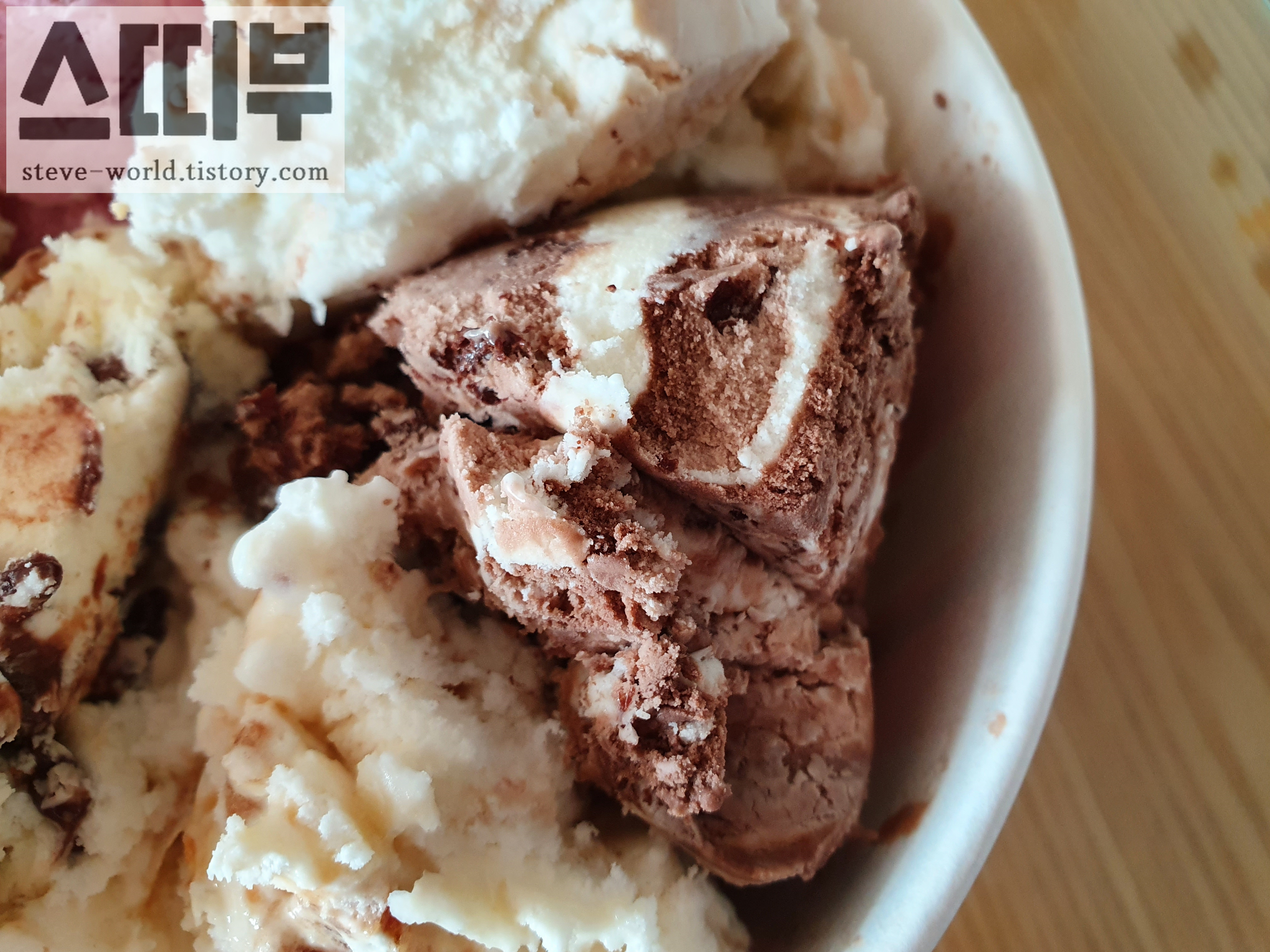 마스카포네 치즈 아이스크림에 아몬드 브리틀과 꿀맛이 들어 있는 '허니 치즈 트랩'입니다. 찐 우유 치즈맛을 좋아하는 분들이라면 정말 좋아할 것 같습니다. 저도 정말 맛있게 먹었습니다. 다음에도 또 먹고 싶어요. 달콤하면서 진한 우유 치즈 맛에 꿀맛도 살짝 나면서, 짭짤한 아몬드 브리틀이 맛을 다채롭게 해 주고 있습니다. 허니 치즈 트랩 추천합니다.