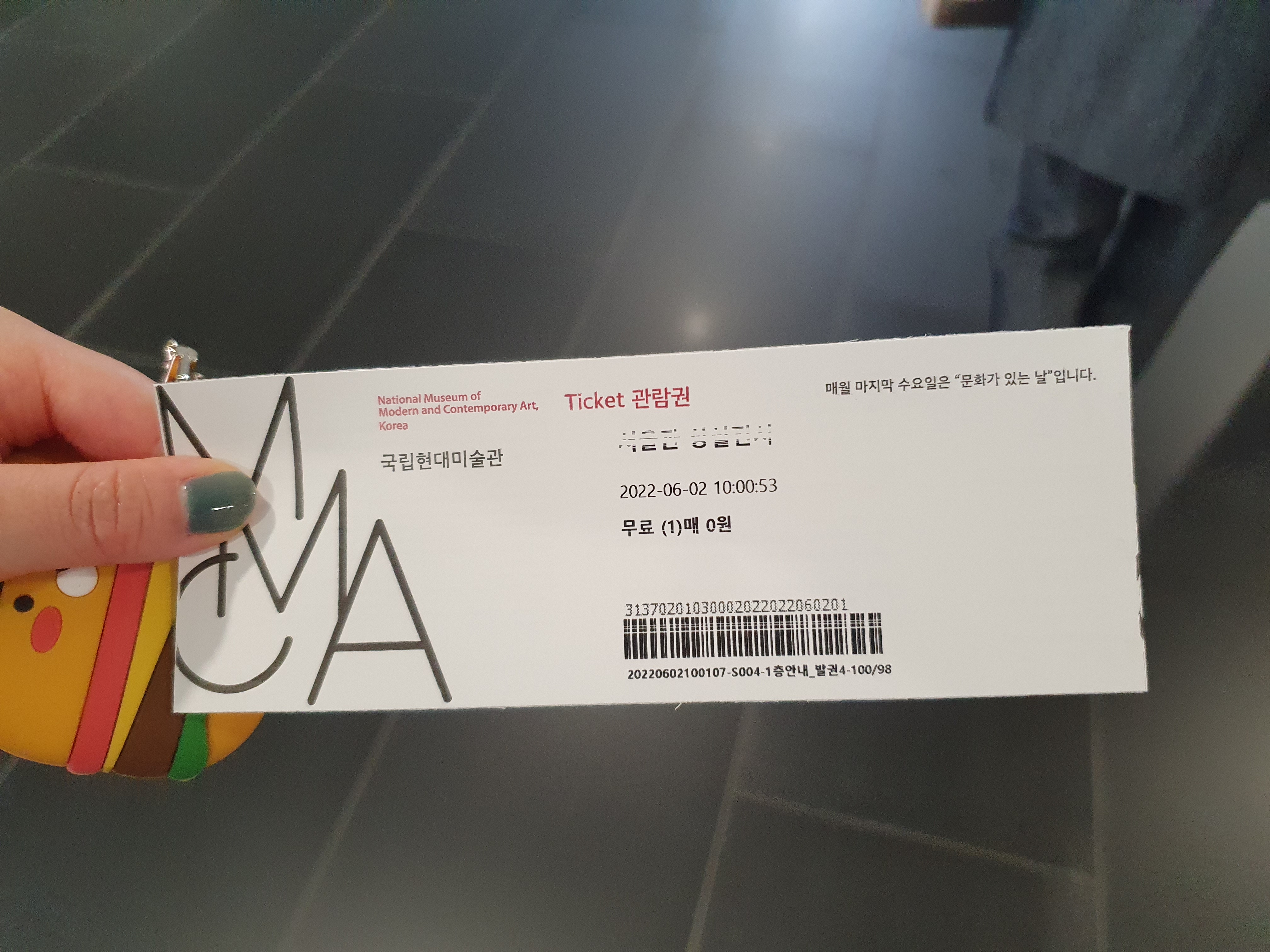 평일 오전 9시 18분 경에 MMCA 입구에 도착해서 줄을 섰습니다. 이미 제 앞에 약 70명 정도 줄을 서 있었습니다. 개관시간인 10시에 문이 열렸고, 안내를 받아 차례로 티켓을 받았습니다. 티켓 수령 후에도 입장할 때까지 줄을 서 있었습니다. 실제 전시장 입장한 시간은 10시 27분이었습니다.