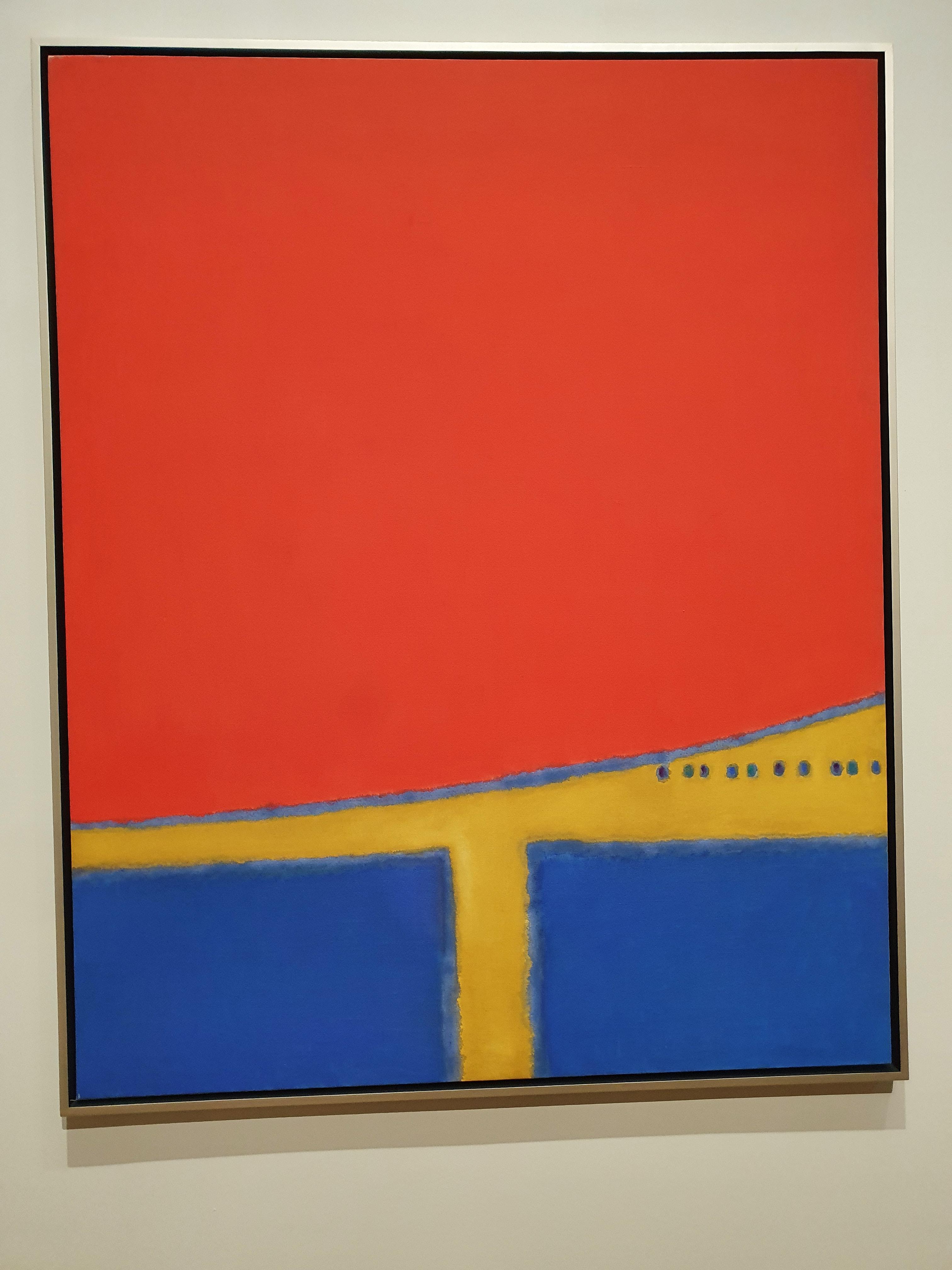 작가의 뉴욕 시기 작품으로, 점화 형식 이전에 부분적으로 찍힌 색점이 색면 구도에 결합된 과도기적 작품이라고 합니다.