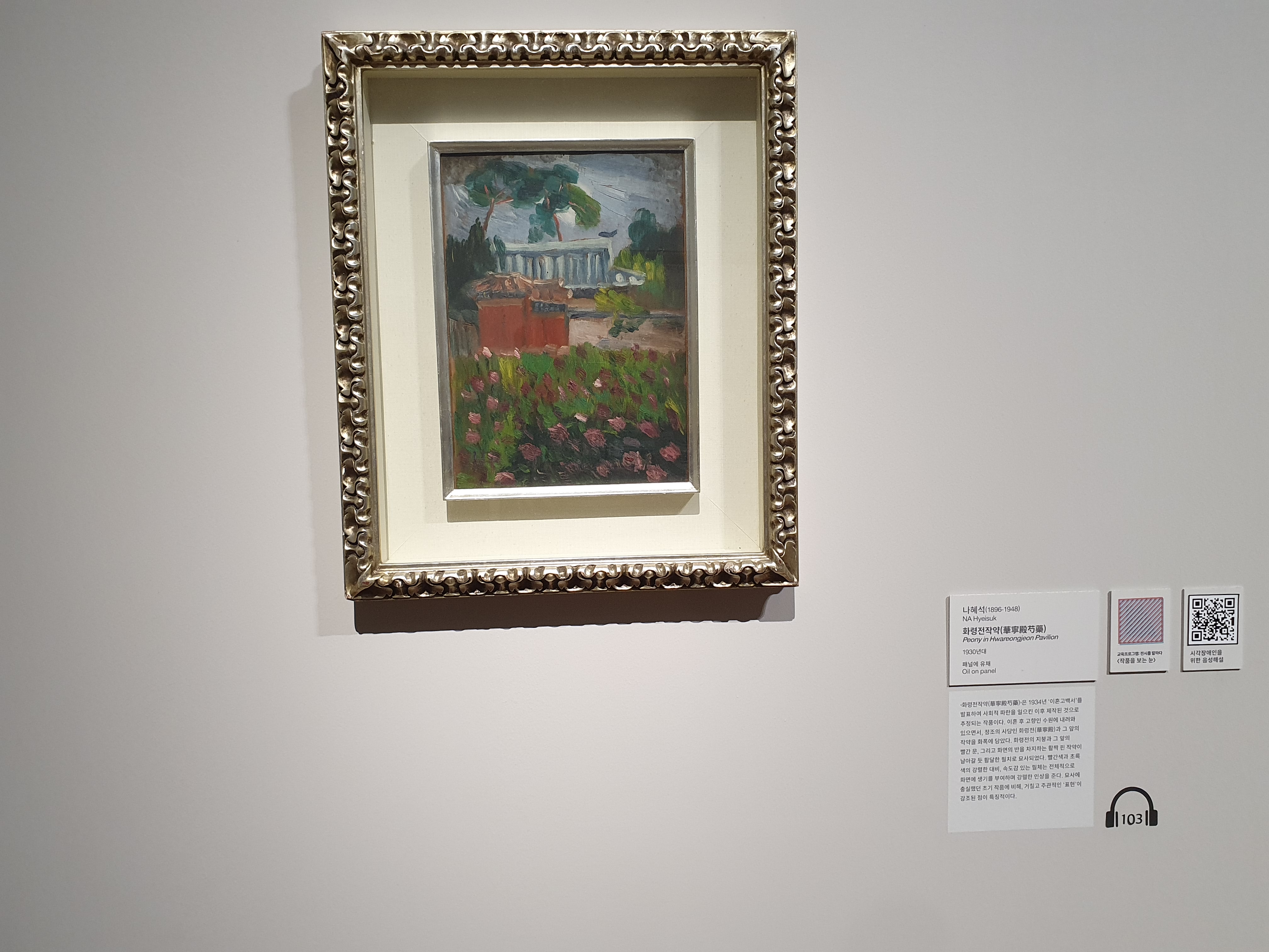 기구한 삶으로도 잘 알려진 나혜석 선생님의 작품입니다. 남편과 이혼한 뒤, '이혼고백서'라는 글을 발표한 후 이 그림이 제작된 것으로 알려져 있습니다. 정조의 어진을 보관하는 수원 화령전과 그 앞의 작약을 담고 있는 그림입니다.