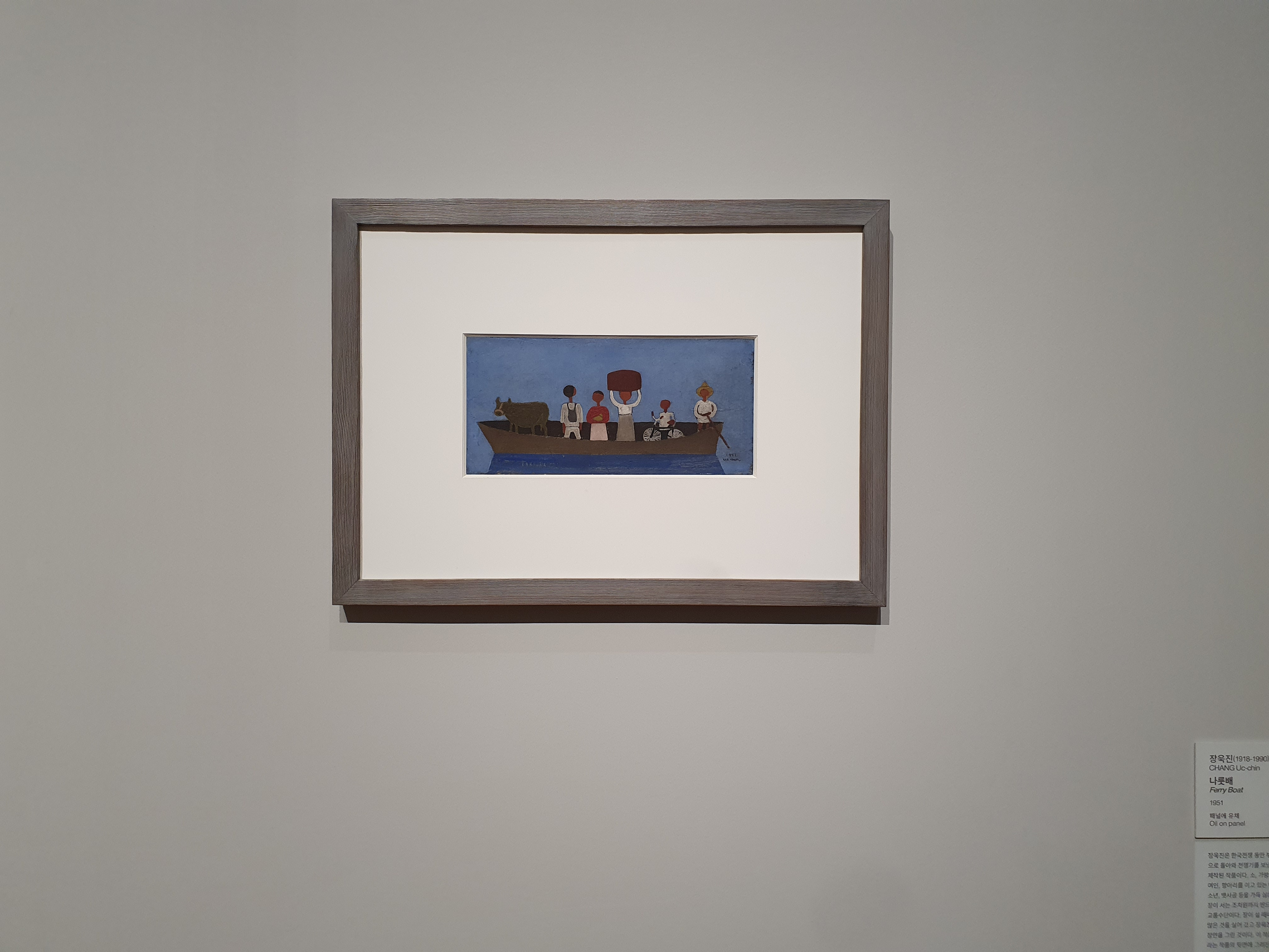 '나룻배'는 한국전쟁 시기에 그려진 것으로, 작가가 어린 시적 고향에서 마주했던 강나루 풍경을 그린 것이라고 합니다.