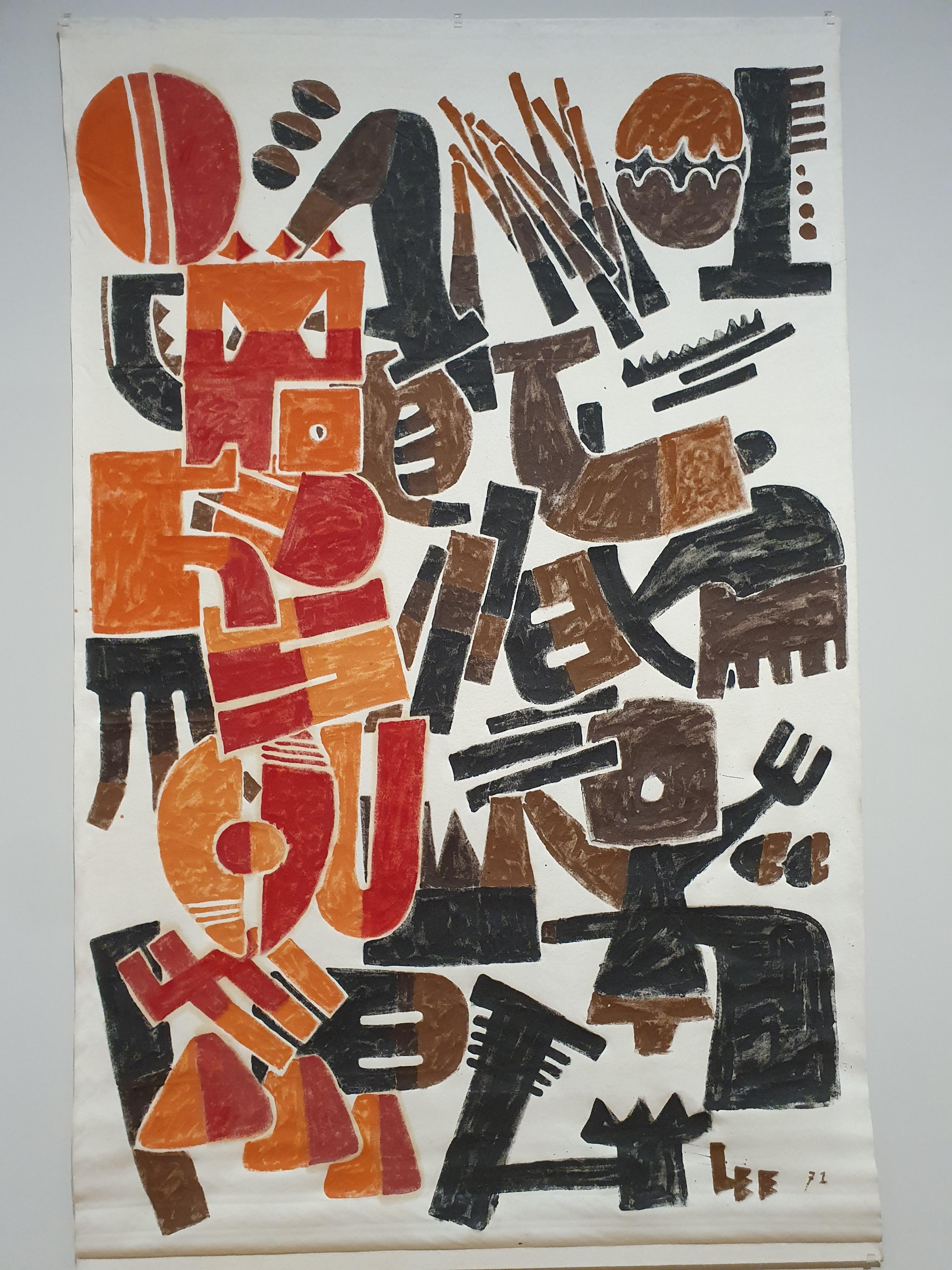한국 추상화의 선구자 수화 김환기의 작품입니다. 뉴욕에 가기 전인 1950년대까지는 한국적인 이미지들이 그림 속에 많이 등장했다고 합니다.