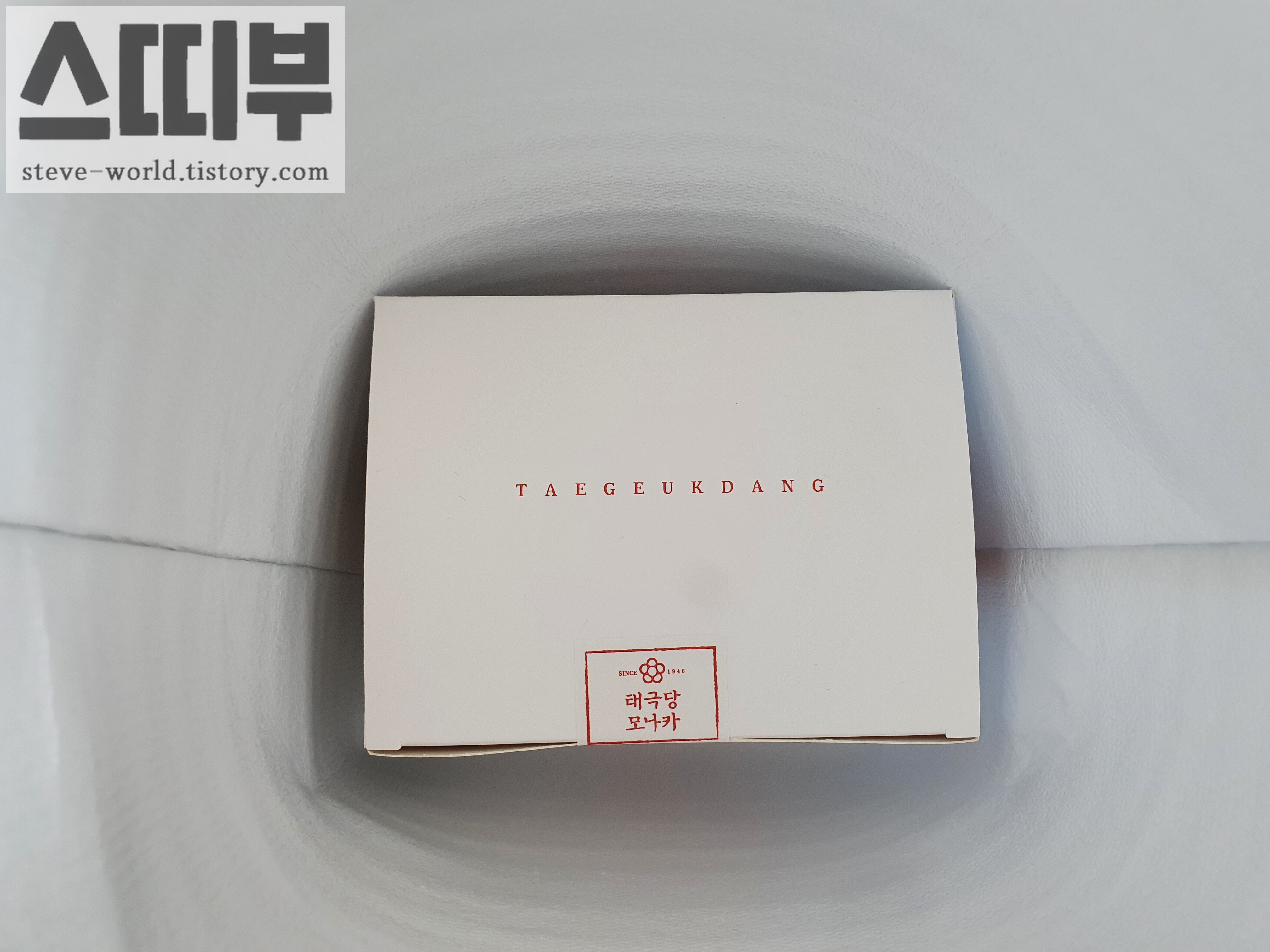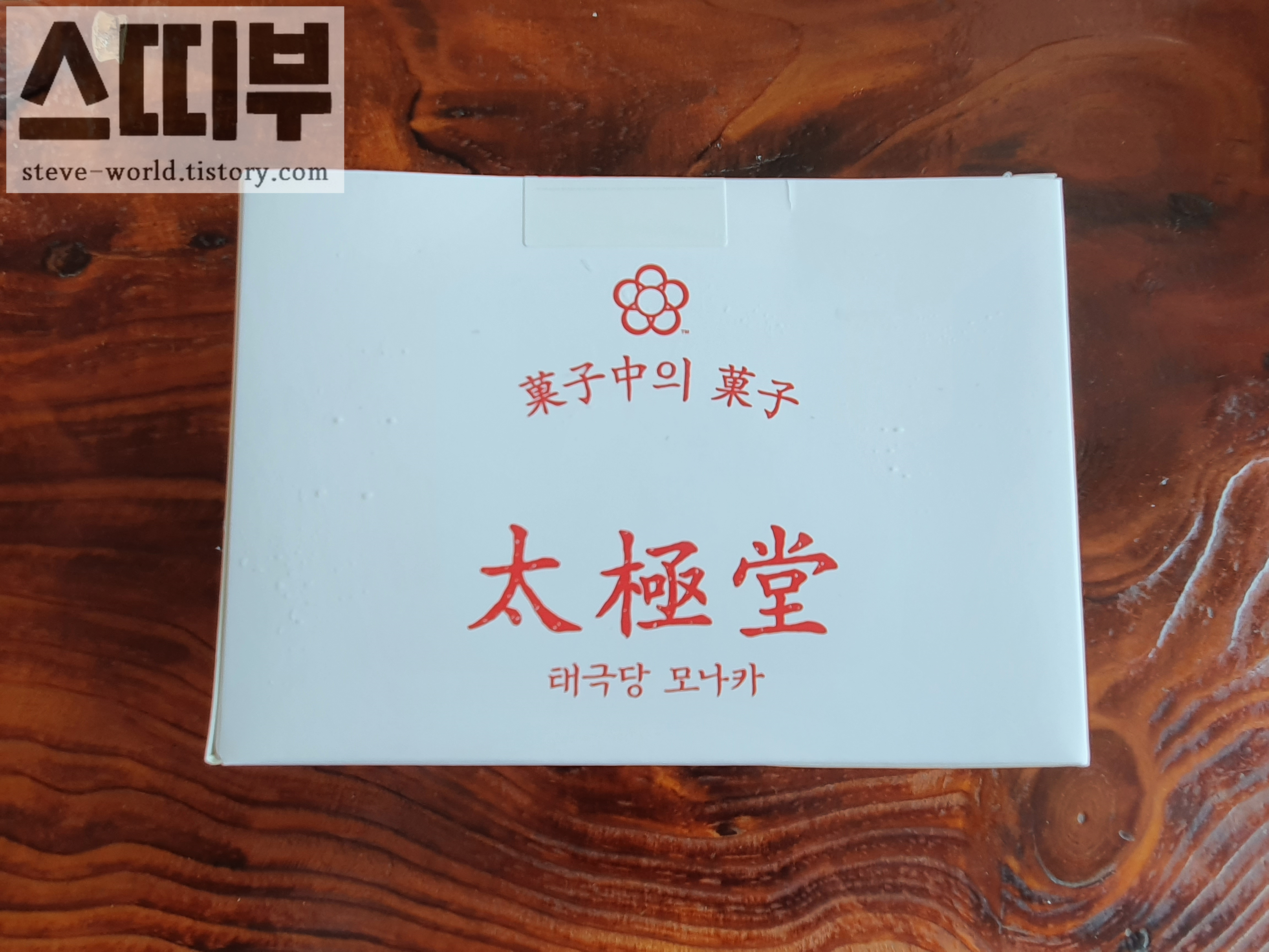 모나카 상자의 옆면에 태극당 모나카를 사진과 함께 잘 설명하고 있습니다.