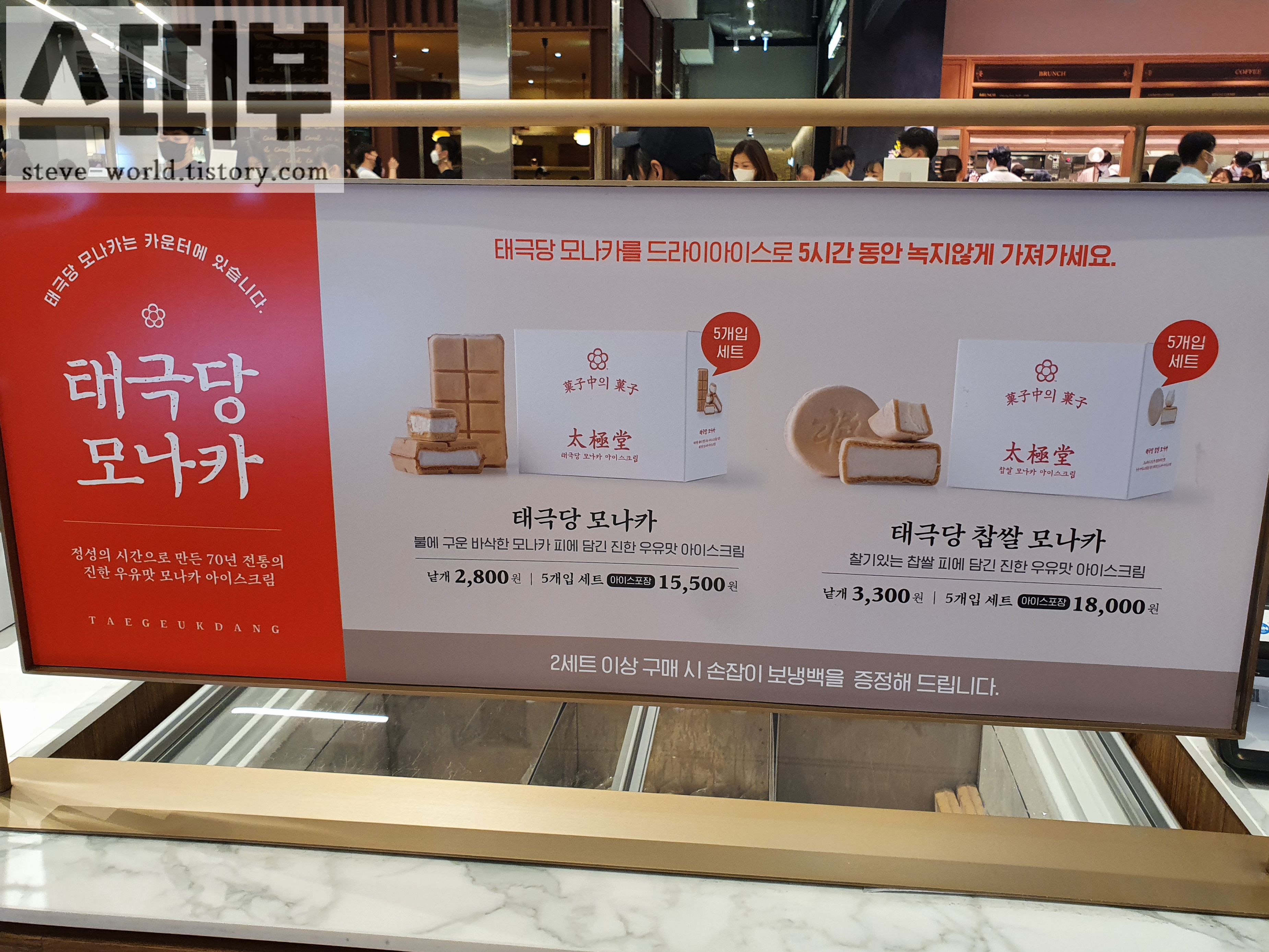 5월에 다녀온 더 현대 맛집, 태극당 모나카 구입 후기입니다. 평일에 방문했는데도 사람이 어마어마하게 많았습니다.
