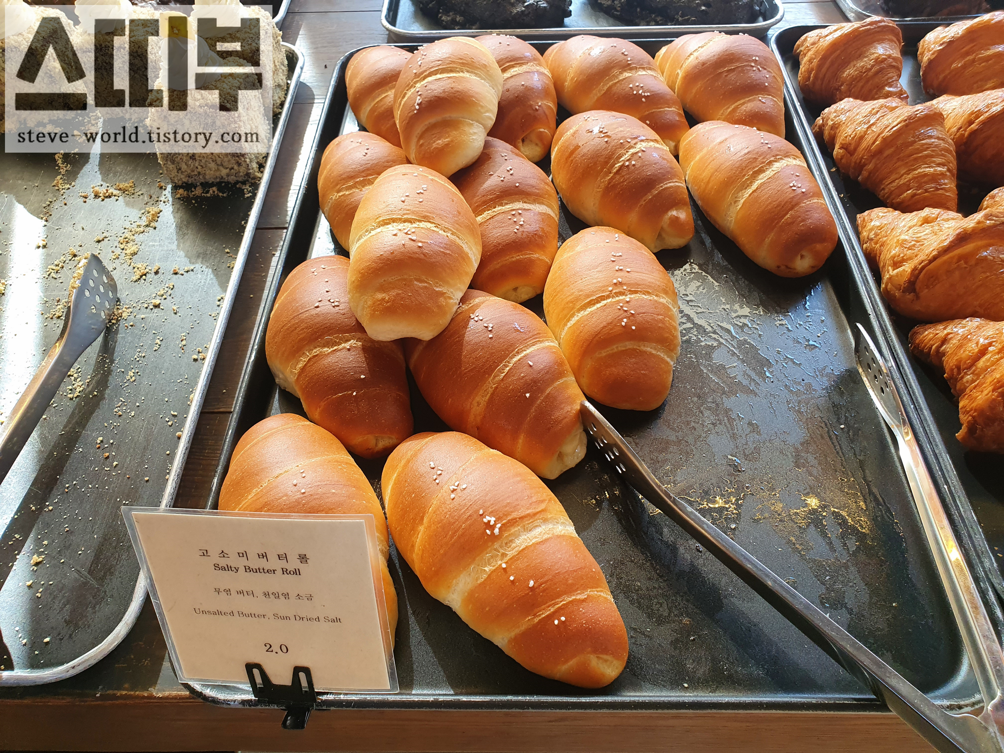 제가 방문한 시간에, 마침 갓 구워진 소금빵이 나왔습니다. 따끈따끈한 고소미 버터롤을 집으니, 제 마음도 따끈따끈해졌어요.