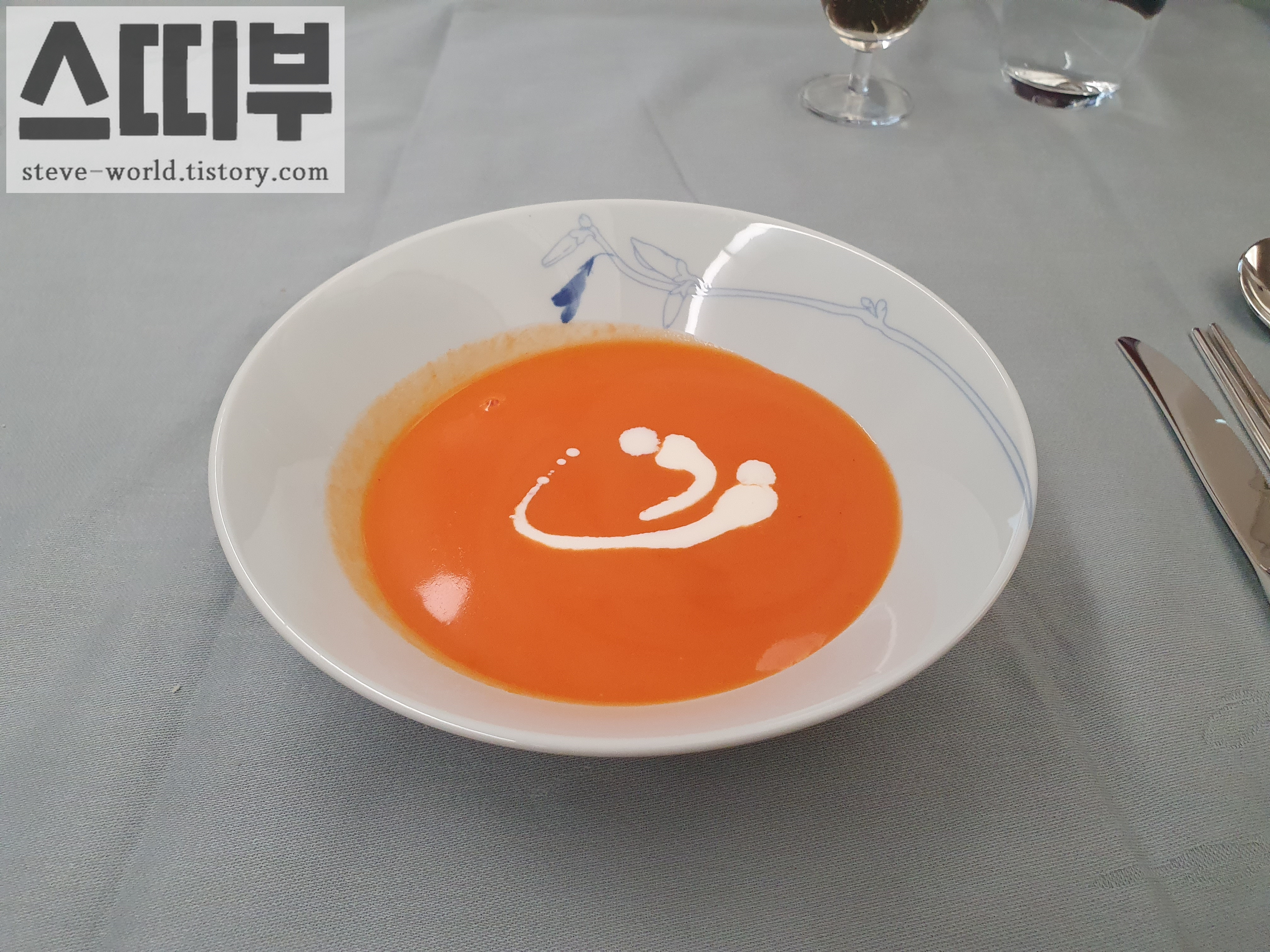 수프로는 토마토 크림스프가 나왔습니다.