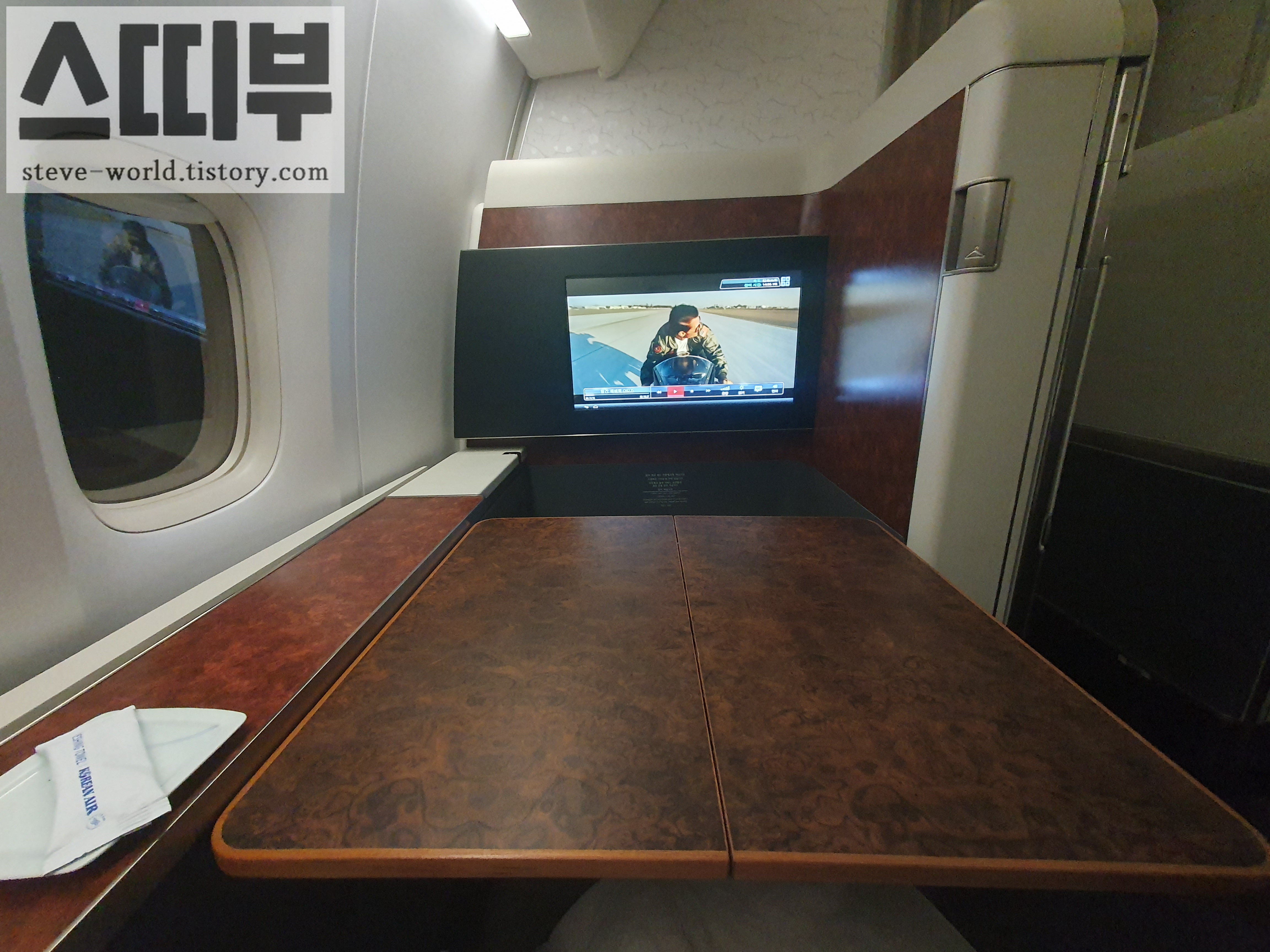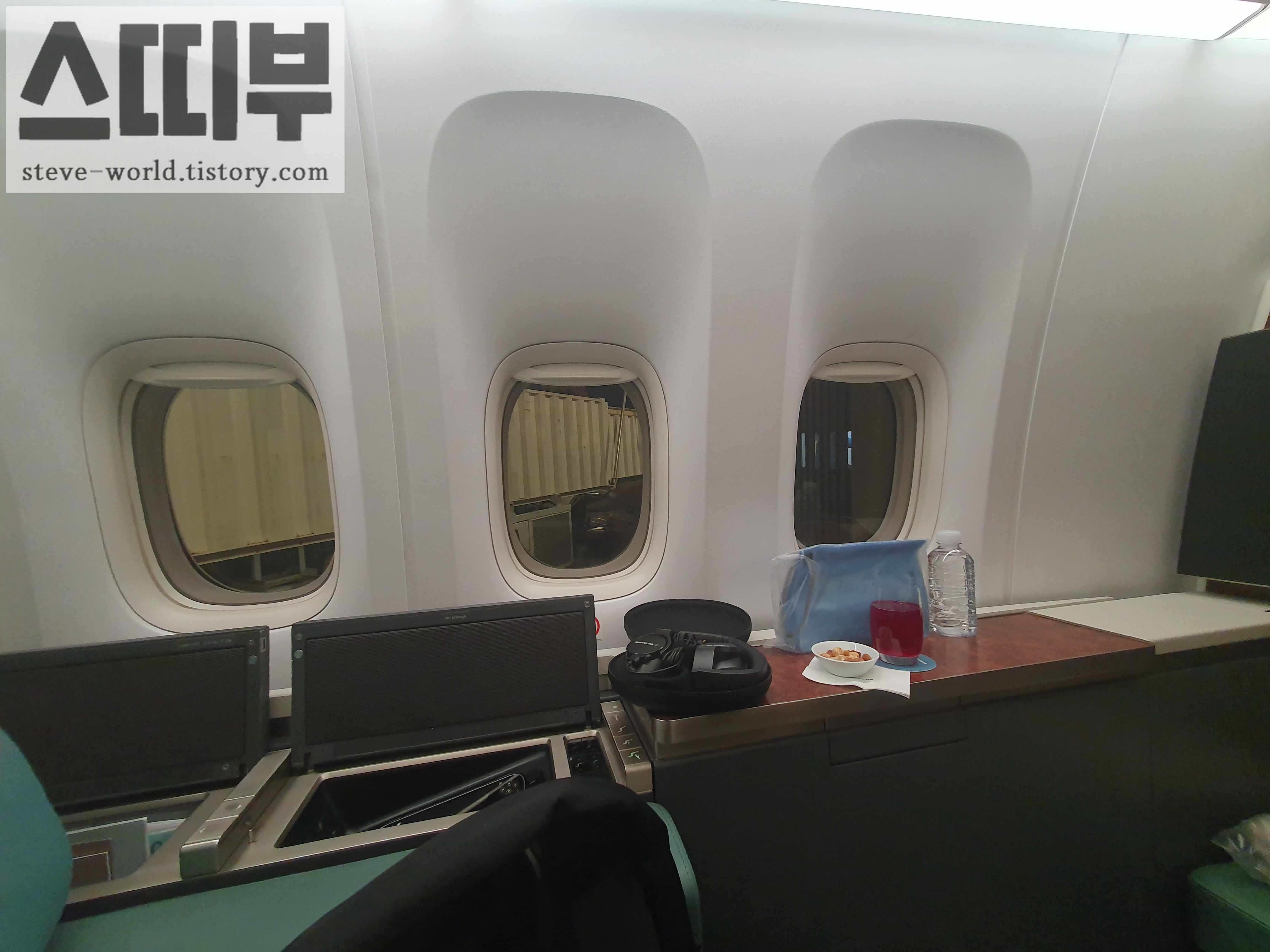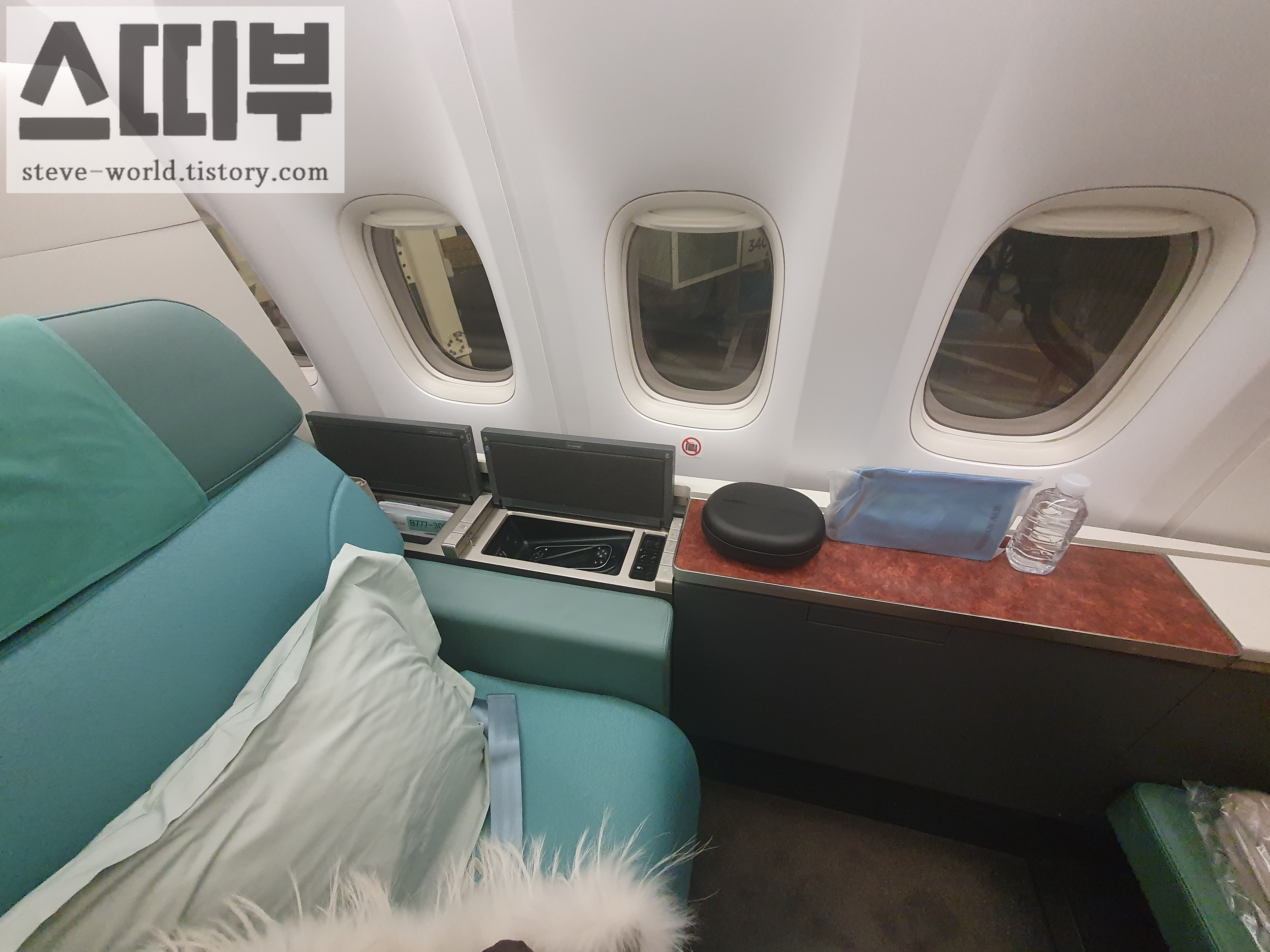 일등석 창가석은 보통 한 좌석당 창문이 4개인데, 제가 앉은 1A 좌석은 창문이 3개입니다. 저는 1A 좌석에 앉고 싶어서, 창문 개수보다는 의미 있는 좌석을 선택했습니다.