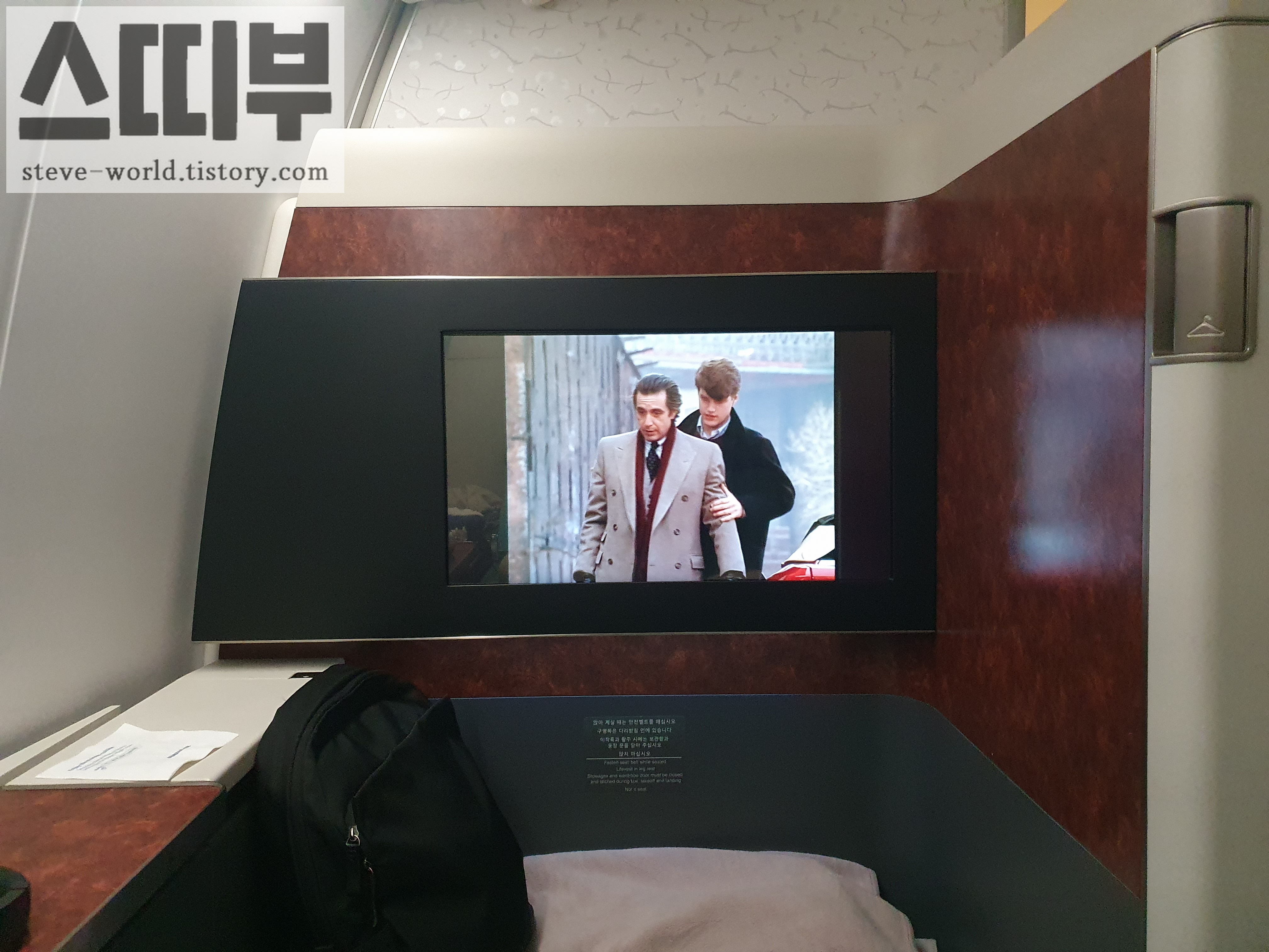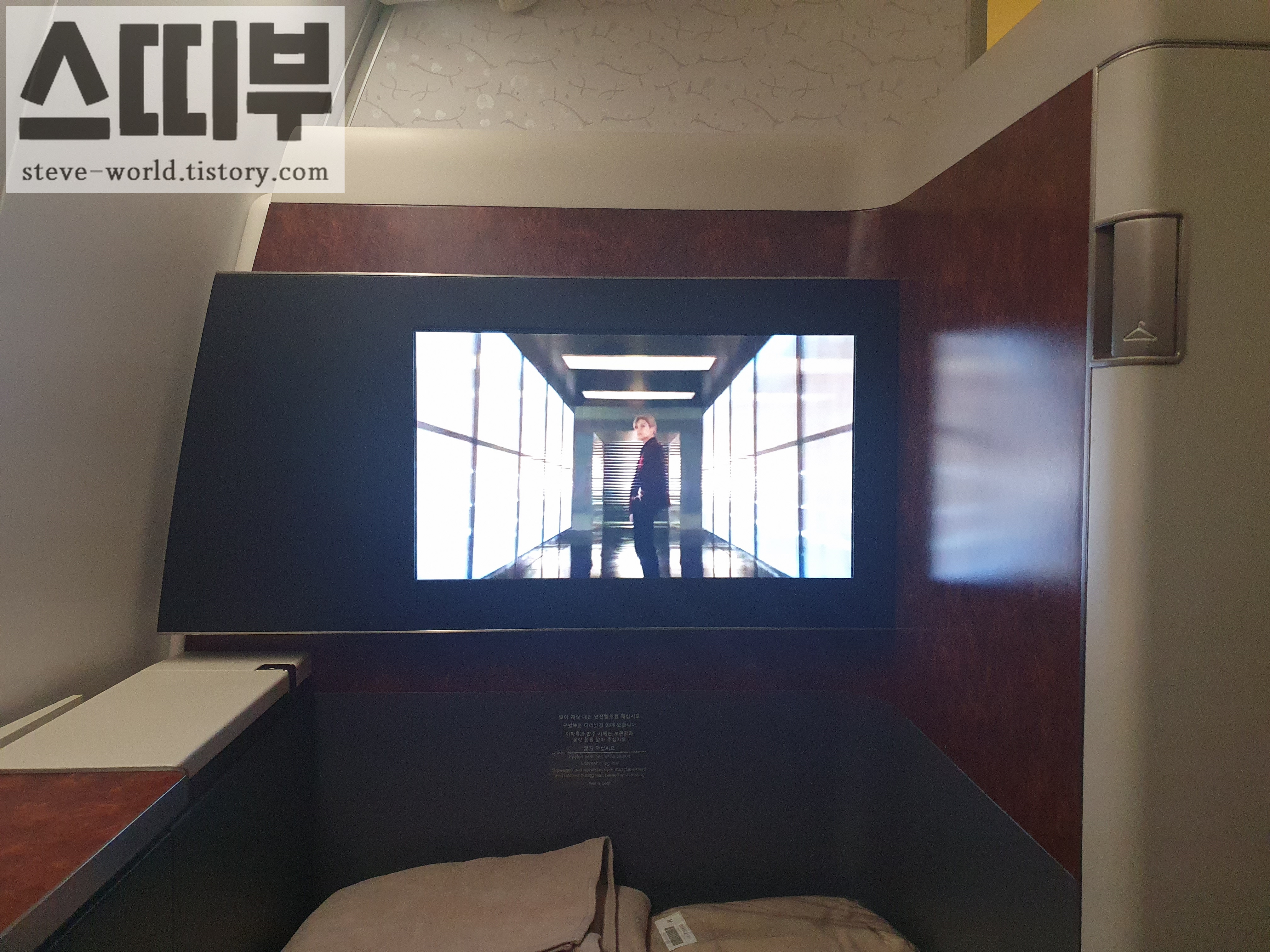일등석 화면이 훨씬 크고, 선명하게 보입니다. 좌석 환경도 훨씬 프라이빗 합니다.