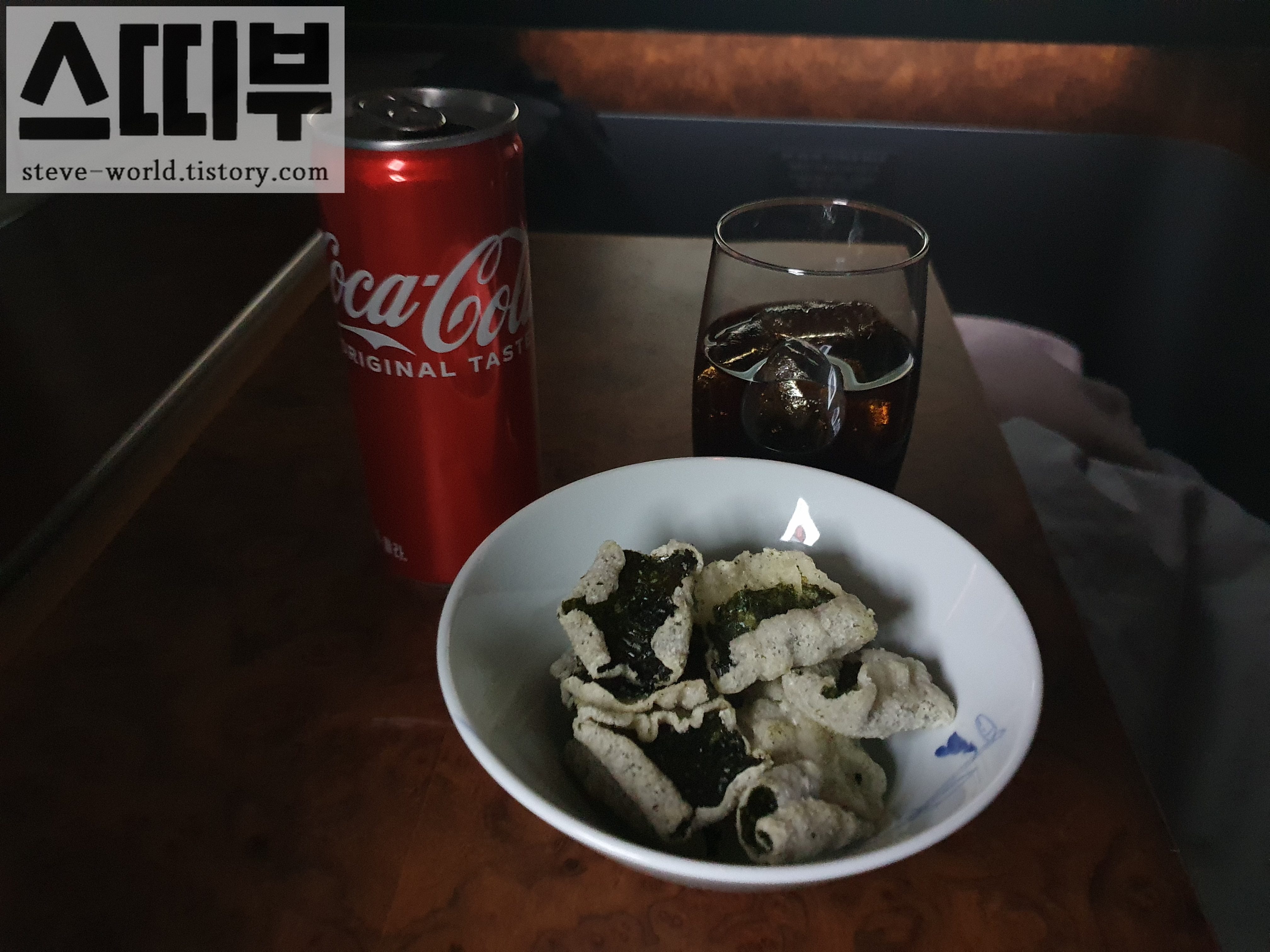 다시 일어나서 먹은 간식입니다. 김부각과 콜라입니다. 김부각은 바삭바삭하고, 짭짤 고소해서 좋았습니다. 영화 보면서 맛있게 먹었습니다.