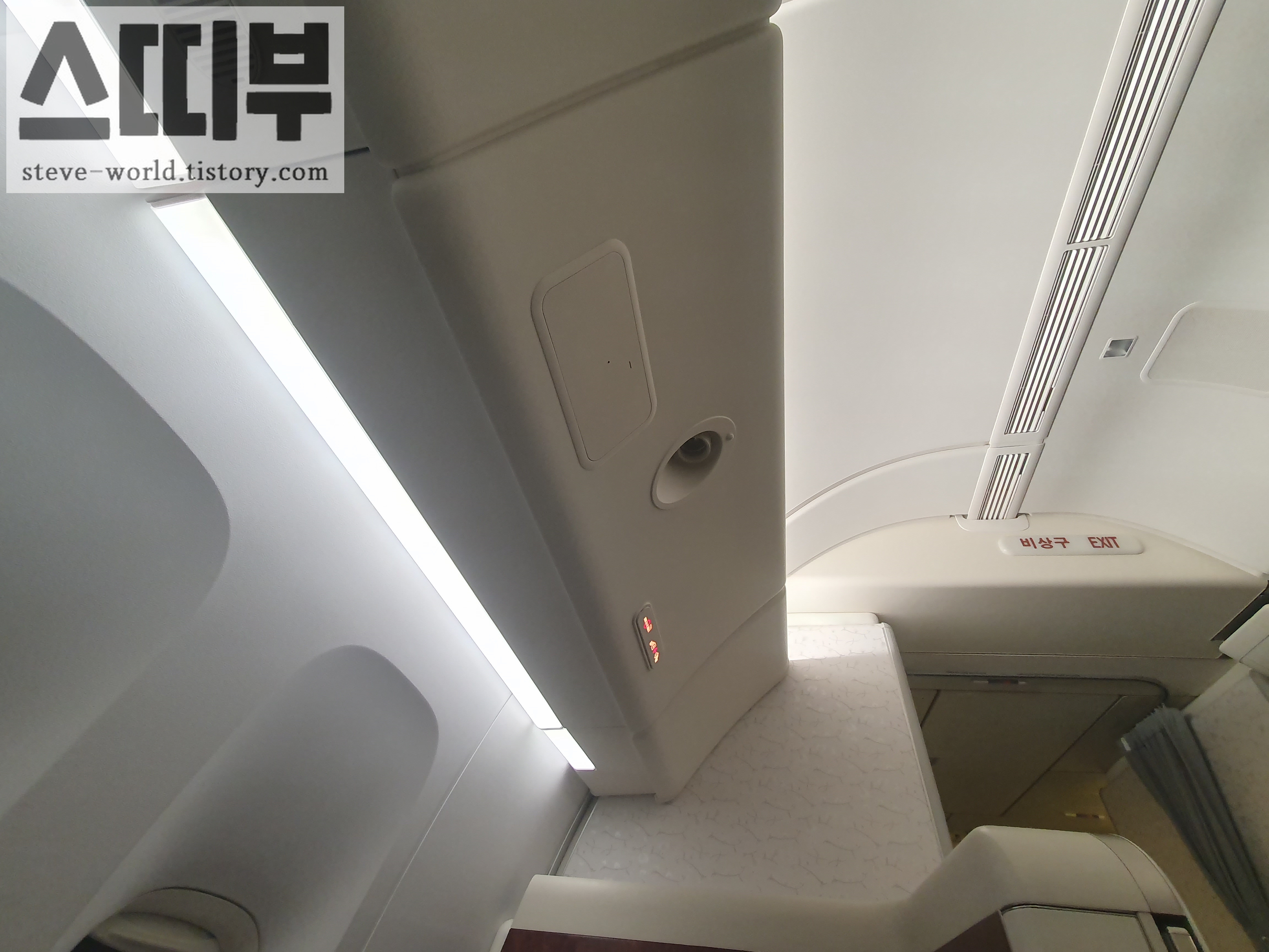 천장도 트여있어서 좌석이 더 넓게 느껴졌습니다. 보통 이코노미, 프레스티지 좌석 천장은 짐을 보관하는 칸 때문에 조금 답답하게 느껴집니다.