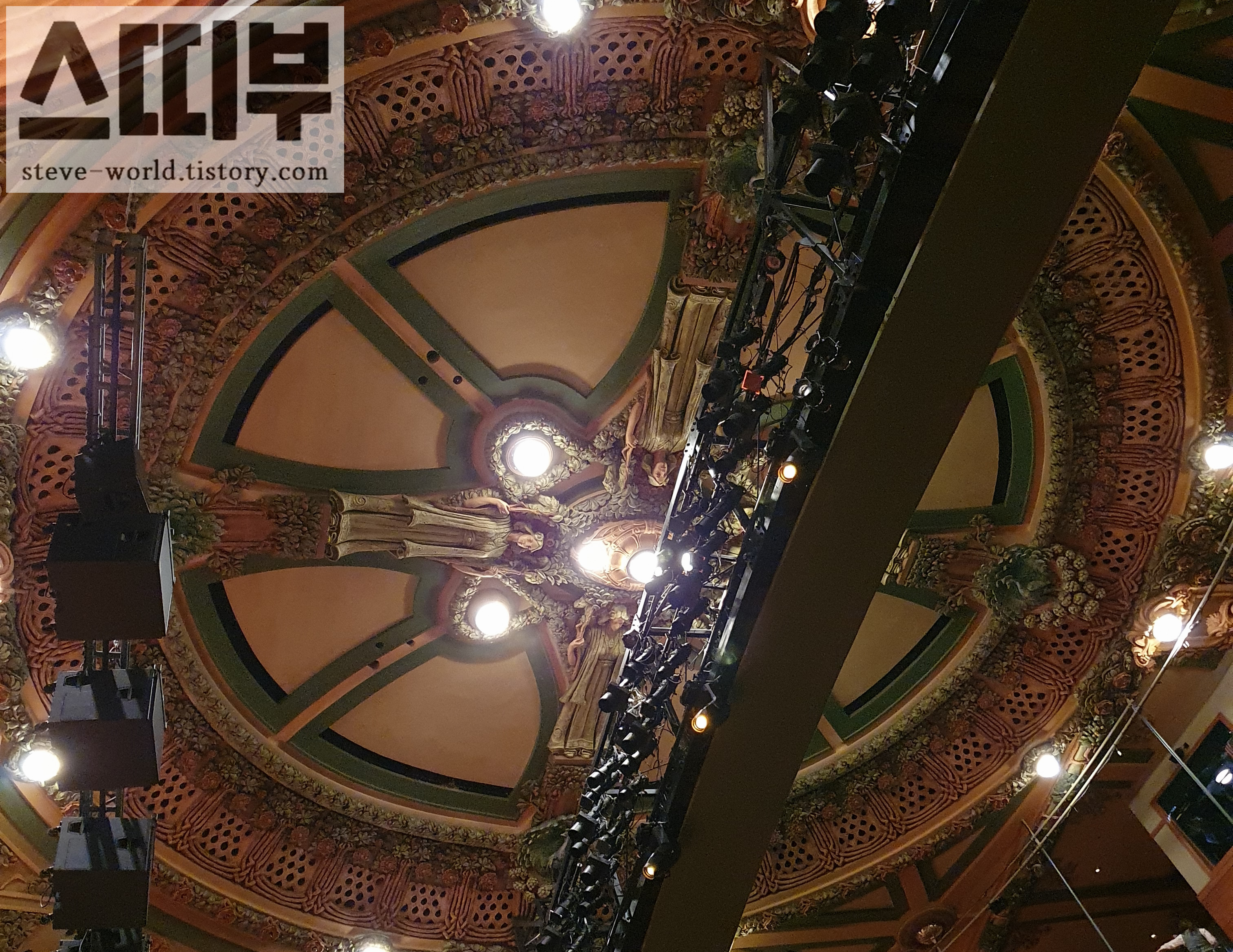 물랑루즈를 공연한 알 허쉬펠트 극장에서 찍은 천장이 인상 깊어서, 뉴 암스테르담 극장의 천장도 사진에 담아 보았습니다. 정말 아름다운 극장입니다.