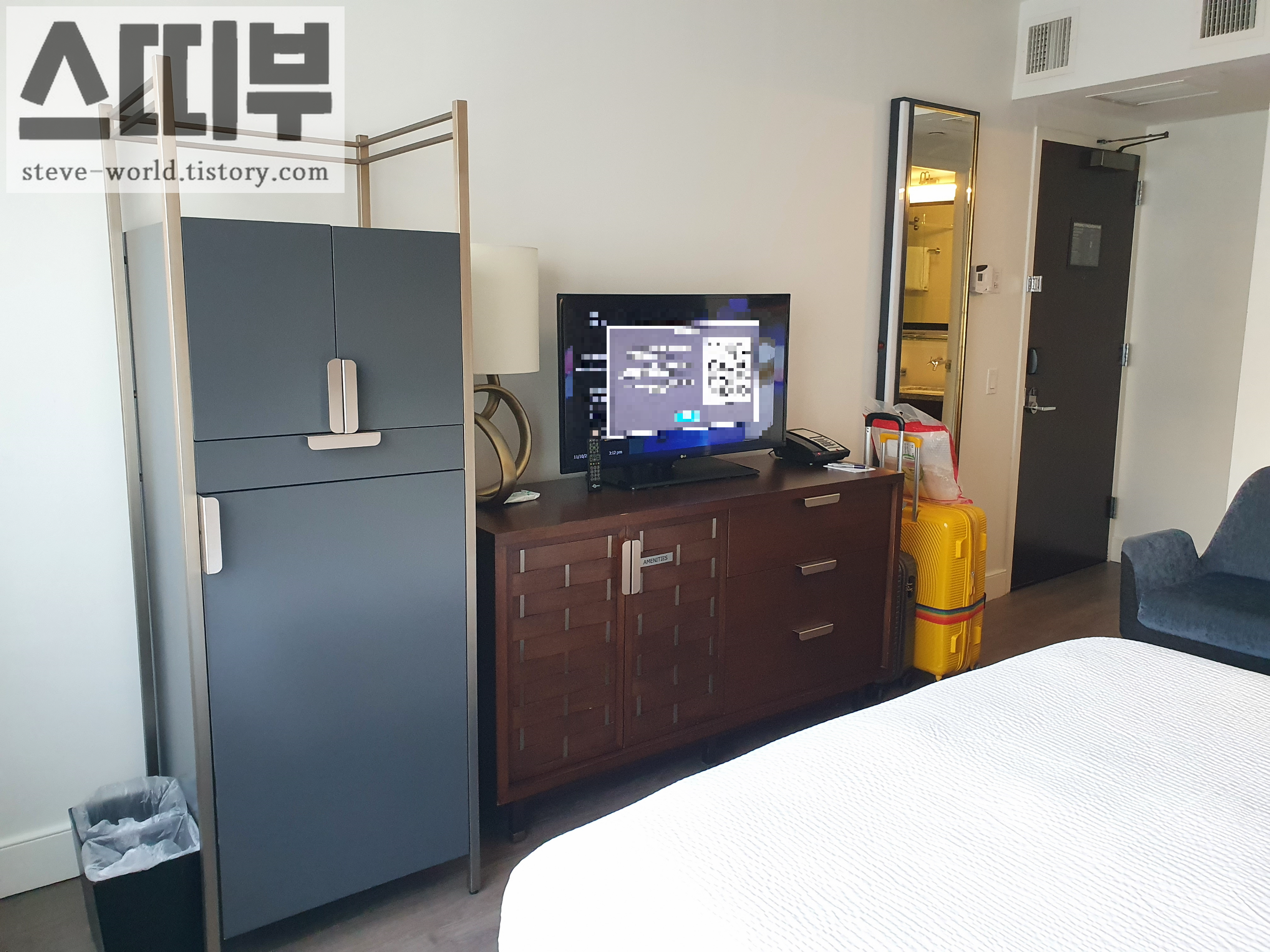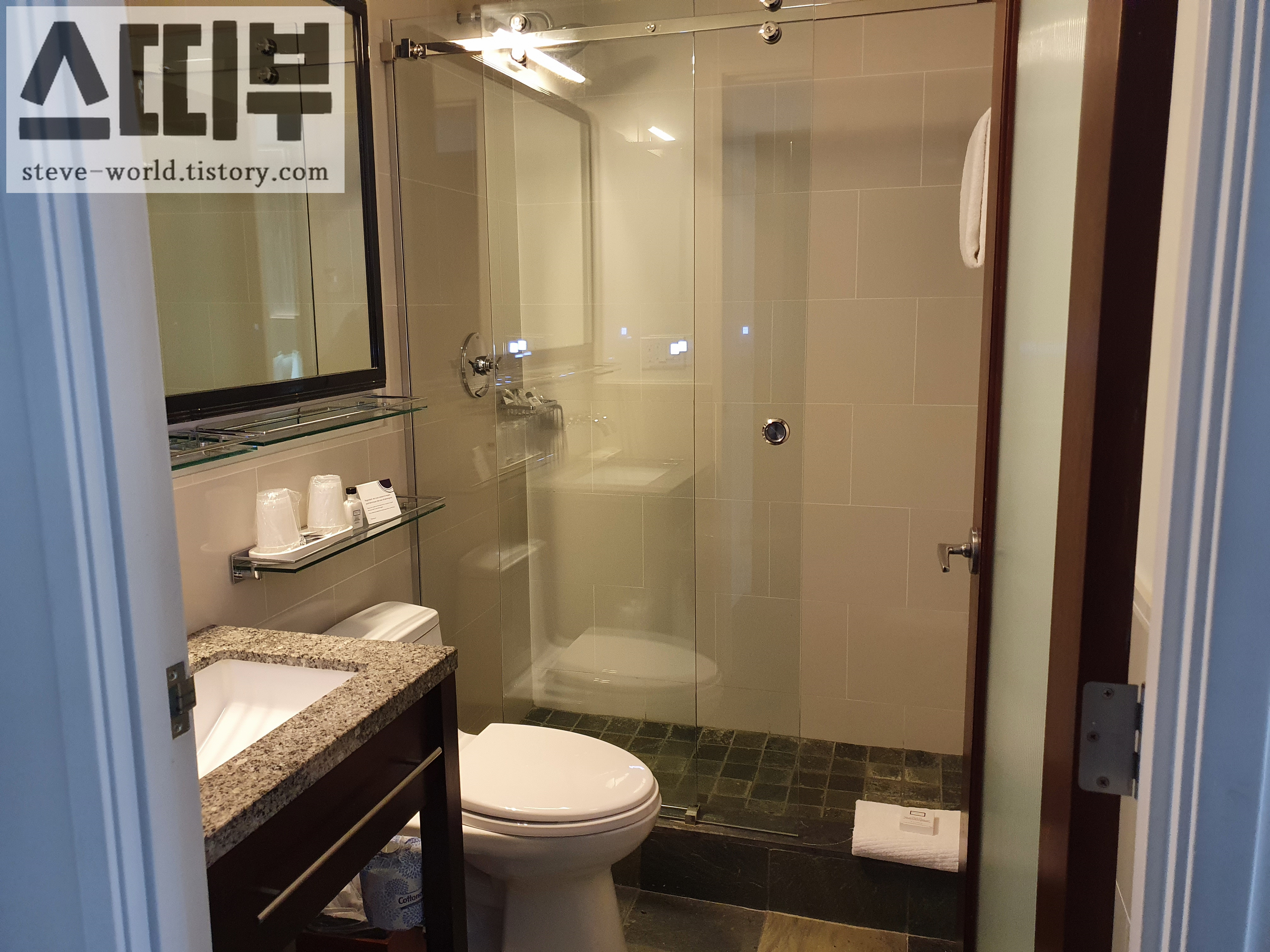 체크인할 때, 높은 층으로 업그레이드해 주겠다고 했는데, 단순히 층수만 업그레이드 해 준건지, 방의 크기도 조금 큰 편인지는 정확히 모르겠습니다. 방도 넓게 느껴졌습니다. (개인적으로 최근 페어필드 부산을 다녀왔는데, 그에 비하니 방이 무척 넓어 보이네요...) 아무래도 두 명이서 큰 캐리어 두 개를 펼치면 좁게 느껴질 수도 있겠지만, 혼자 지내기에는 넓었습니다.