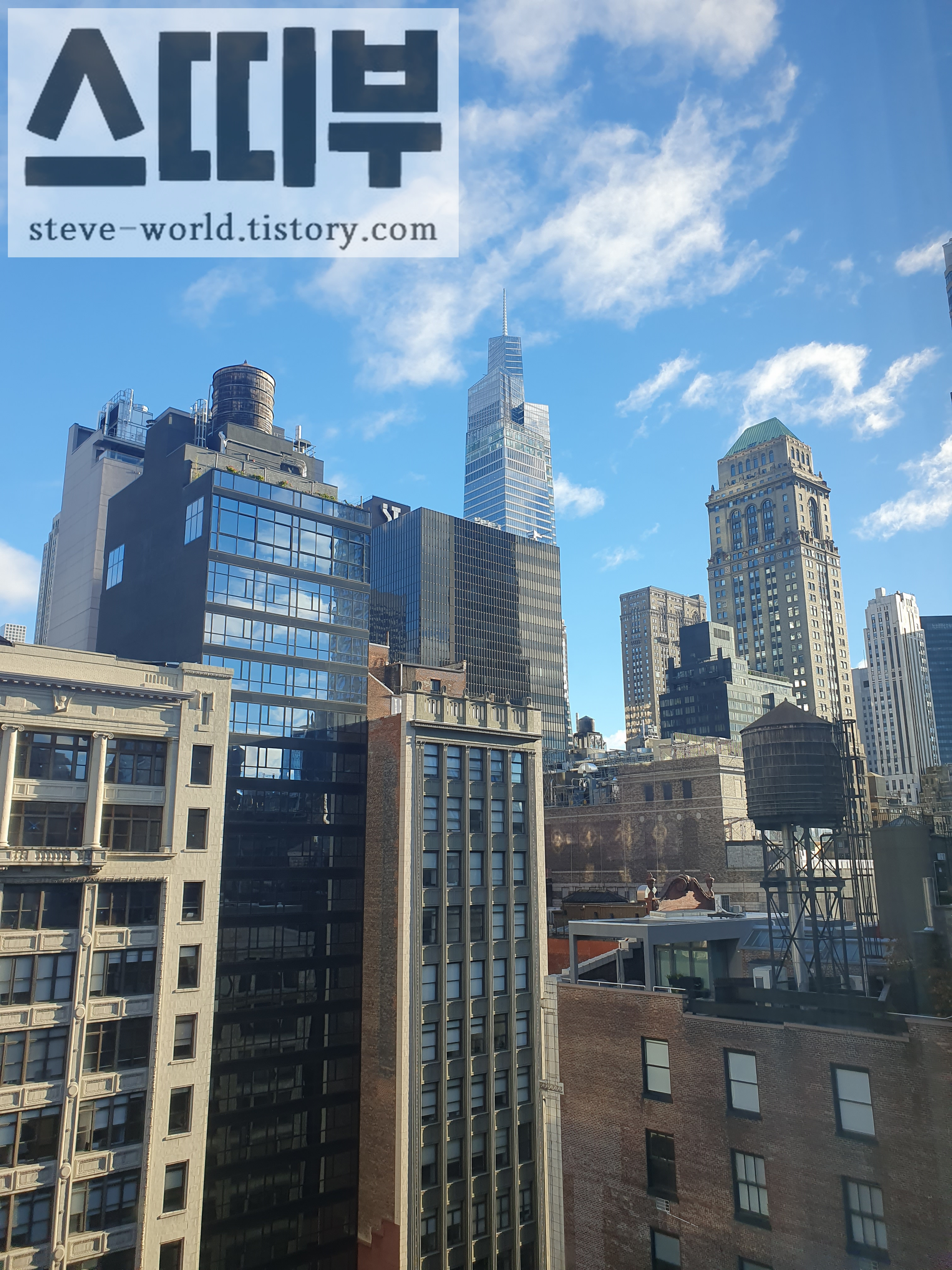 날씨 좋은 날, 방에서 바라본 뉴욕의 야경입니다.