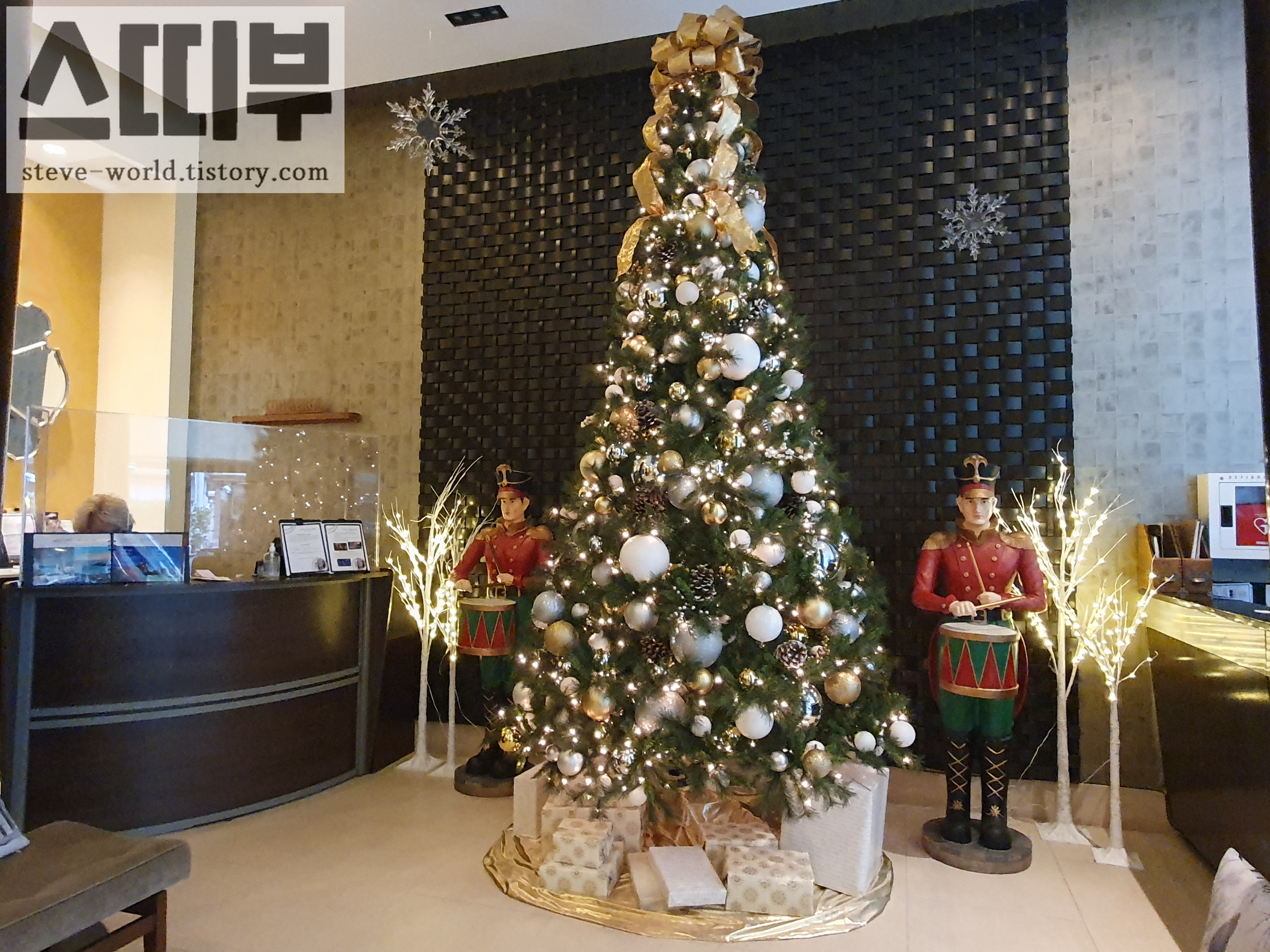제가 투숙했던 11월 중순의 호텔 로비입니다. 크리스마스를 기다리는 마음으로, 크리스마스 트리와 그에 맞는 장식들이 호텔 분위기를 더 밝게 만들어 주었습니다.