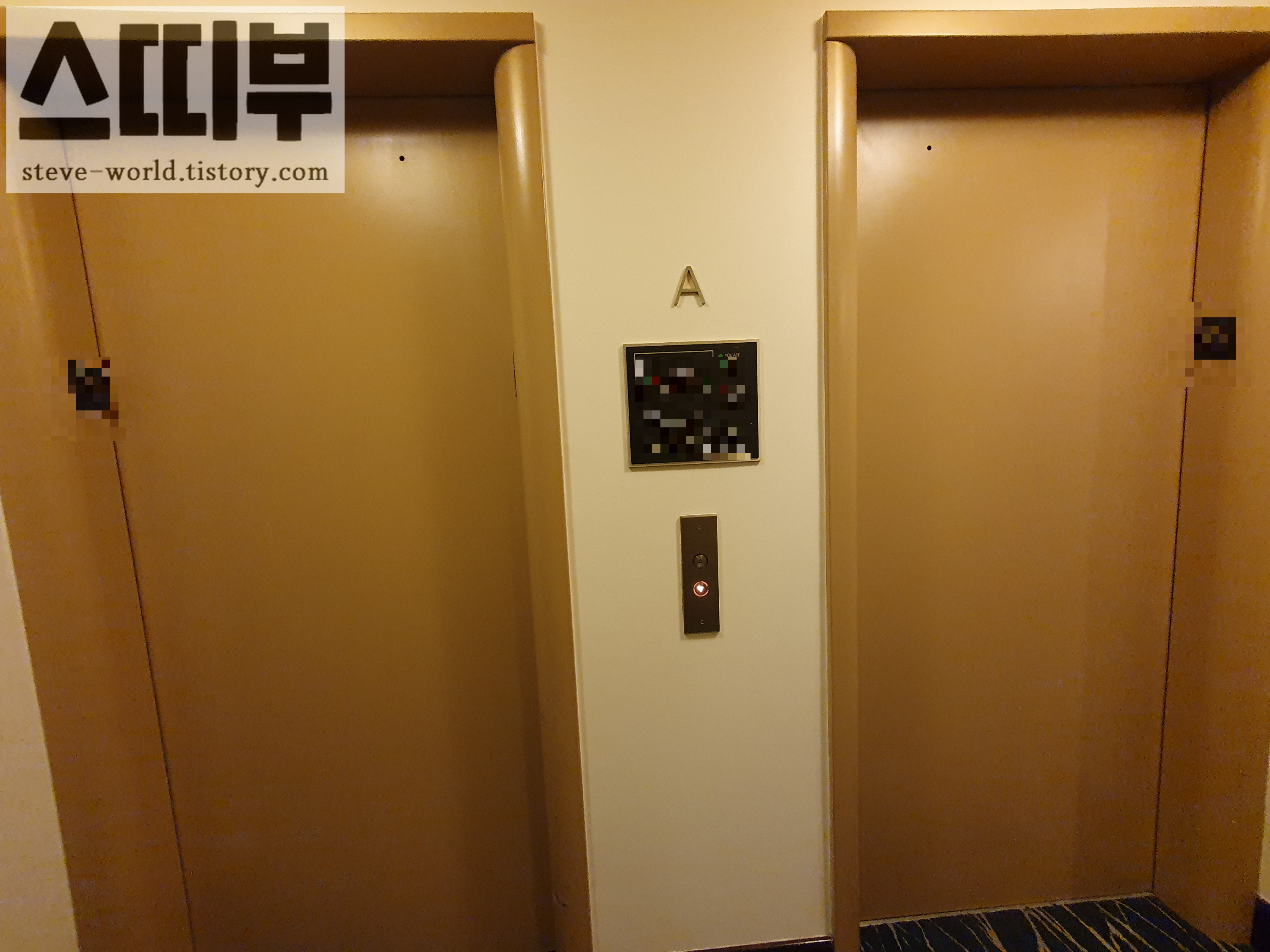 제가 묵었던 층에서 바라본 엘레베이터입니다.