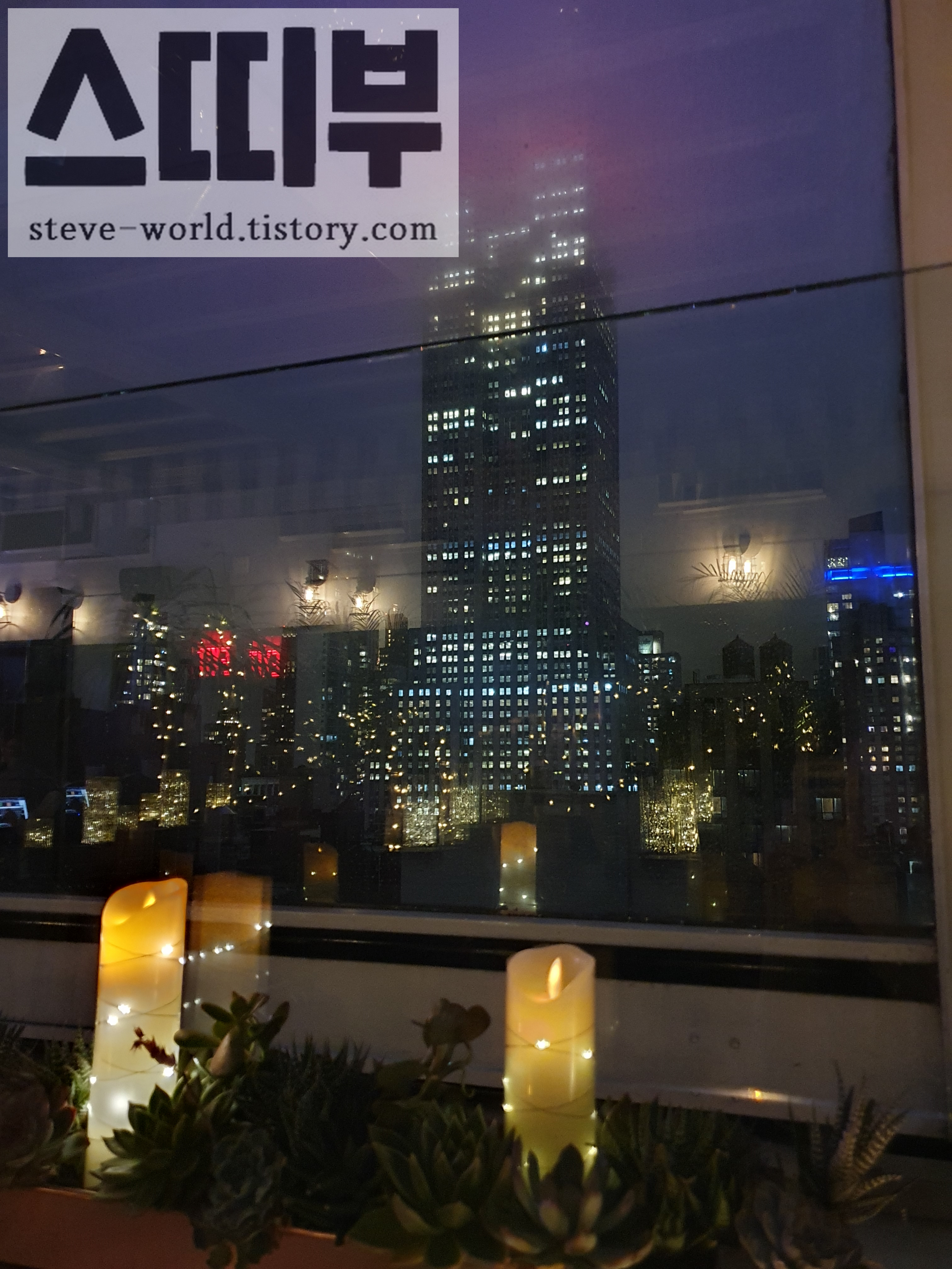 메리어트 베케이션 클럽 호텔에도 루프탑 바가 있습니다. Top of the Strand Rooftop Bar 입니다. 여행 초반에 한 번 방문해서 칵테일을 마셨습니다. 방문한 날은 비가 온 날이었는데, 엠파이어 스테이트 빌딩이 안개에 가려서 조금 아쉬웠습니다. 분위기도 괜찮아서 호텔에 투숙하신다면 한 번 방문하기 좋을거라 생각합니다.