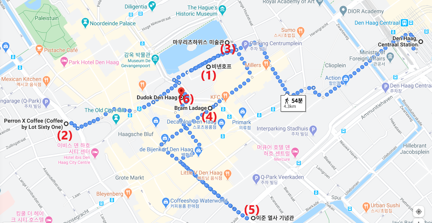 여행 전, 계획한 덴하그 당일치기 여행의 큰 틀은 아래와 같습니다.