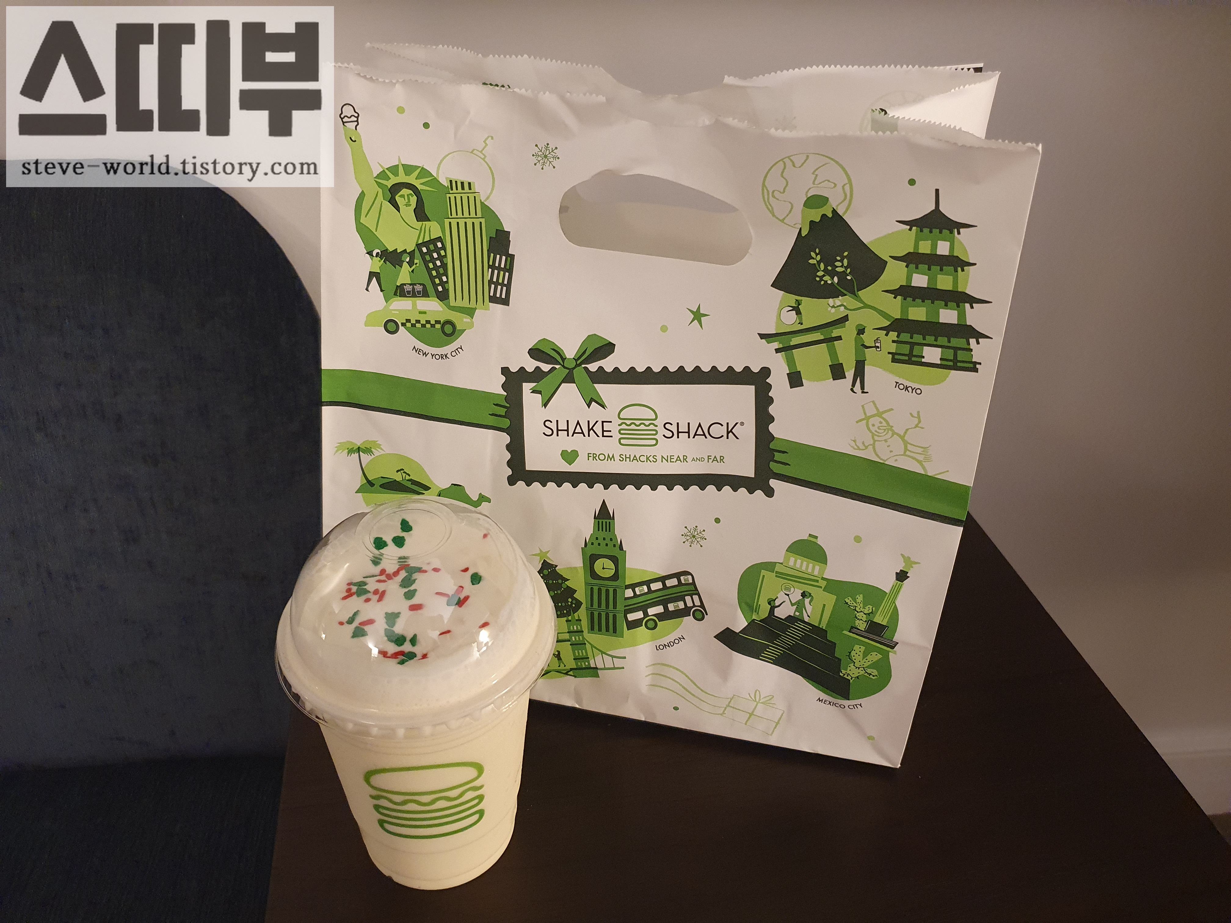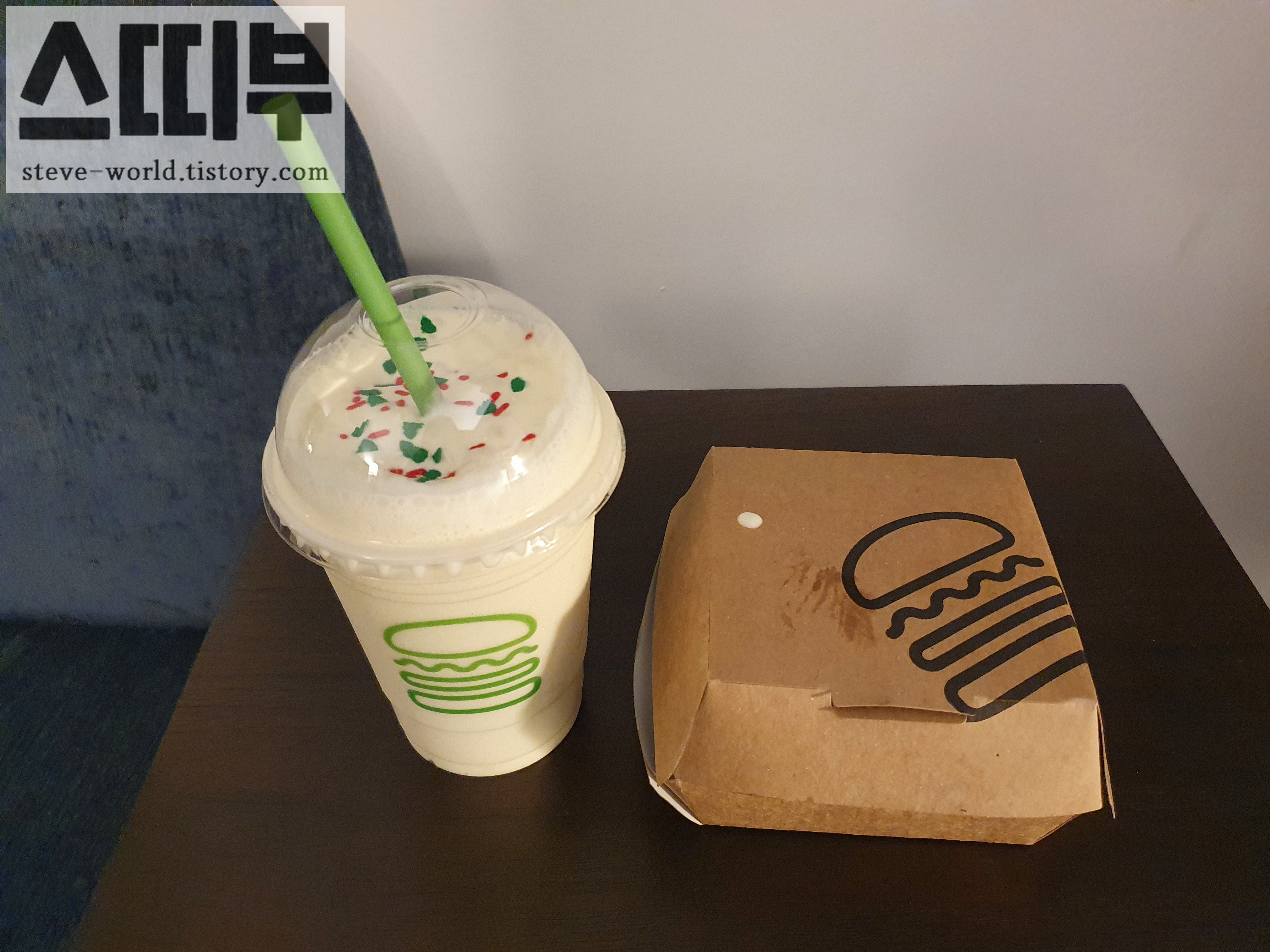 크리스마스 쿠키 쉐이크는 기본 밀크쉐이크에 크리스마스 캔디가 올라간 것 같습니다. 쉐이크 맛이 정말 진했는데, 흡사 마스카포네 치즈가 들어간 것 처럼 진하고 달콤한 우유맛이 정말 매력적이었습니다.
