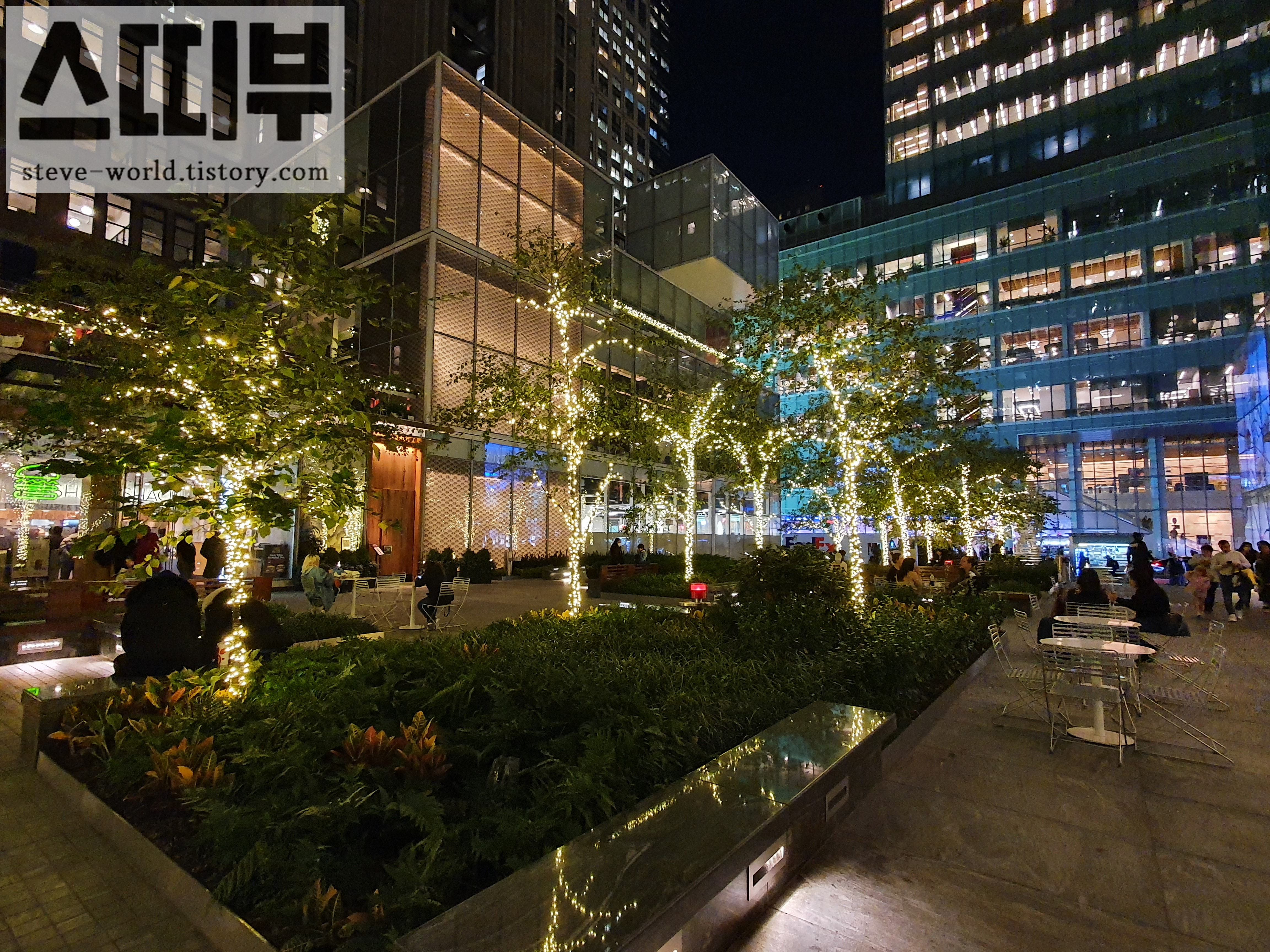 shake shack 브라이언트 파크 앞에 있는 작은 공원입니다. 보통 to-go를 해서 여기서 햄버거를 많이 먹습니다. 저녁에도 사람들이 많습니다. 이 공원의 이름은 Three Bryant Park입니다.