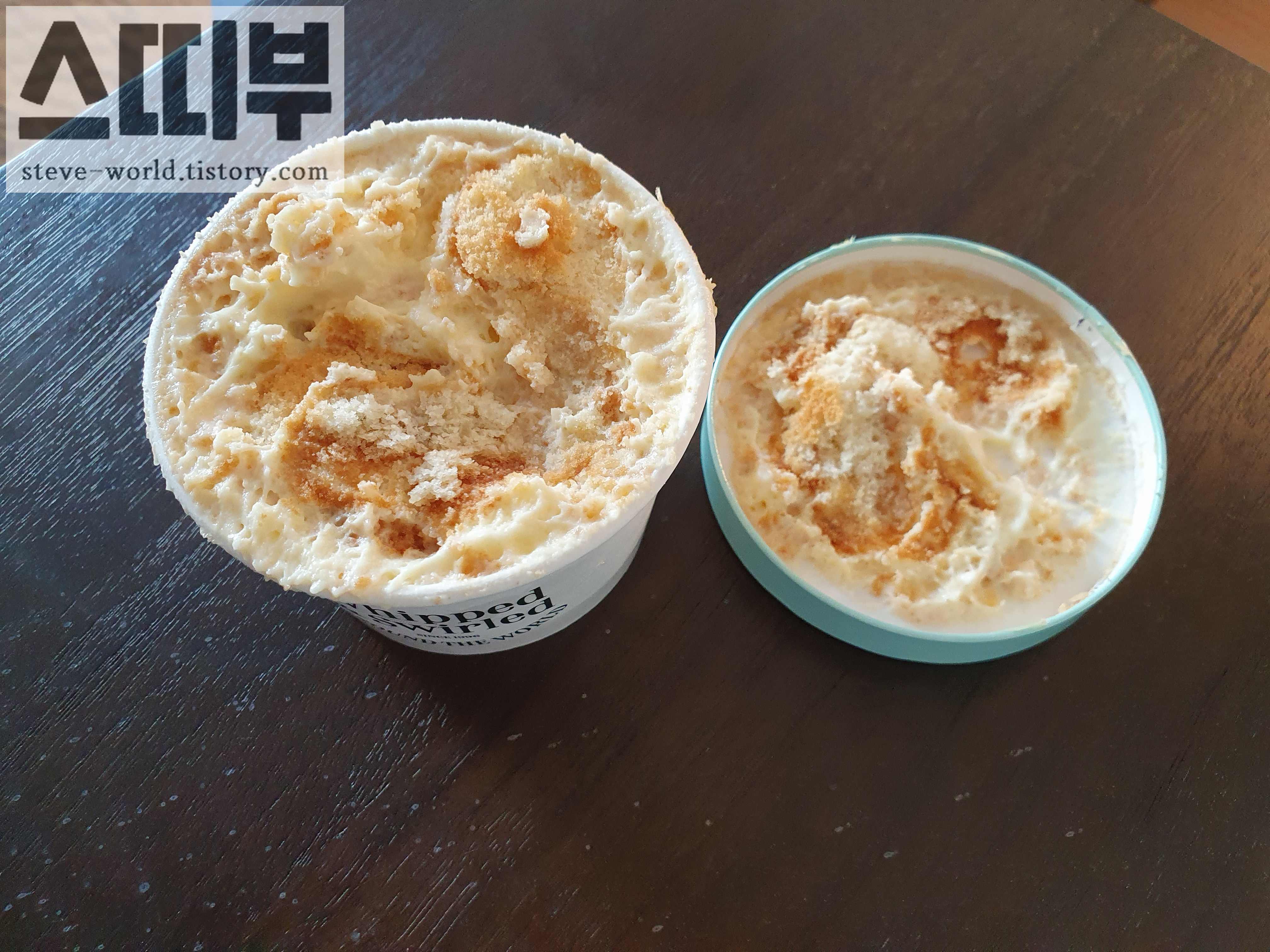 홀 푸드 마켓에서 아침 대용으로 사 온 쵸바니 옆에 바나나푸딩을 두었습니다. 사이즈가 비슷합니다.