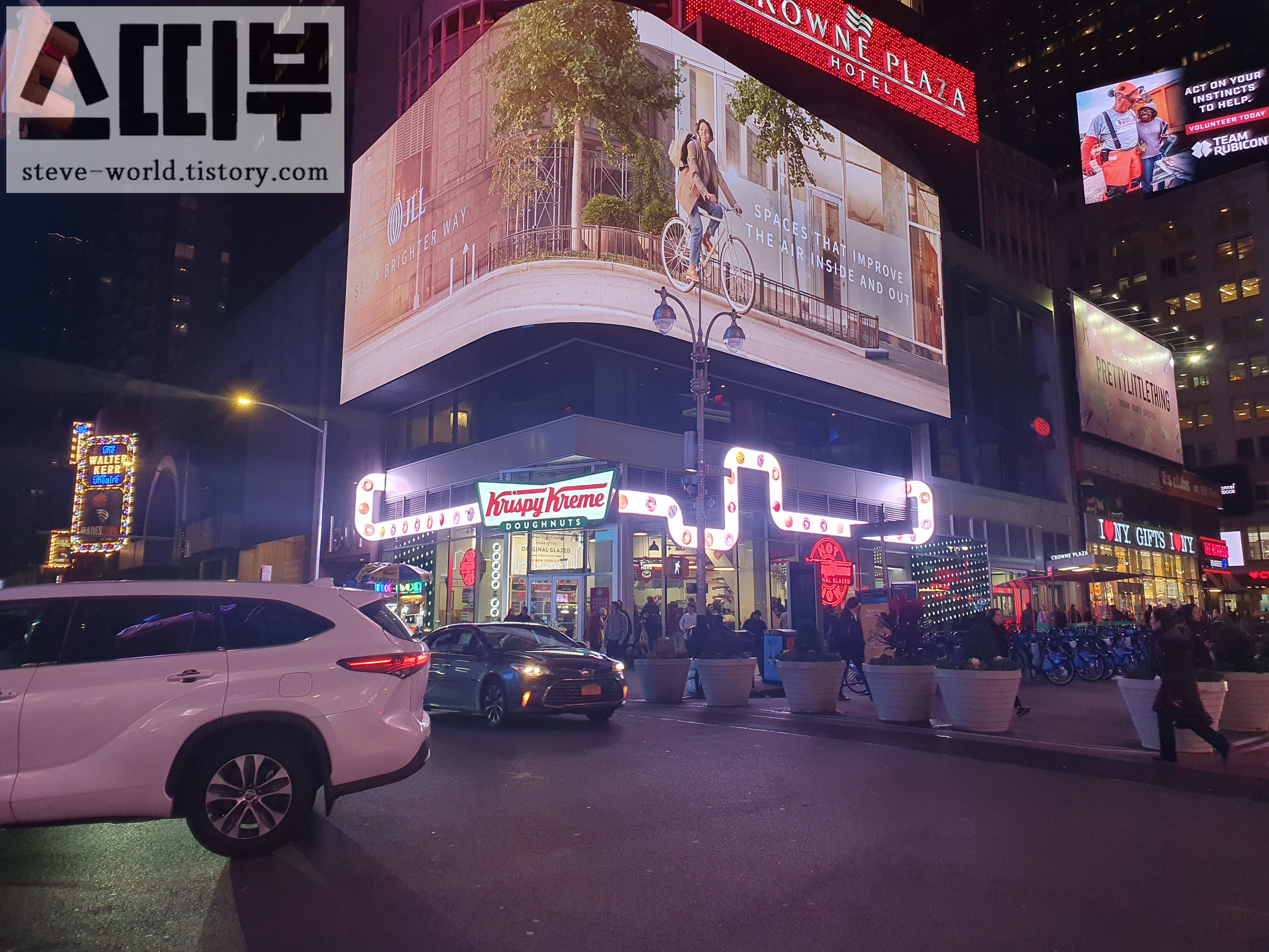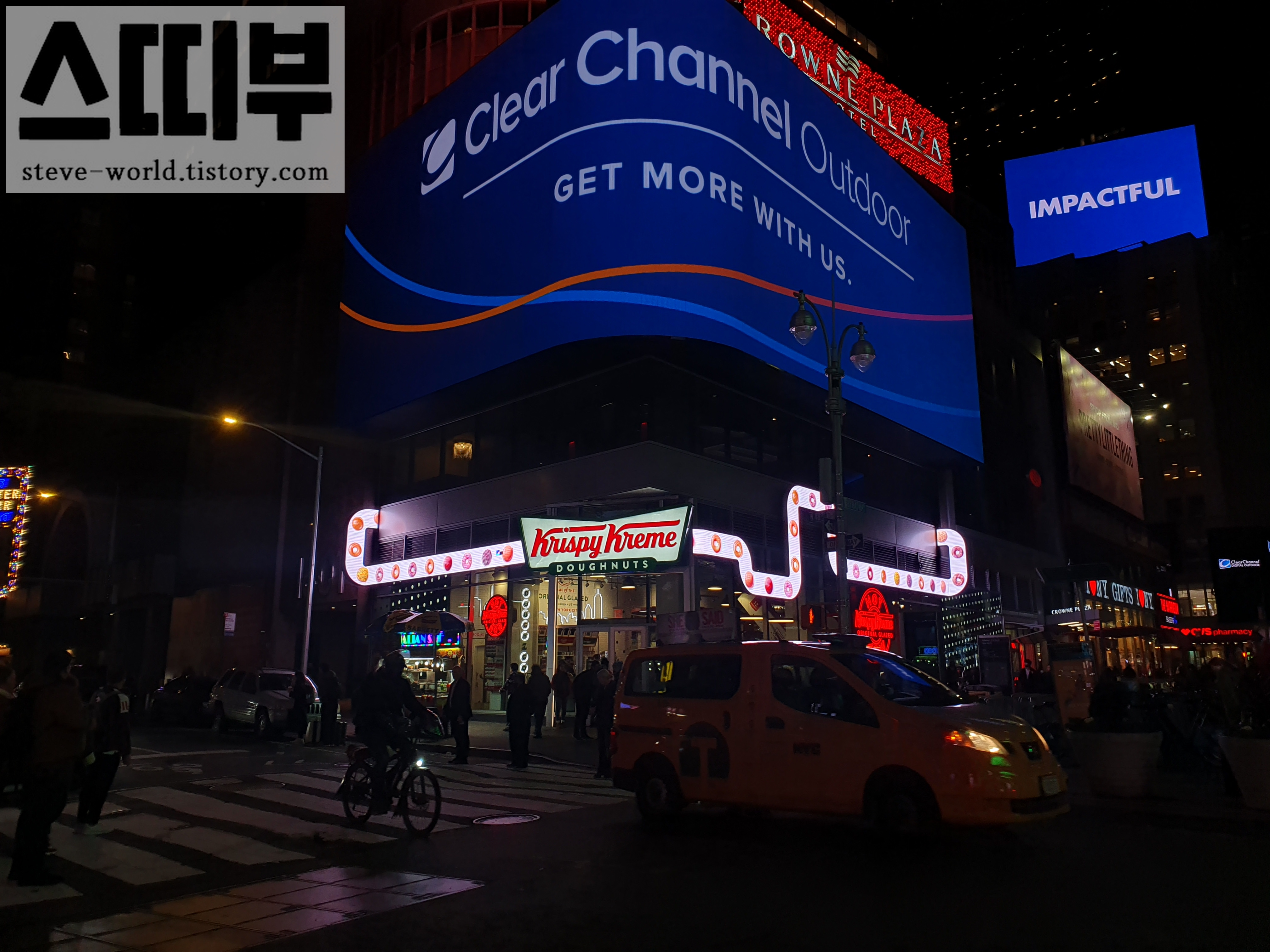 오후 뮤지컬을 다 보고 극장을 나오자, 브로드웨이의 화려한 야경이 쏟아졌습니다. 도시의 야경을 신나게 즐기며 호텔로 향하는데, 또잉 또잉 도넛 공장처럼 보이는 현란한 디스플레이가 저를 유혹했습니다.