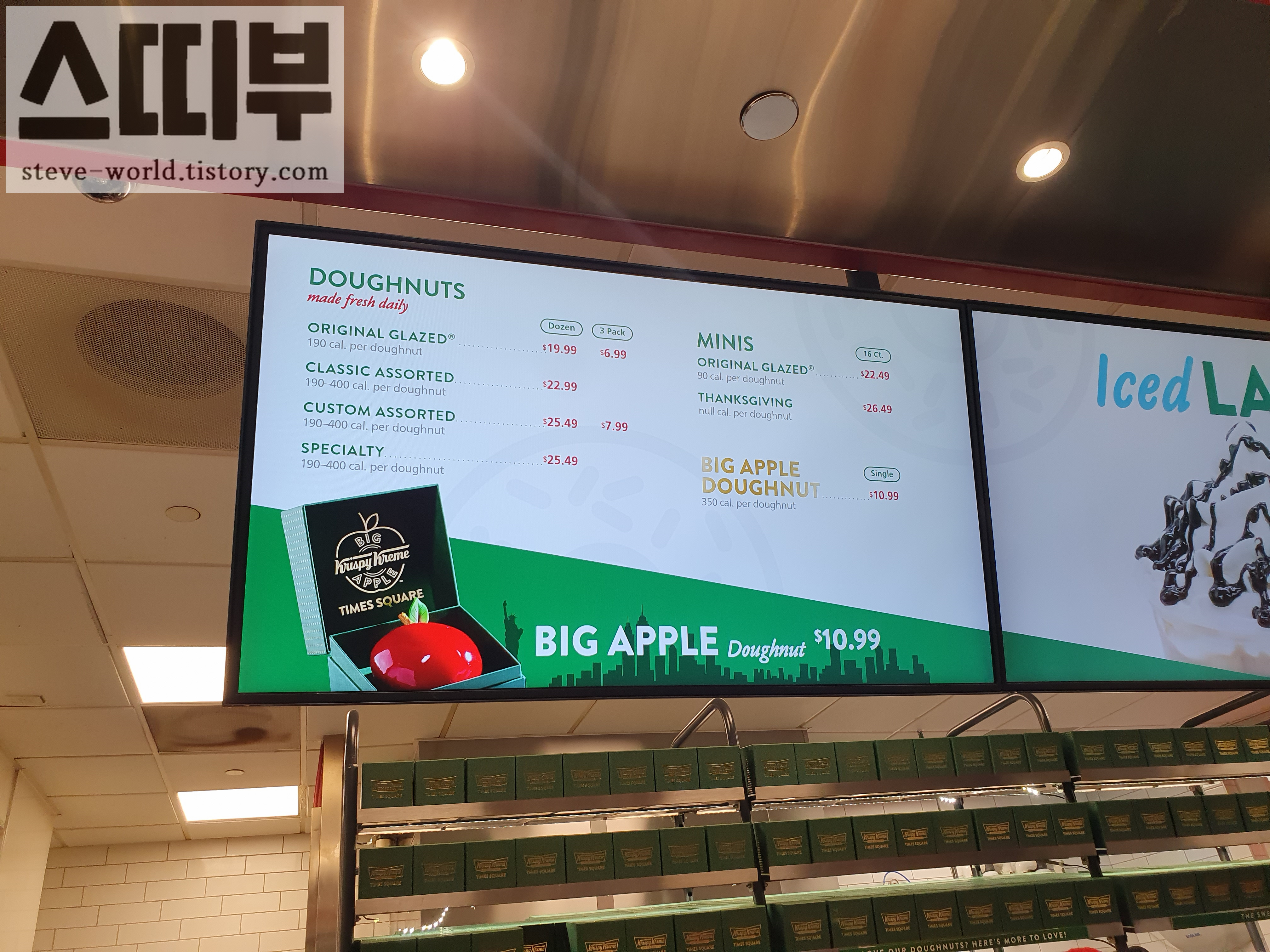 주문 후에, 직원이 사진을 찍겠냐고 물어보고, 도넛을 포장하면서 모든 직원이 함께 빅 애플 도넛 노래를 불러줍니다. 아무것도 예상을 못한 터라 조금 부끄러웠습니다. 미리 검색해서 알고 있었다면 사진도 찍고 함께 즐겼을 수도... 허허허
