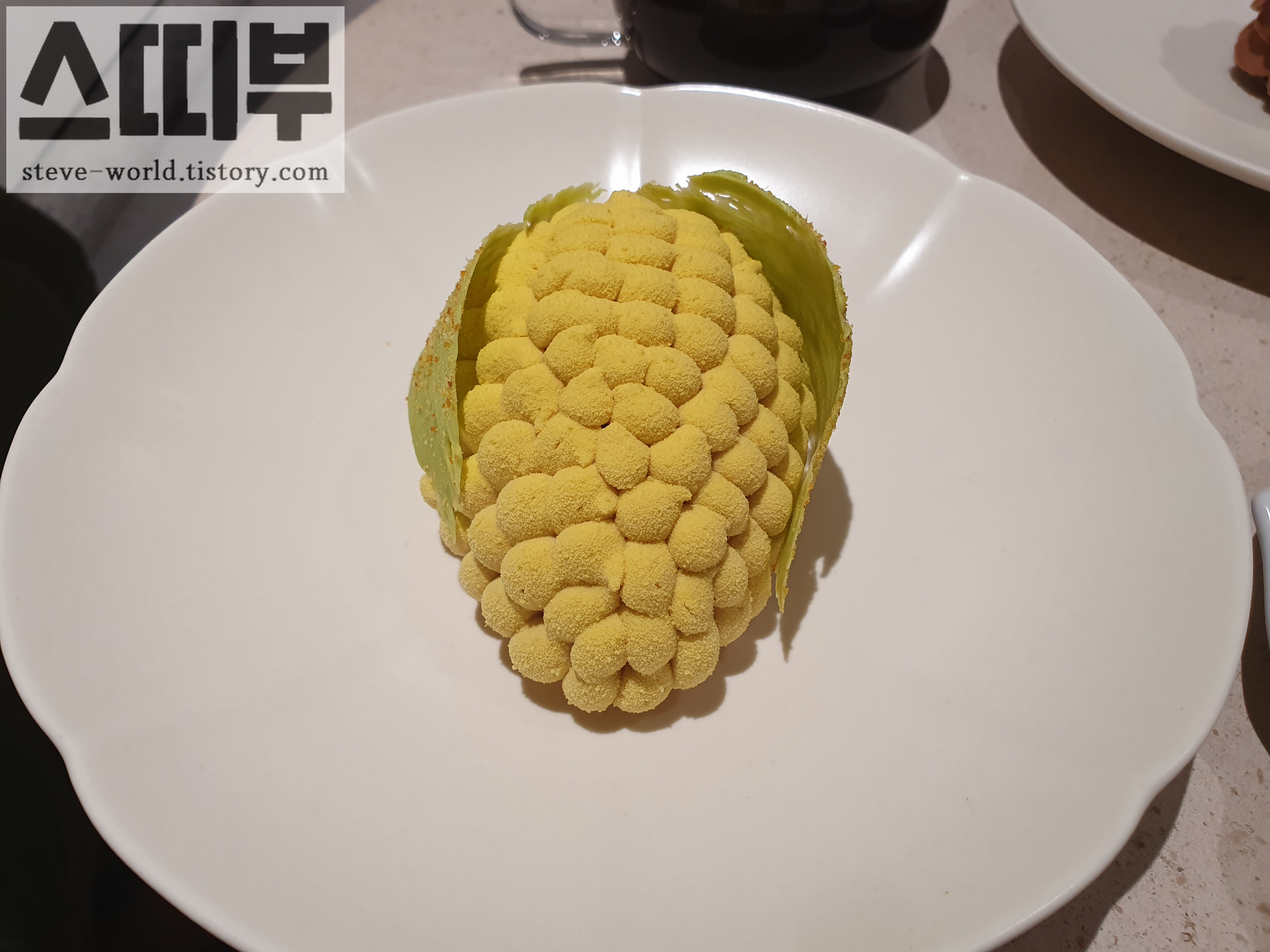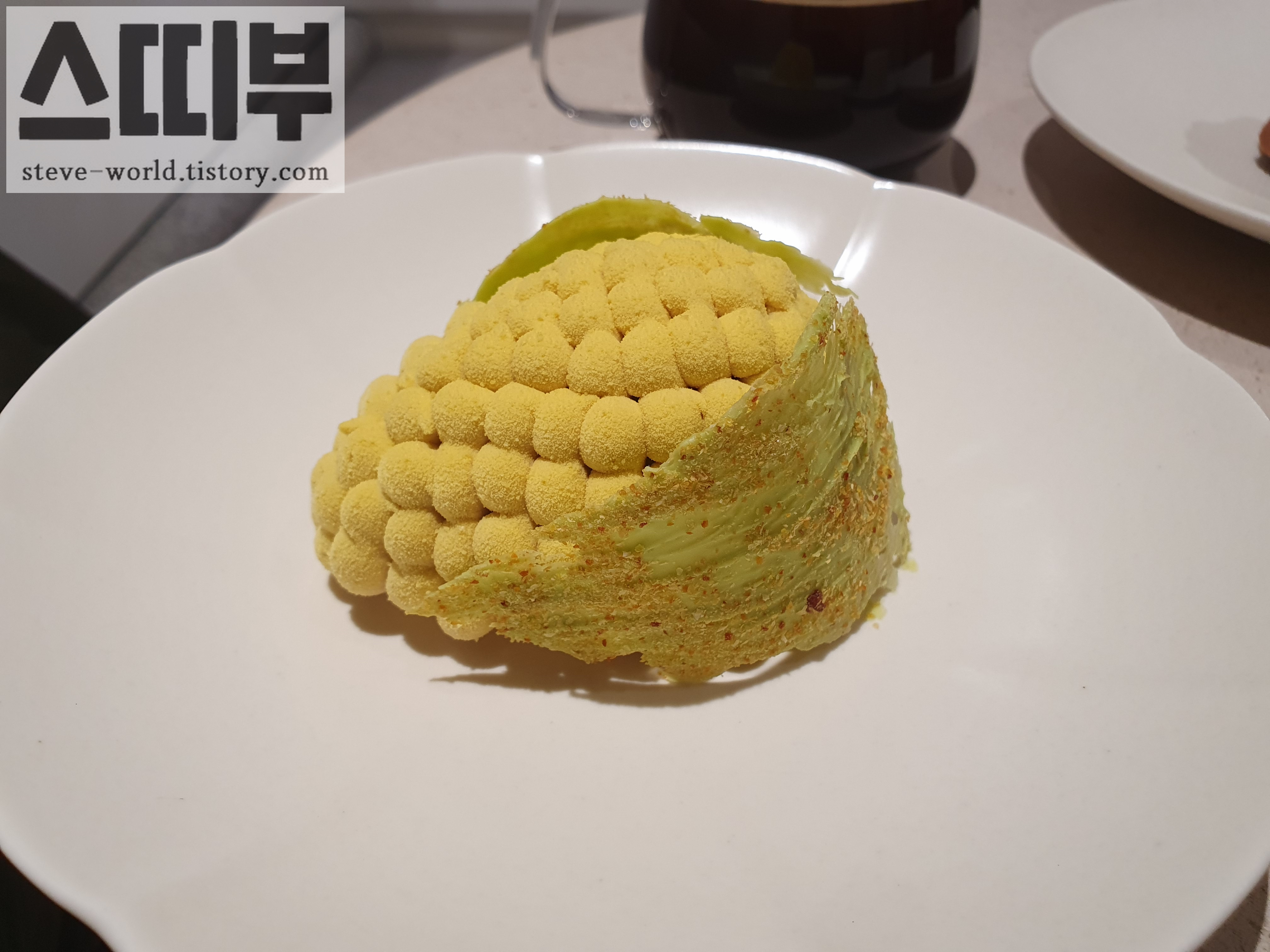 비주얼로도, 맛으로도 옥수수를 잘 표현한 Corn입니다. 외관이 아주 예술이에요. 흙이 묻은 얇은 옥수수 잎과 통통하게 표현된 옥수수 알이 마치 정교하게 빚은 클레이 모형 같습니다.