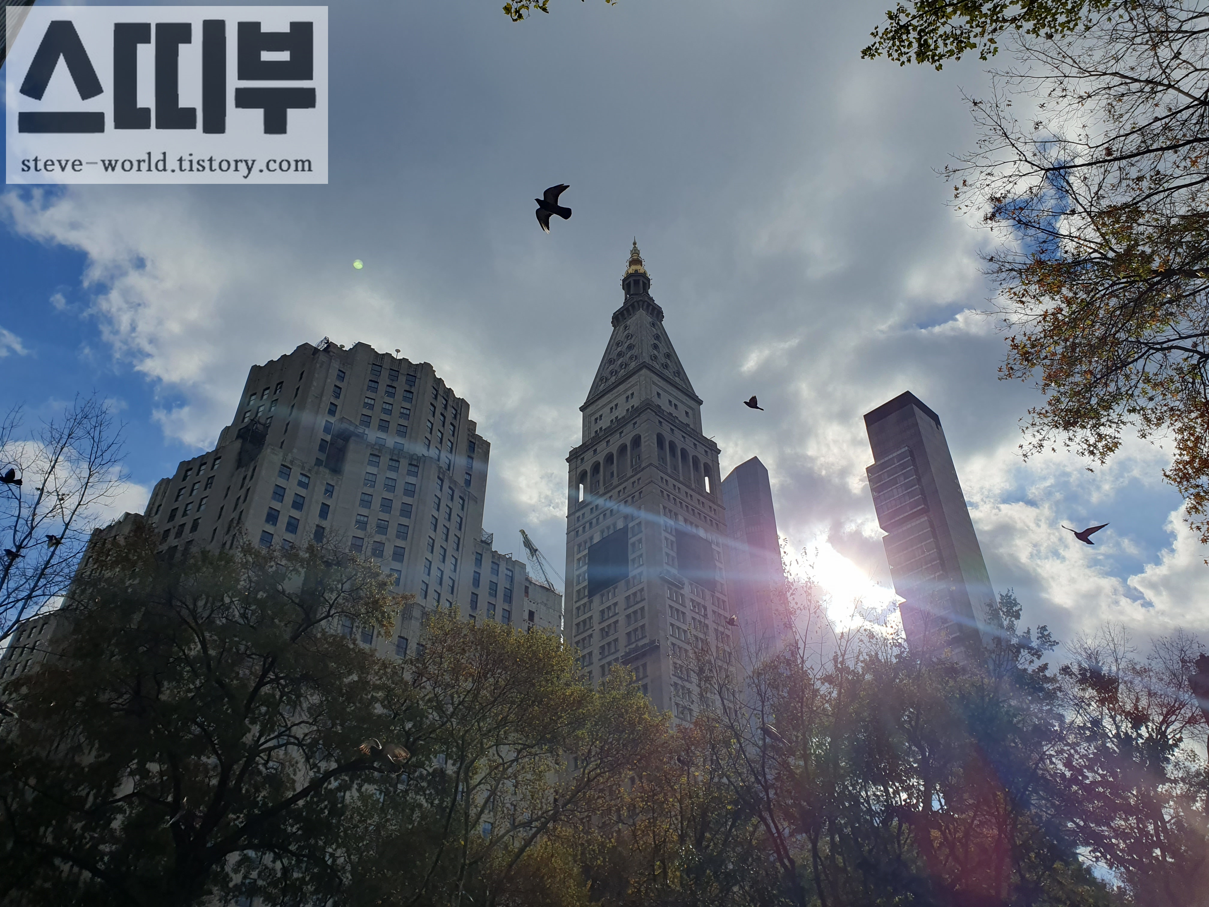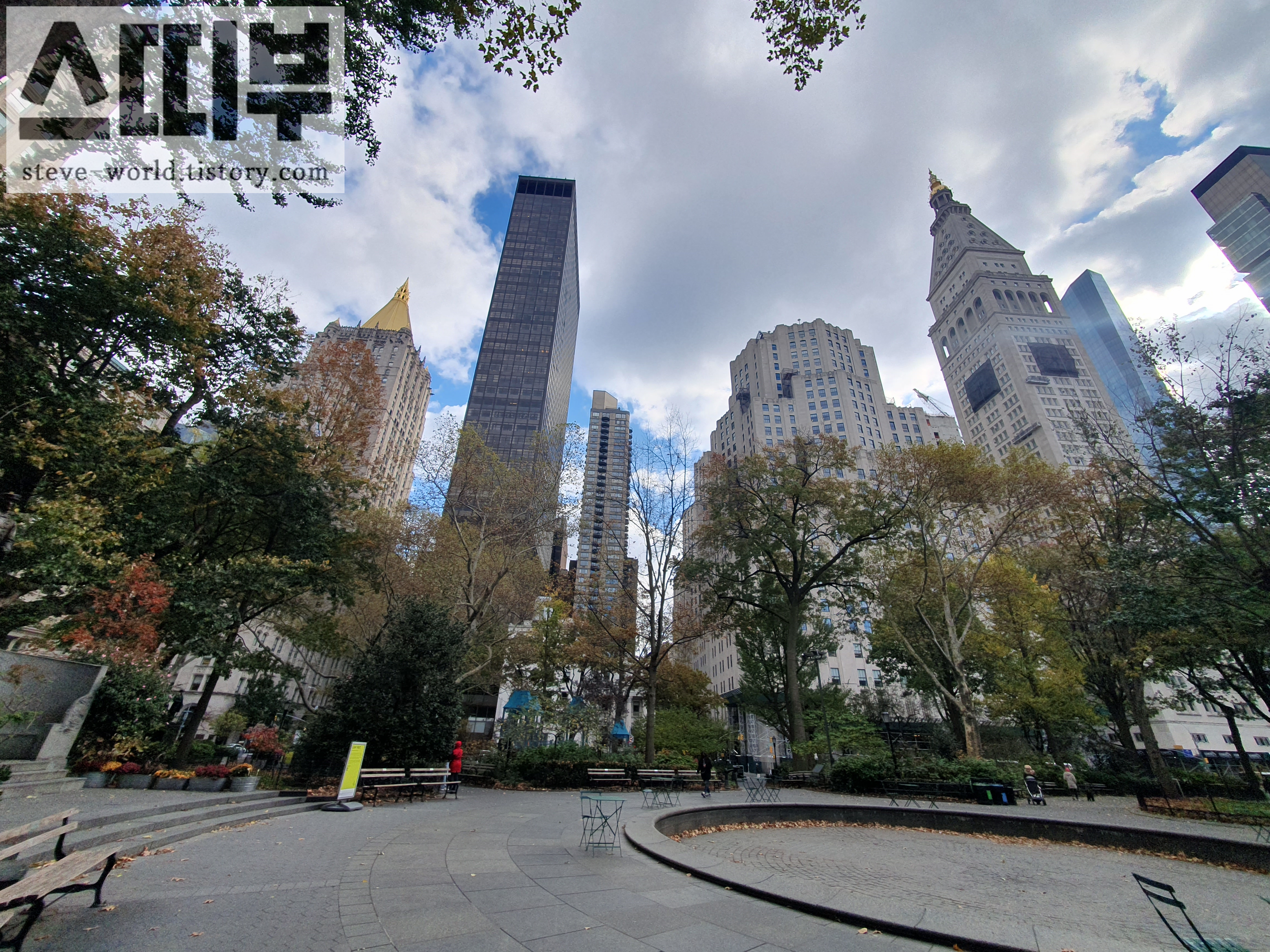 메디슨 스퀘어 파크에 들어섰습니다. 11월 늦가을인데도 잎이 많은 나무들 덕에 공원이 더욱 분위기 있어 보입니다.