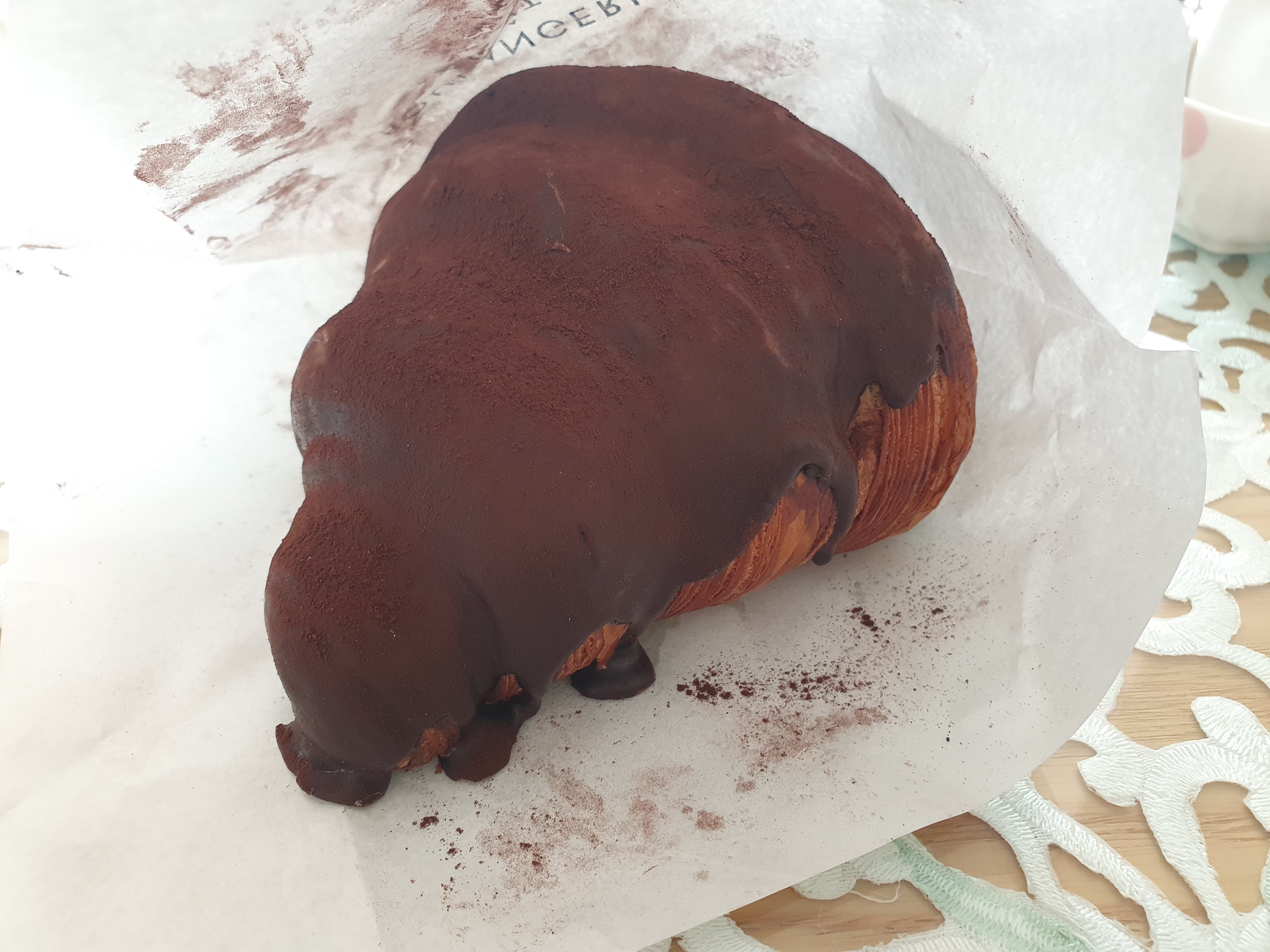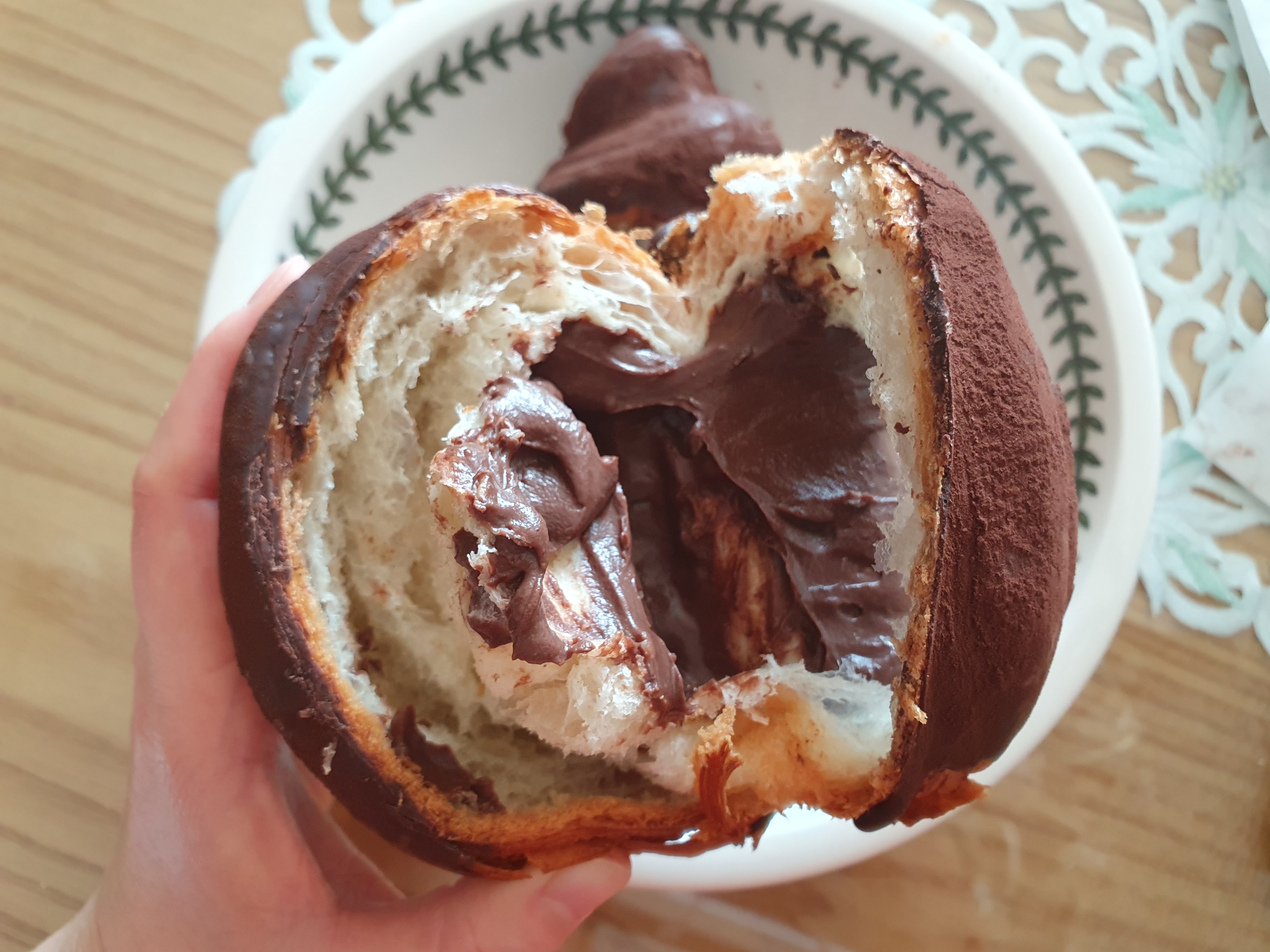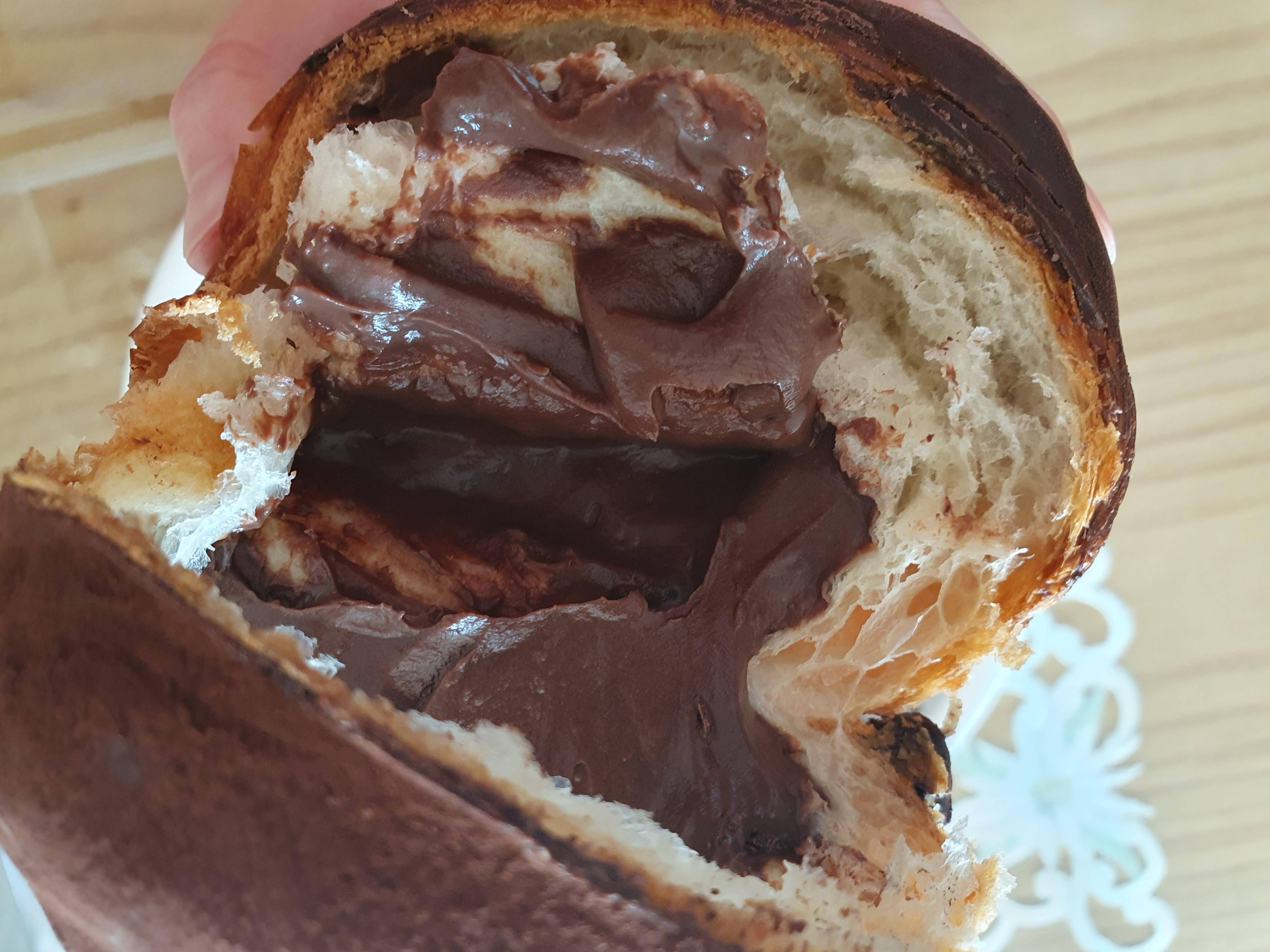 이 날, 제가 유일하게 구입한 크루아상입니다. 사실 예전에 뺑 오 쇼콜라가 있었던 기억을 가지고 뺑오 쇼콜라를 사러 갔었는데, 아쉬운 대로 초코크림 크루아상을 구입했습니다. 그리고 역시 블랑제리우트의 크루아상은 주말 오전을 풍족하게 합니다. 정말 정말 맛있어요. 크루아상 자체도 극락인데, 크루아상을 가르자마자 흘러내리는 초코크림은 주말을 달콤하게 만들어줍니다.