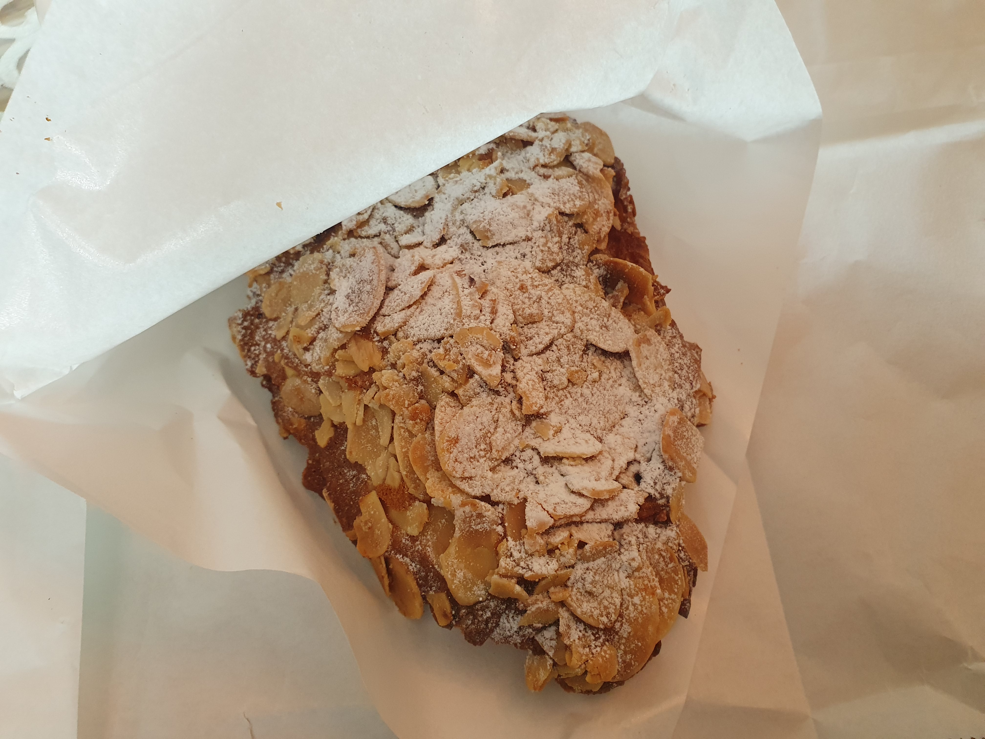 어떤 날은 이상하게 자주 먹지 않는 아몬드 크루아상이 당겨서 구입했습니다. 허겁지겁 먹느라 단면을 못 찍은게 무척 아쉬운데요. 몽땅 올라간 아몬드 슬라이스와 고소한 아몬드 크림 그리고 기본에 충실하게 맛있는 크루아상의 조합은 정말 맛있었습니다. 따뜻한 아메리카노와 함께 먹었는데, 아메리카노 절반도 채 마시지 못했는데 큼직한 아몬드 크루아상이 순식간에 사라졌습니다.